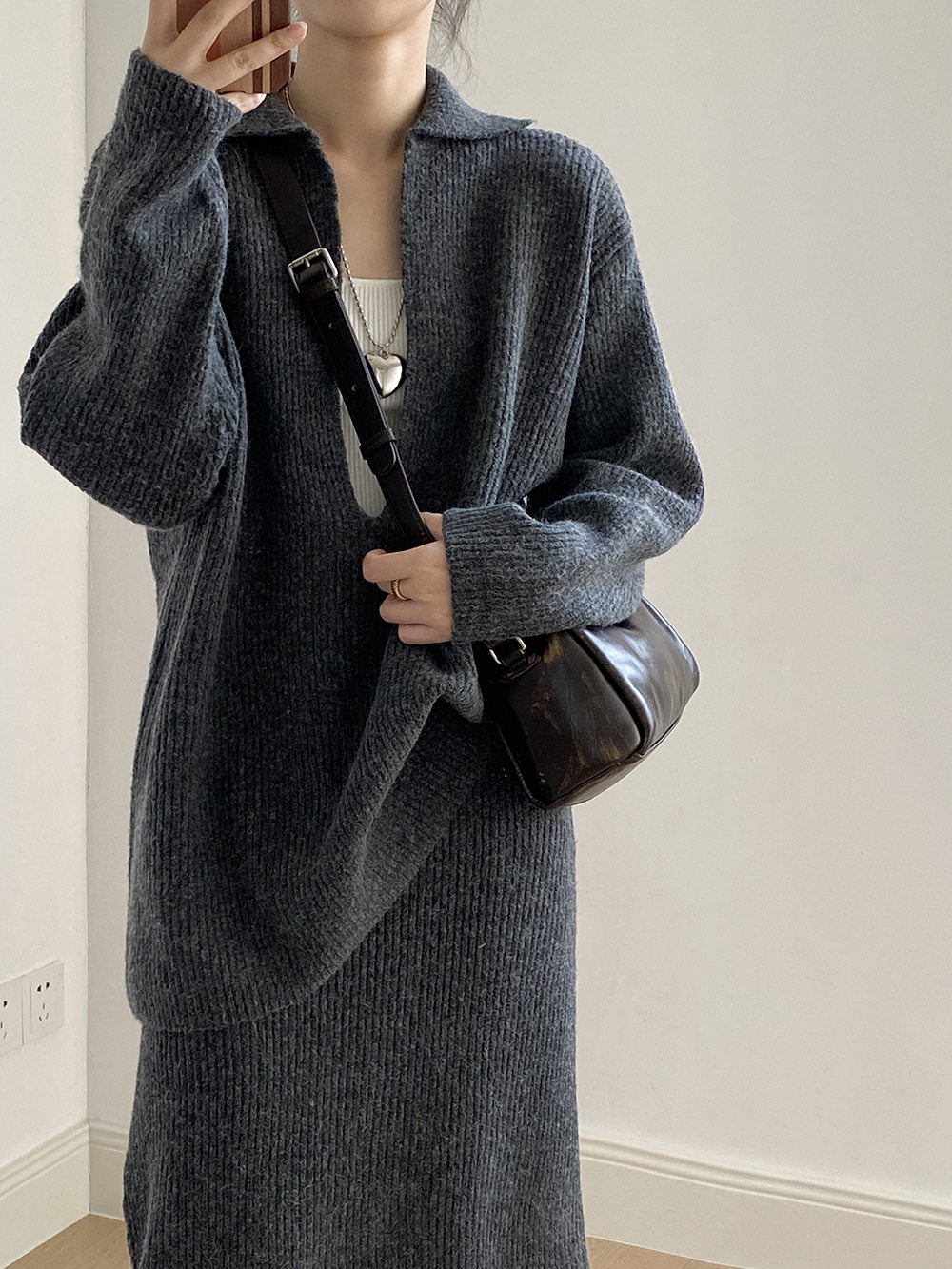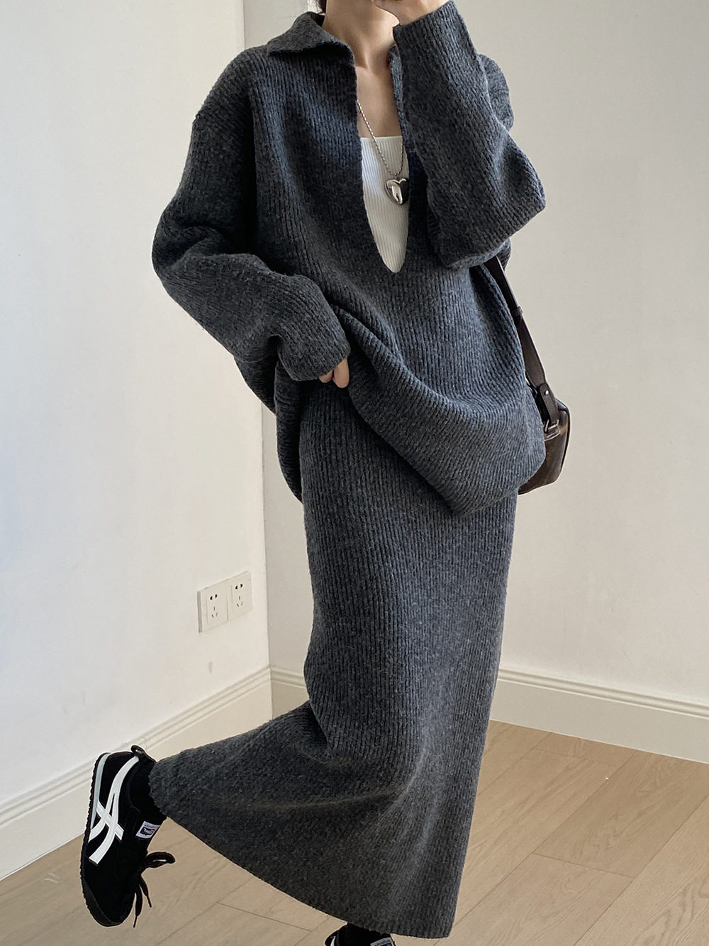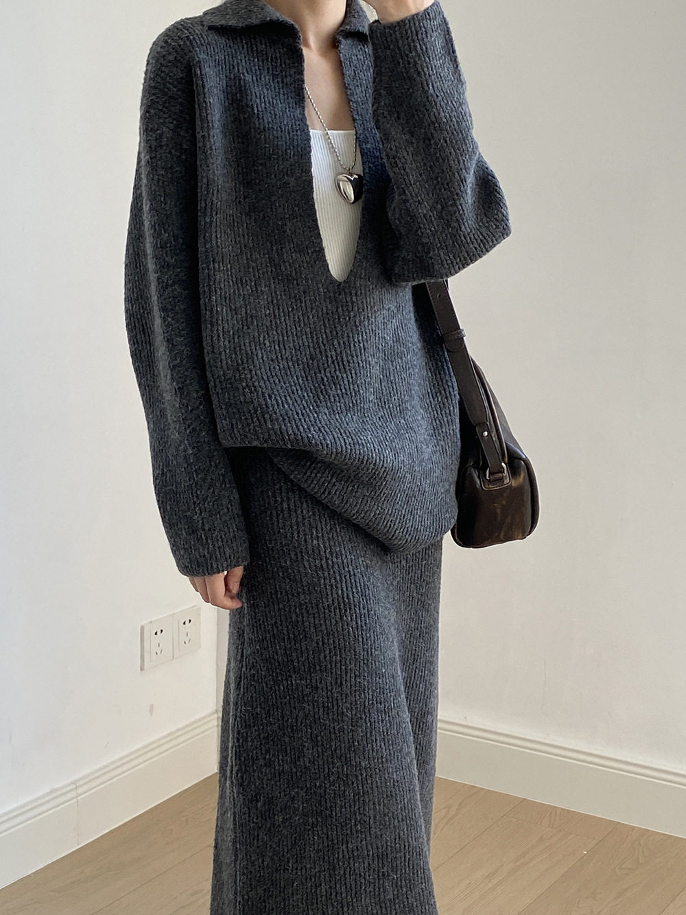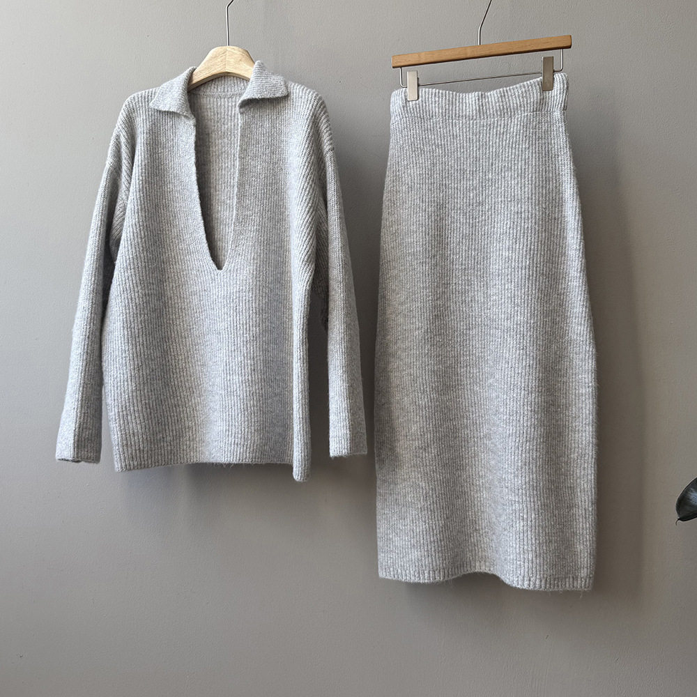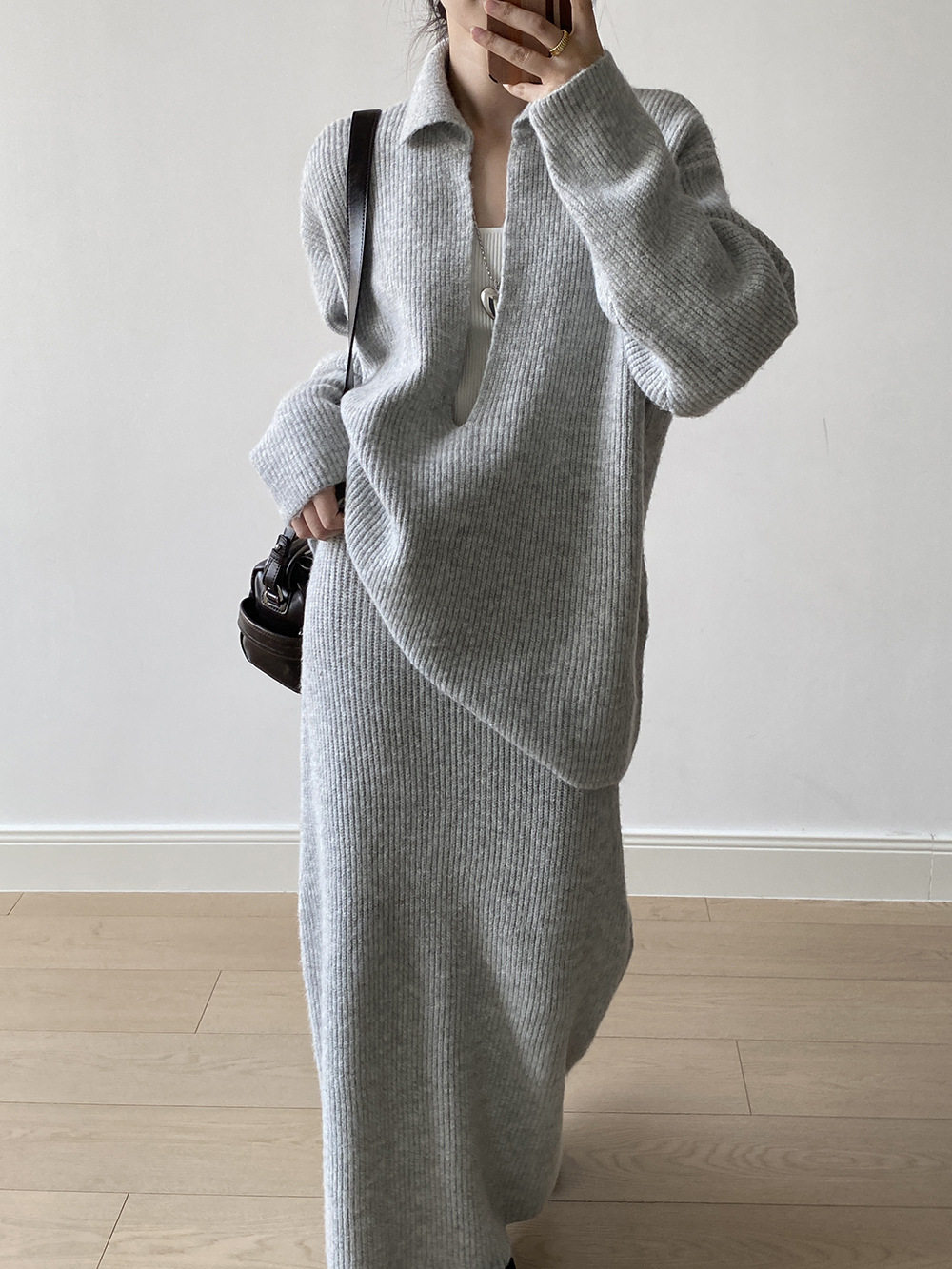 2点セット!【セットアップ】レディース 秋 カジュアル プルオーバー+ハイウエストスカート 上下セット【JZシリーズ】