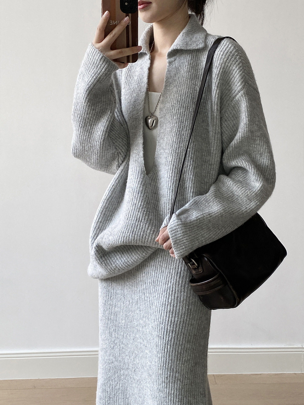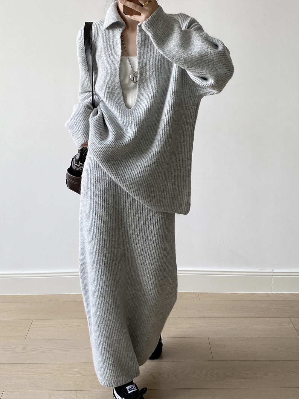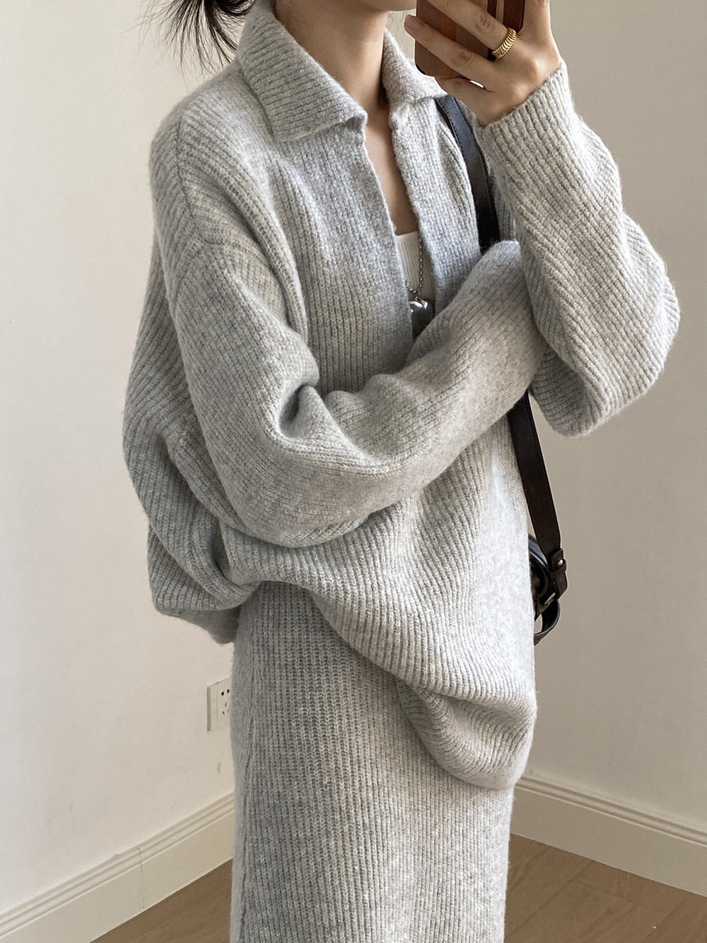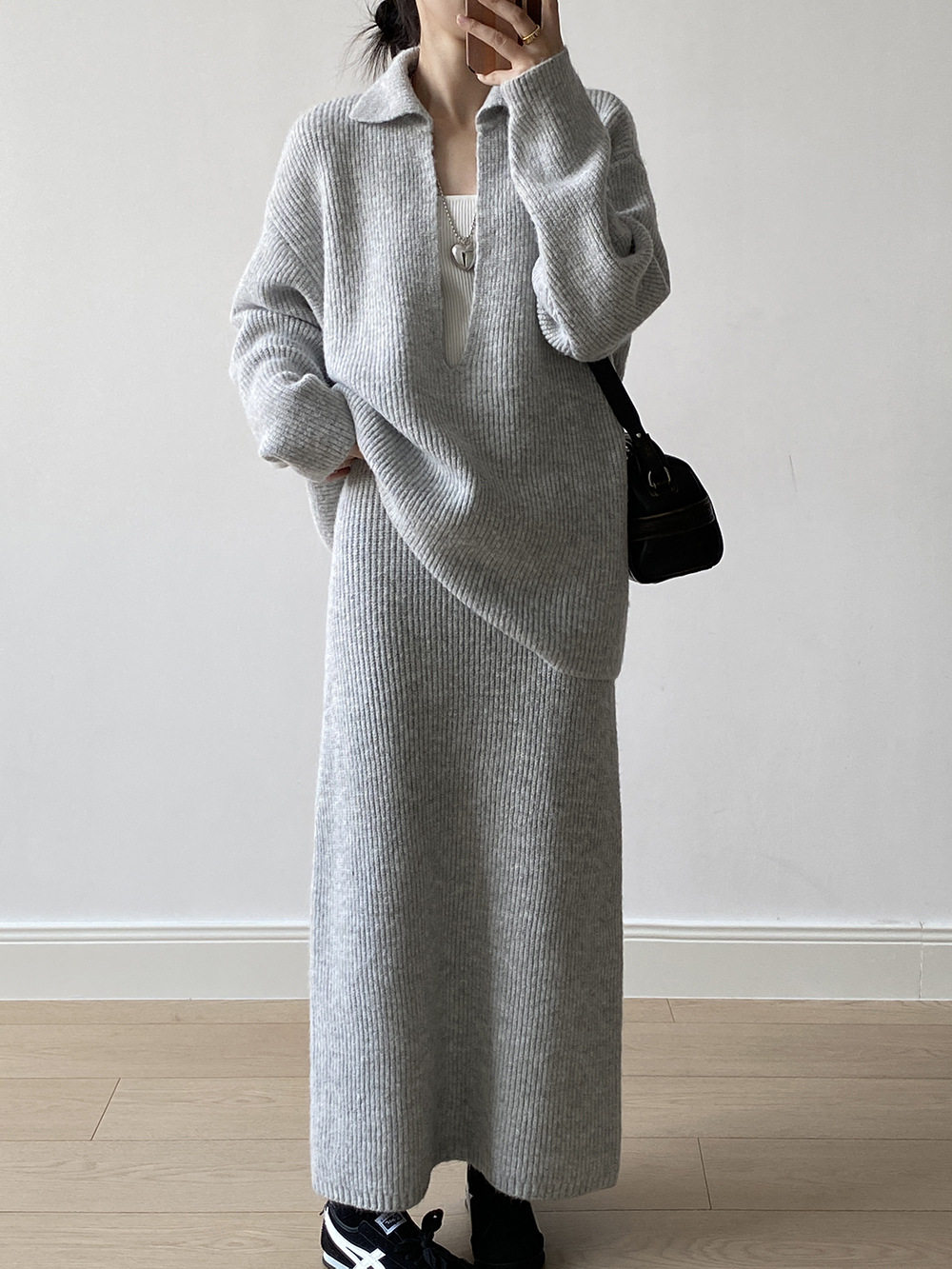 2点セット!【セットアップ】レディース 秋 カジュアル プルオーバー+ハイウエストスカート 上下セット【JZシリーズ】