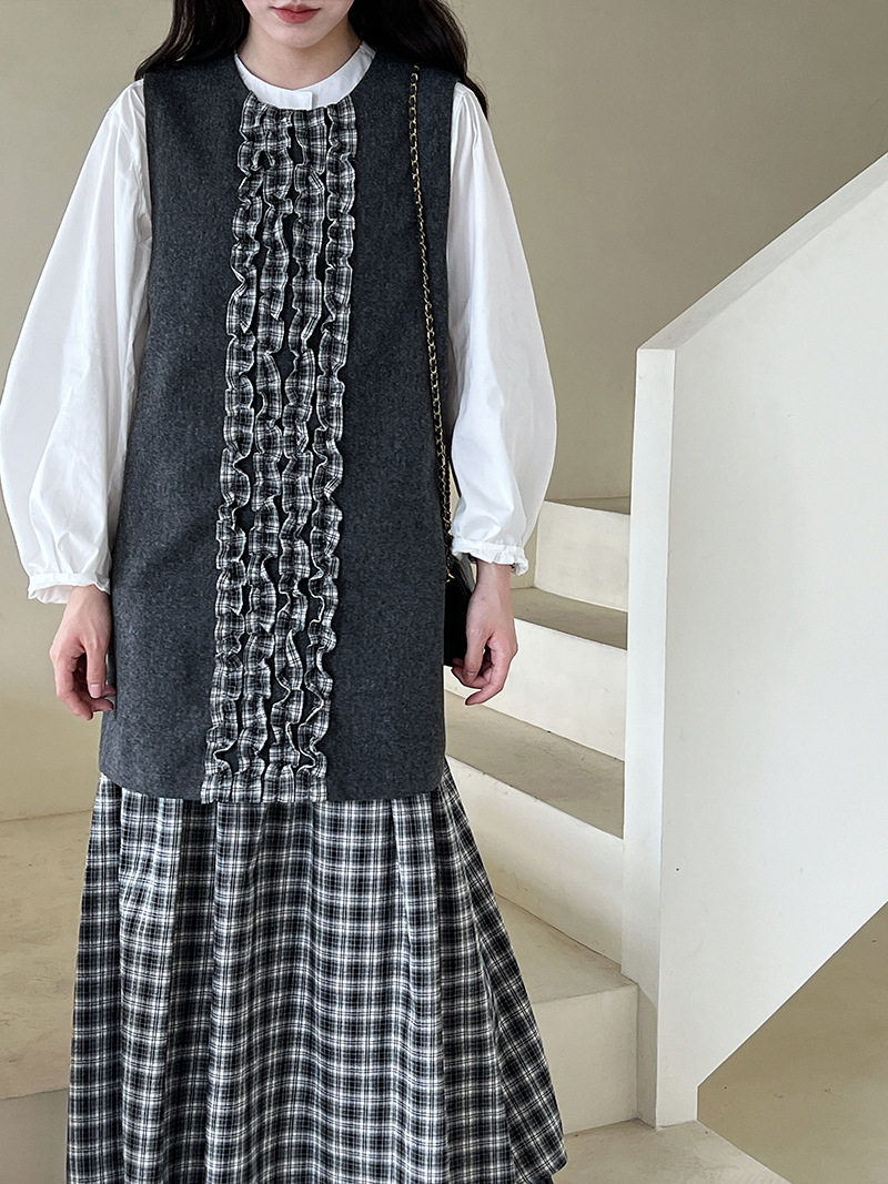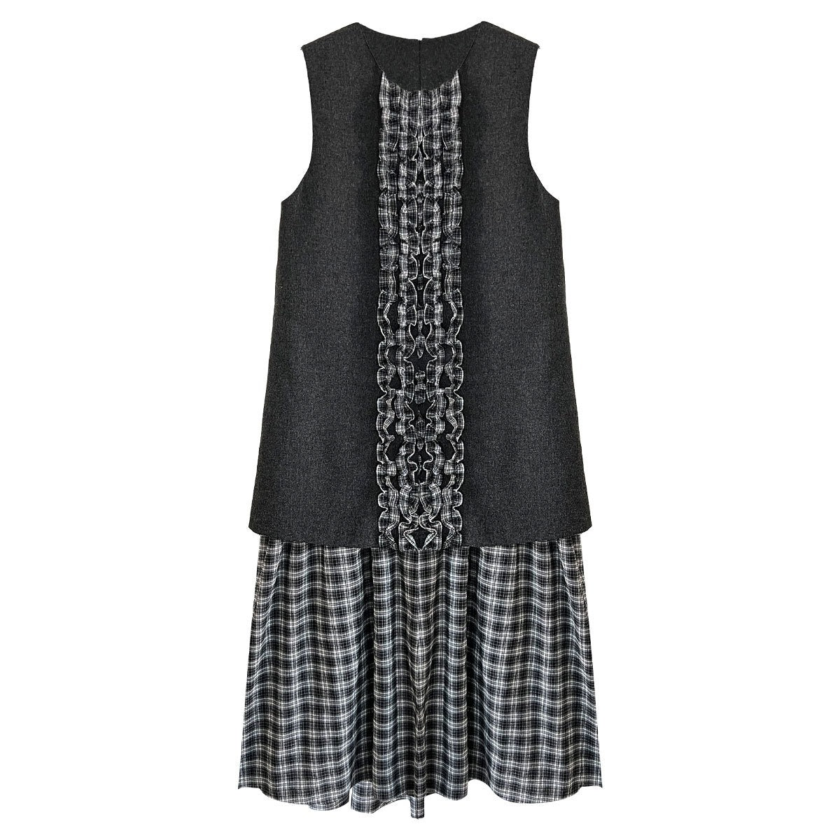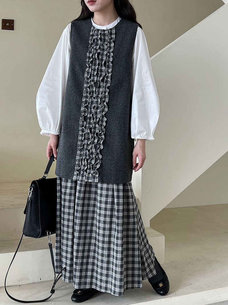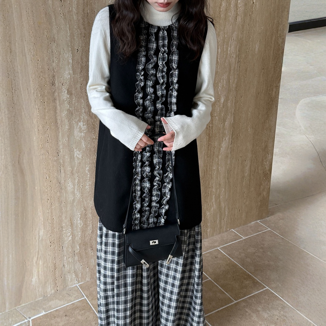 【商品名】【ワンピース】春 秋 冬 チェック柄 マーメイド 花びらツイード ベスト型 ワンピース 【JZシリーズ】