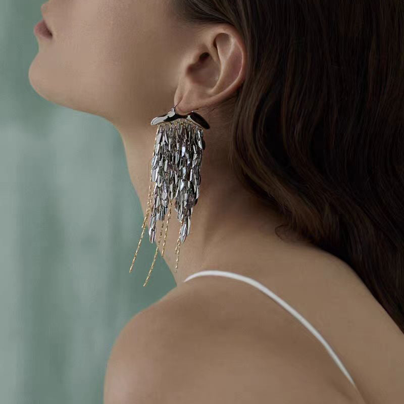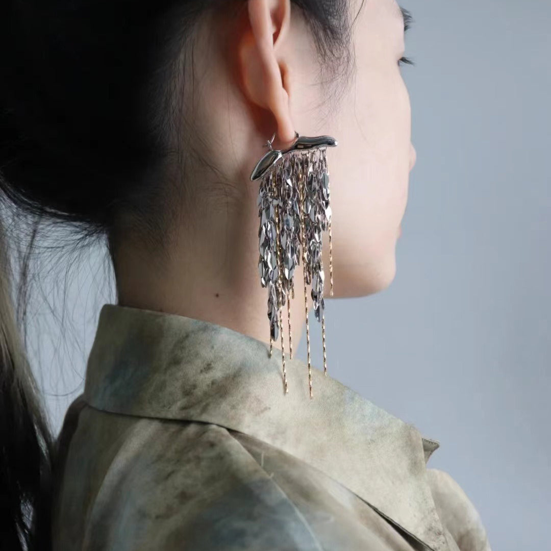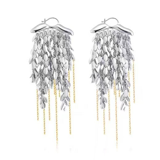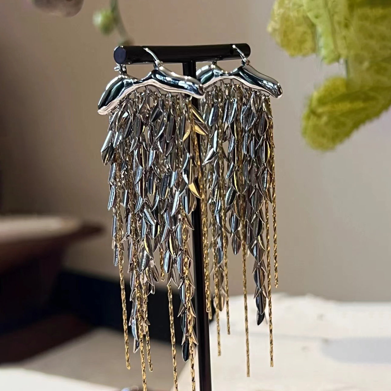 【グッズ】フリンジリーフ 大ぶりイヤリング レディース 個性派 小众デザイン 高級感 おしゃれ ピアス