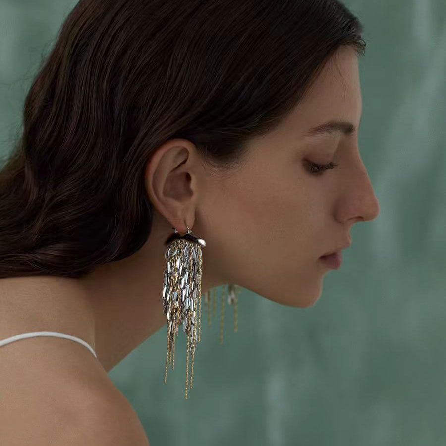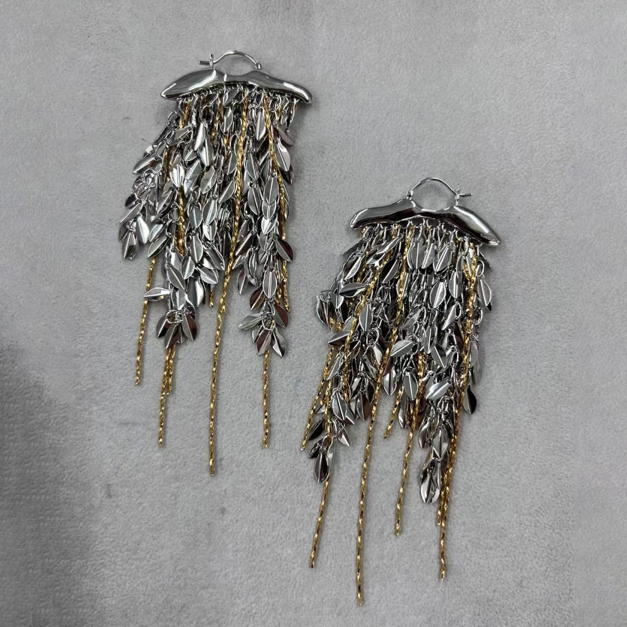 【商品名】【グッズ】フリンジリーフ 大ぶりイヤリング レディース 個性派 小众デザイン 高級感 おしゃれ ピアス