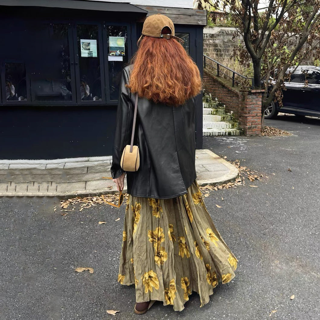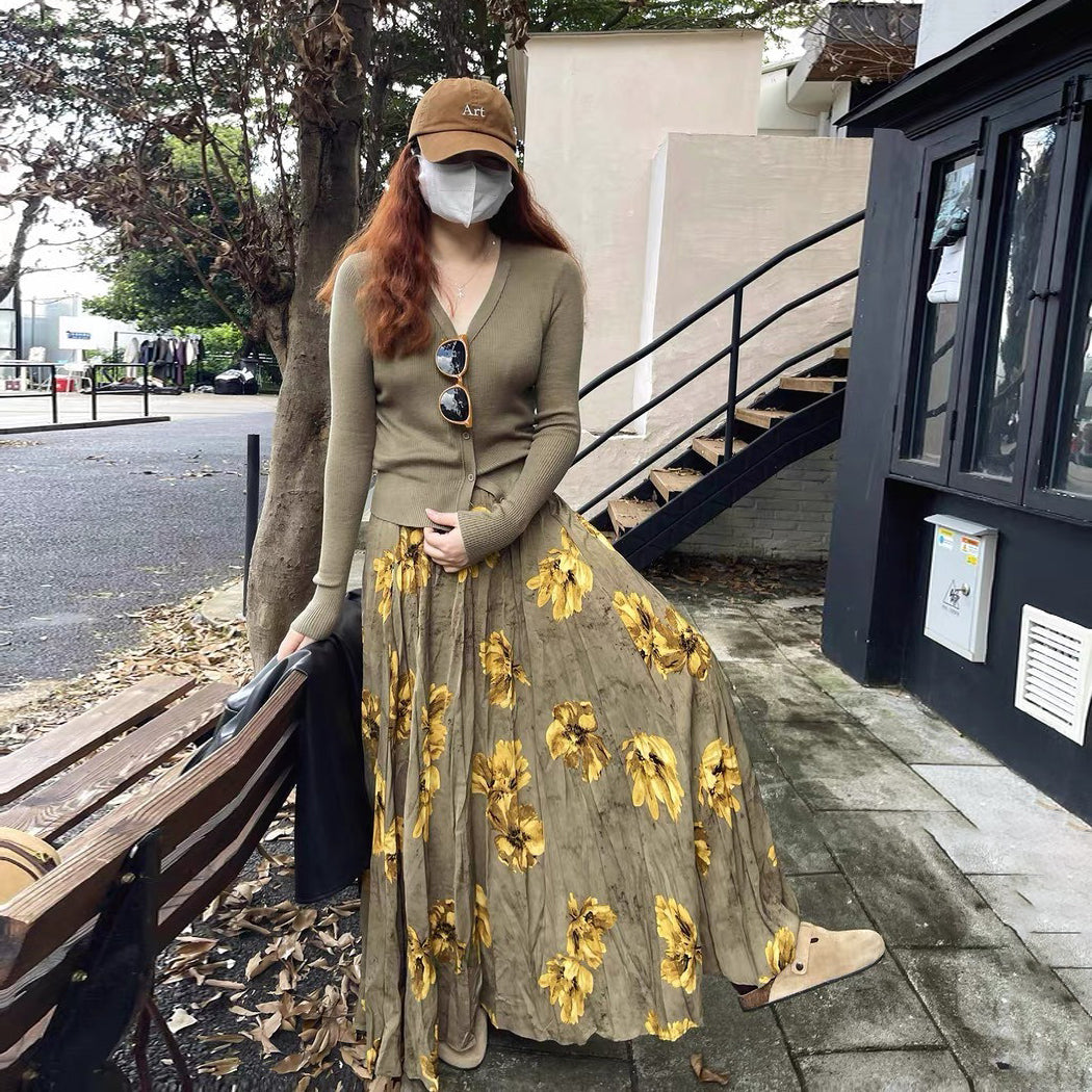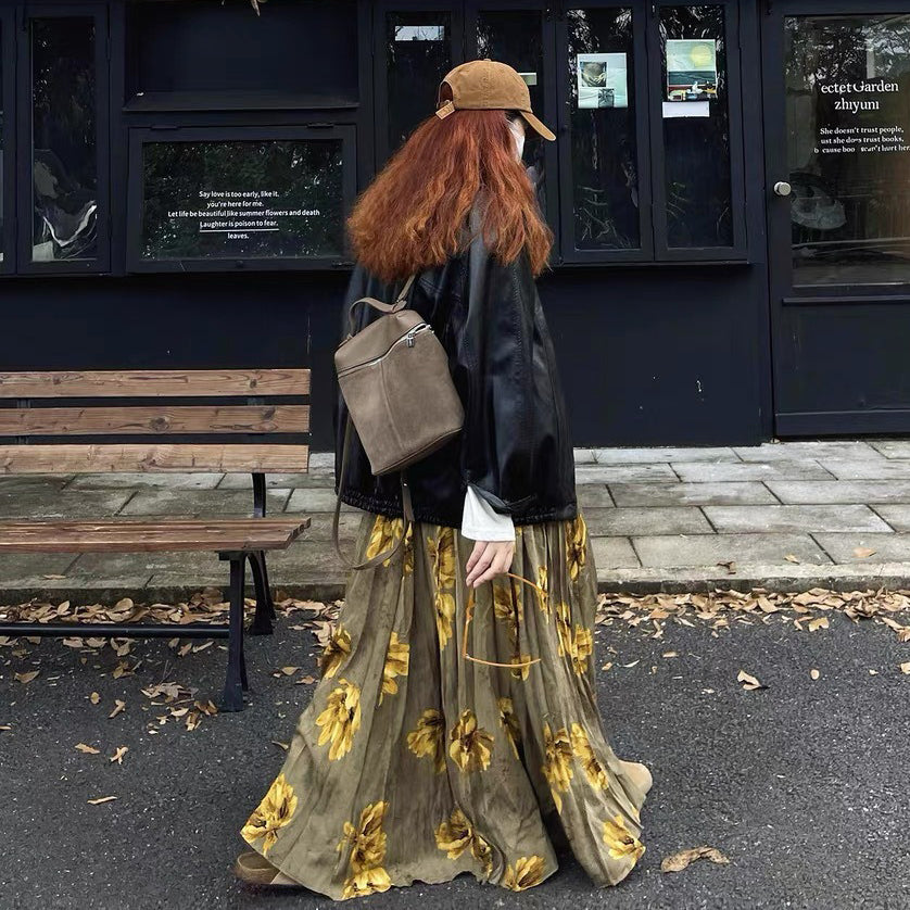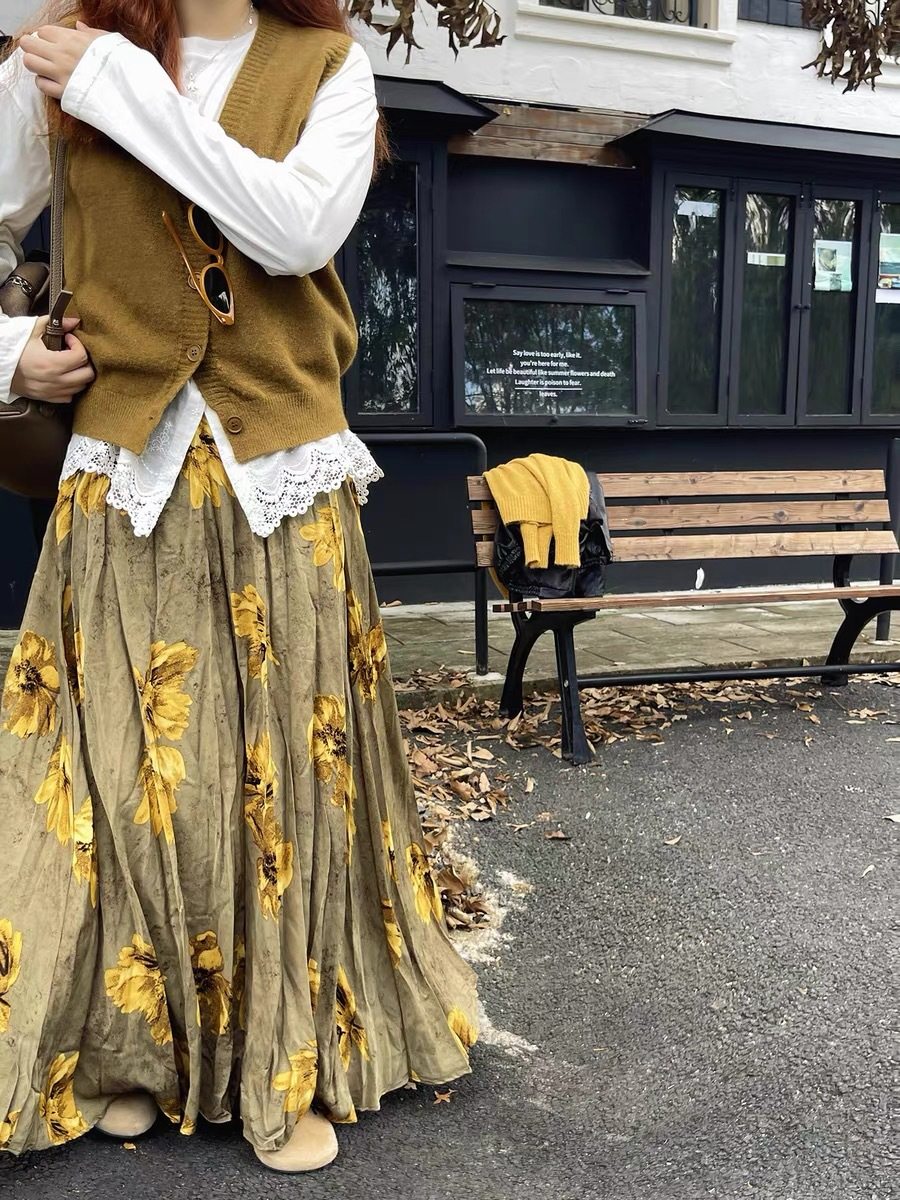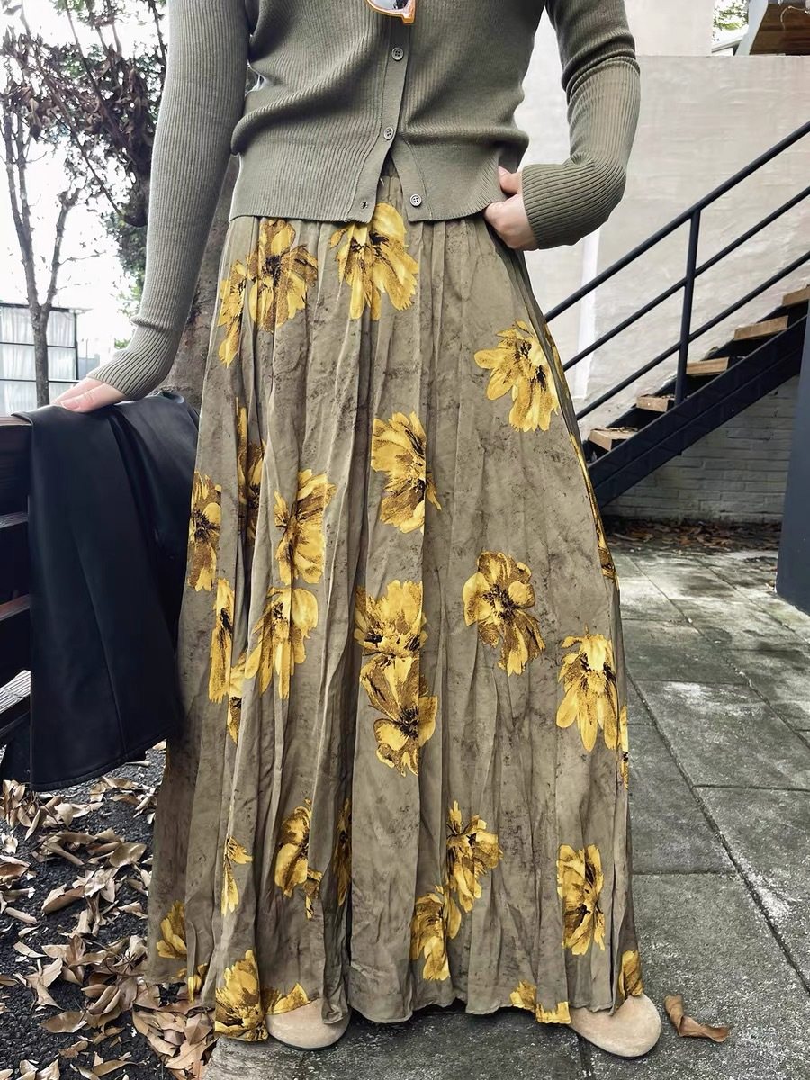 【60%OFF⭐️早い者勝ち】✅️オールシーズン着用OK!【ボトムス】レトロ 秋冬新作 ゆったり体型カバー 大きめフレア ロング フラワー 裏起毛スカート【SHシリーズ】