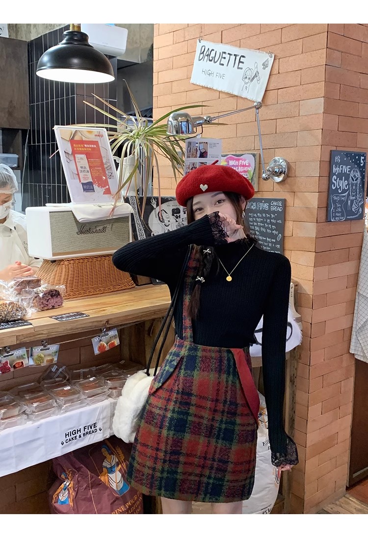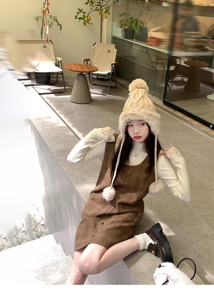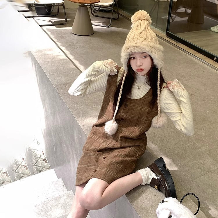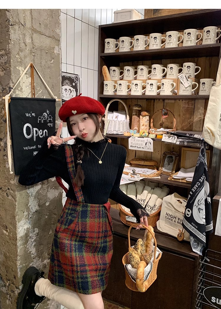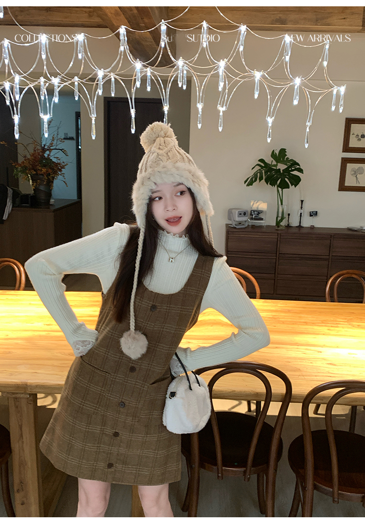 【ワンピース】起毛素材 チェック柄 レトロ クルーネック 長袖 ワンピース 【JZシリーズ】