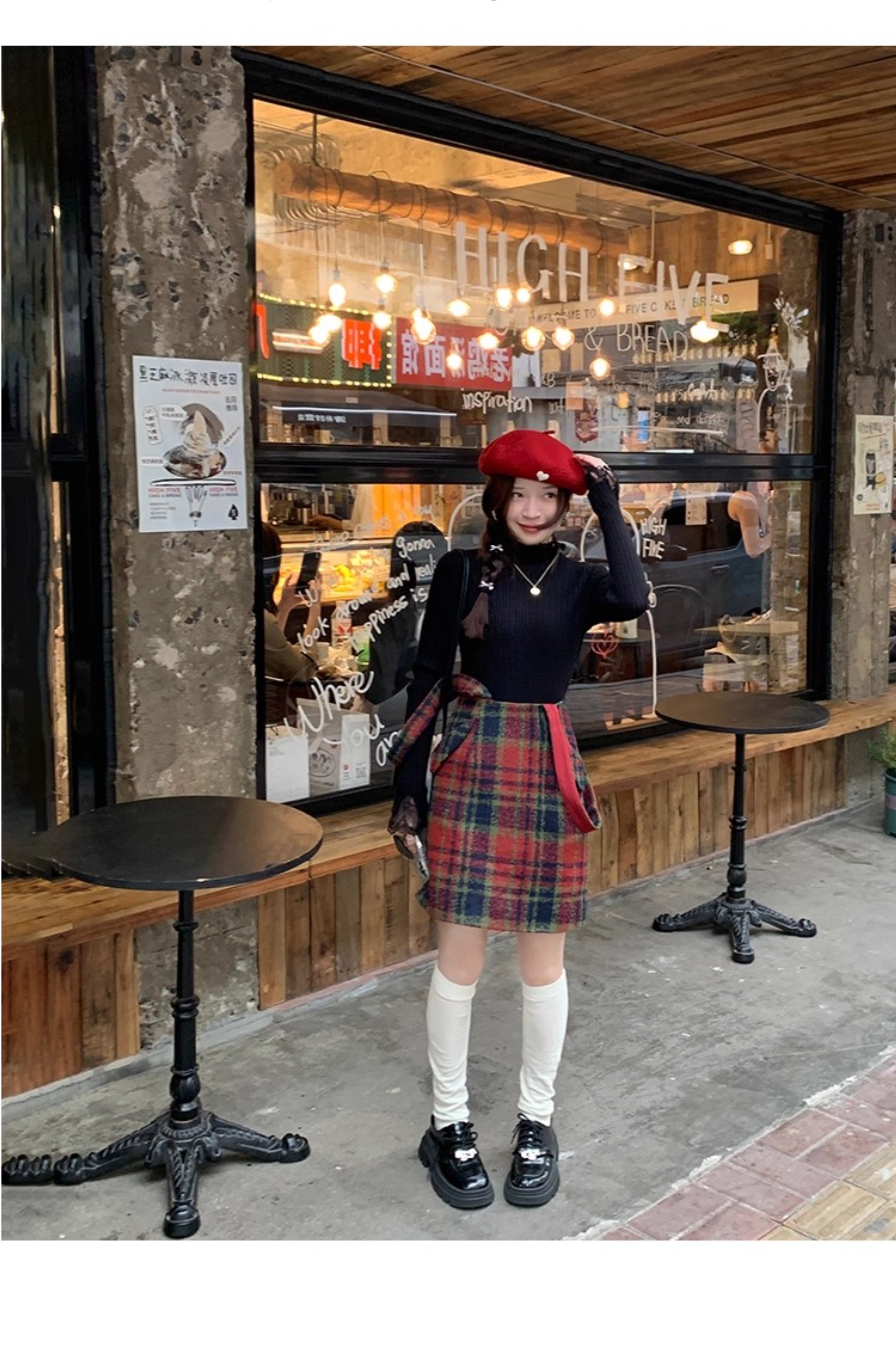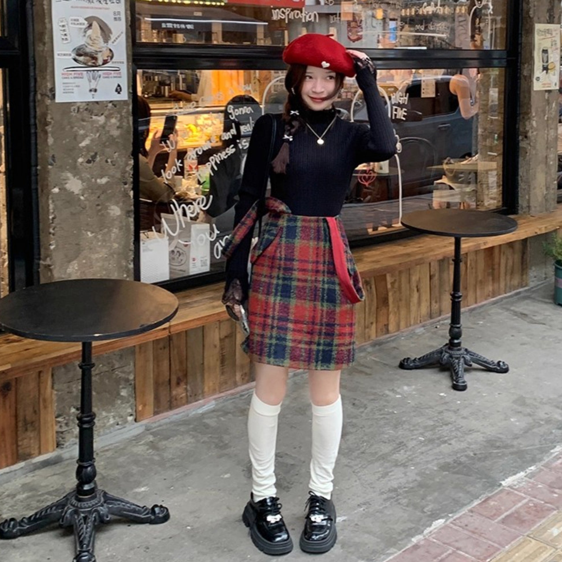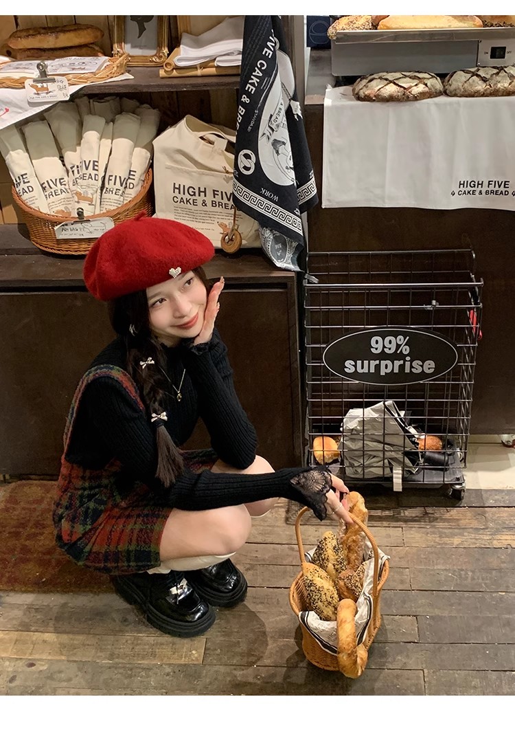 【ワンピース】起毛素材 チェック柄 レトロ クルーネック 長袖 ワンピース 【JZシリーズ】