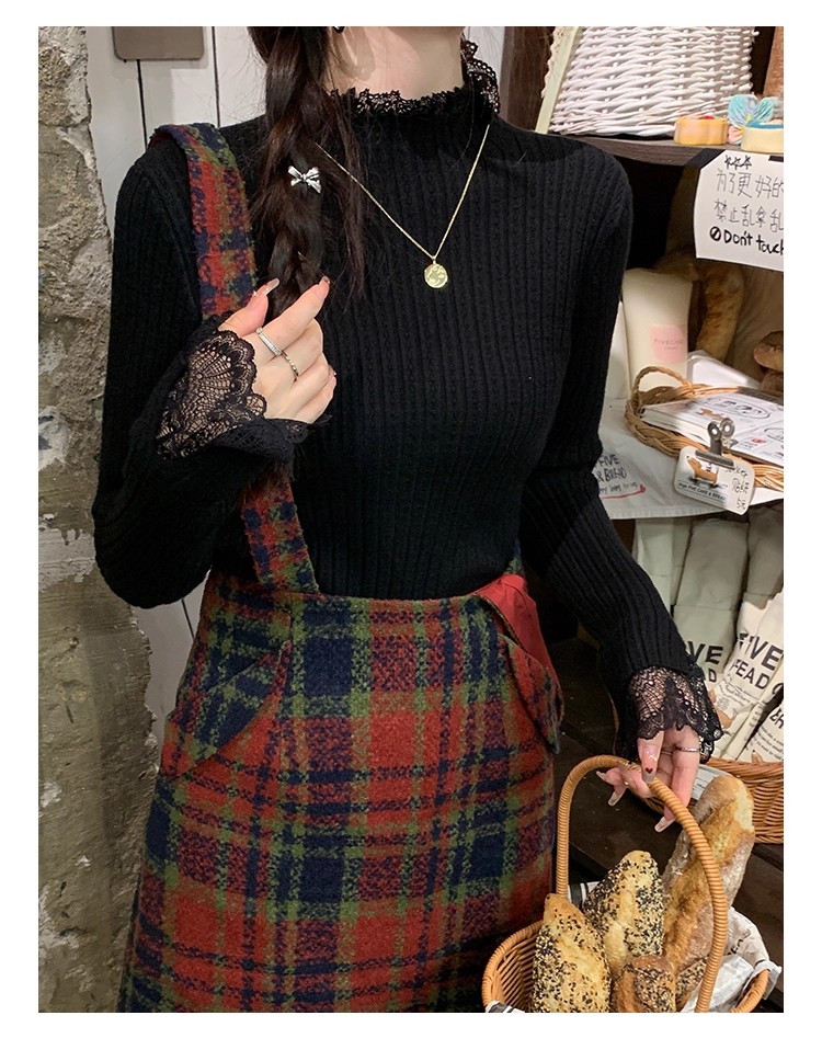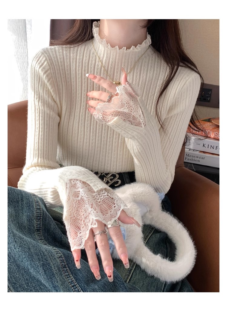 【商品名】【トップス】超万能!フレンチロマン レースフリル付き ニットインナー コーデ【JZシリーズ】