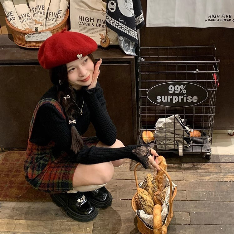 【トップス】超万能!フレンチロマン レースフリル付き ニットインナー コーデ【JZシリーズ】