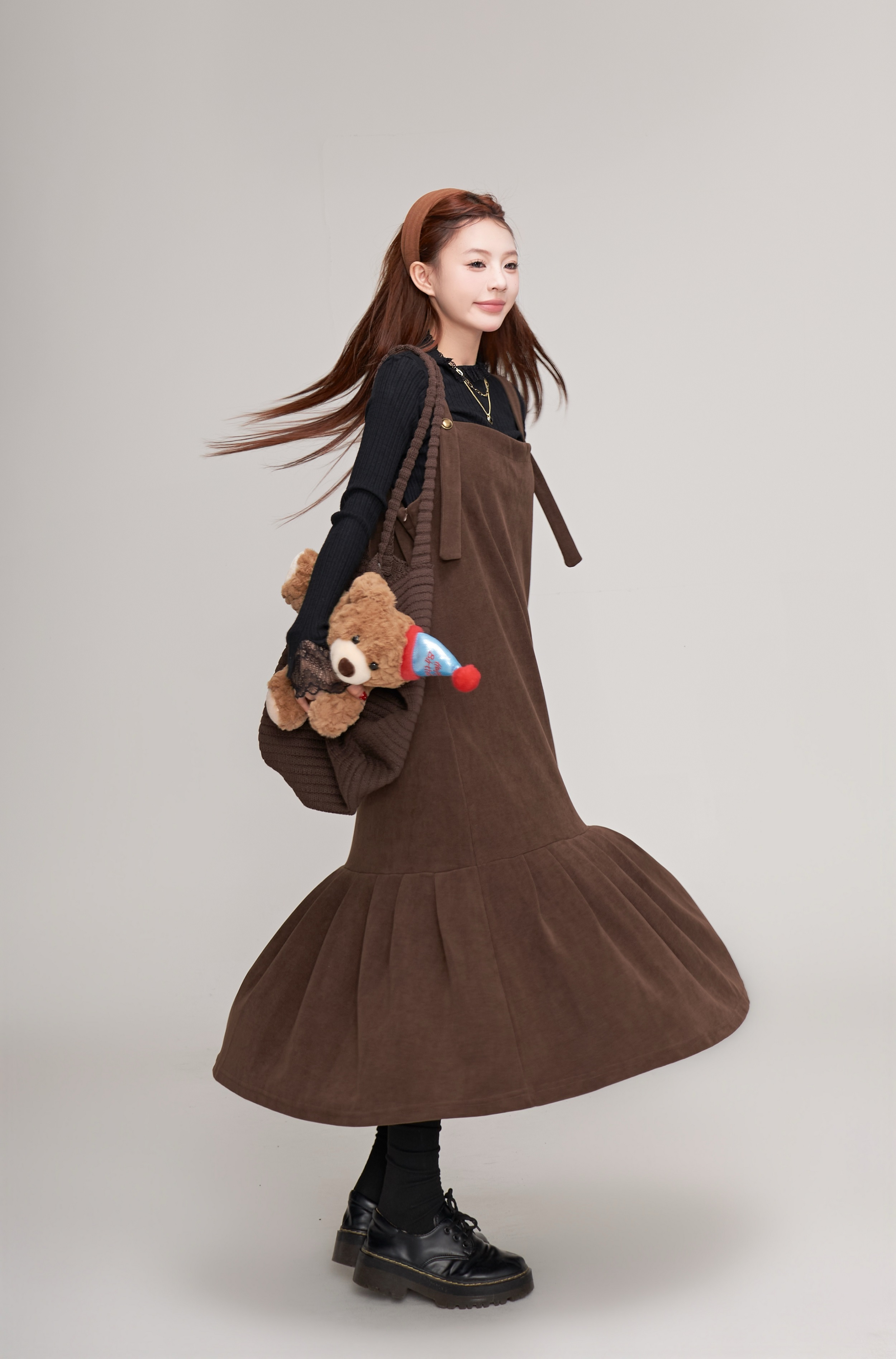【ワンピース】秋冬 フレンチレトロ コーデュロイ マーメイド サロペット ワンピ レディース ノースリーブワンピース【JZシリーズ】