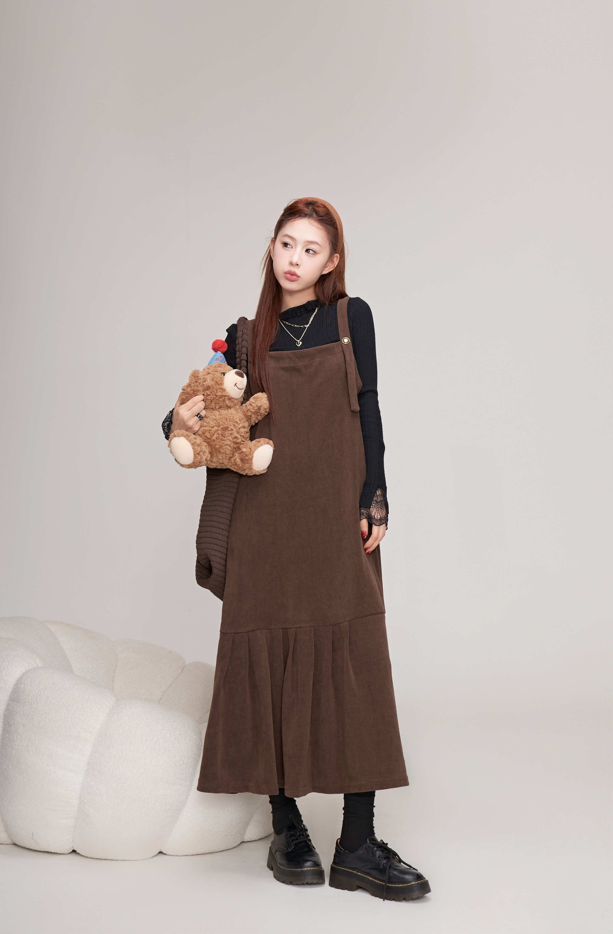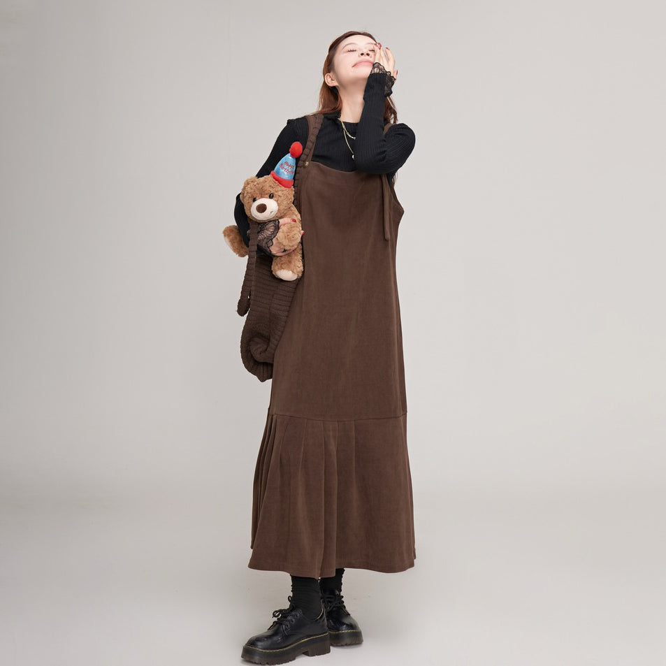 【商品名】【ワンピース】秋冬 フレンチレトロ コーデュロイ マーメイド サロペット ワンピ レディース ノースリーブワンピース【JZシリーズ】
