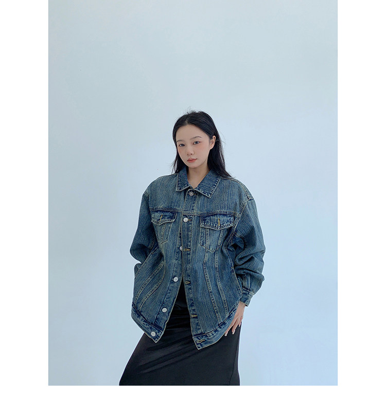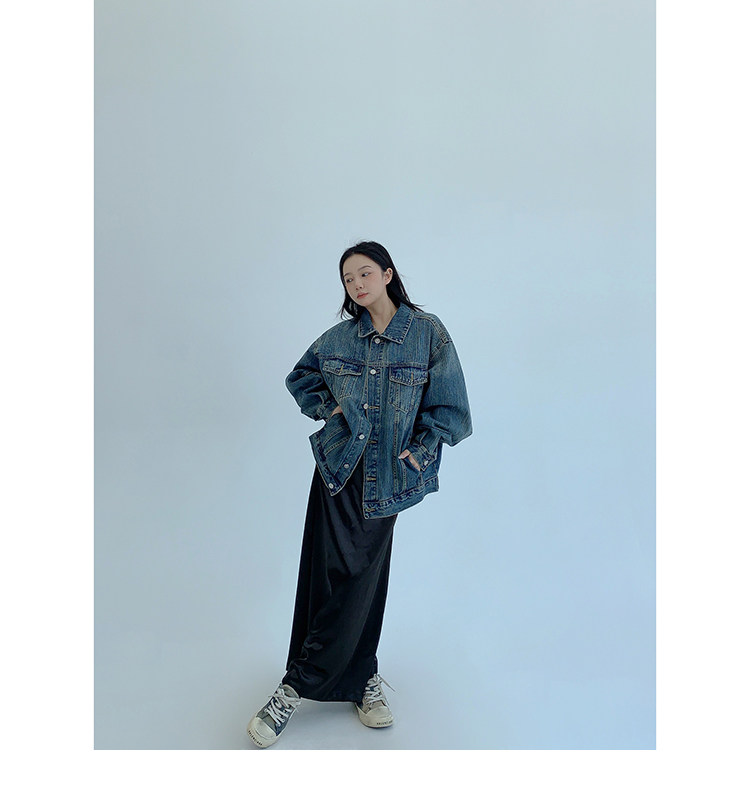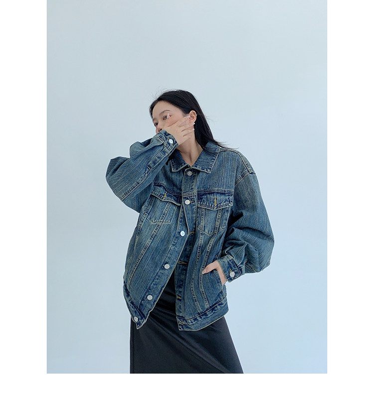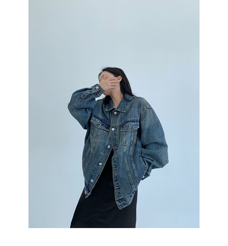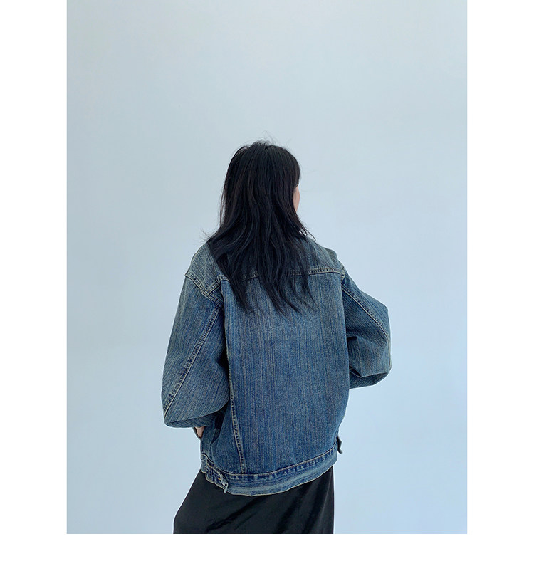 【トップス】春秋冬 Oversize レトロ 刺繍 ゆったり フード付き デニム パーカー【FCシリーズ】【15~20日発送】