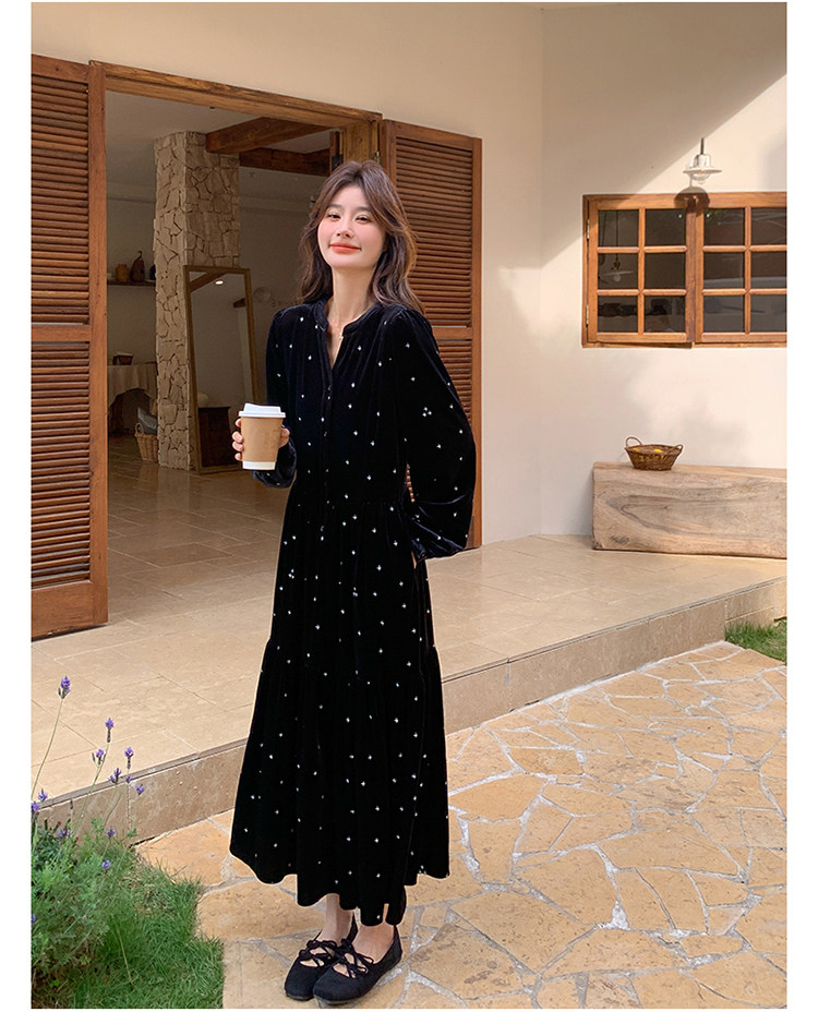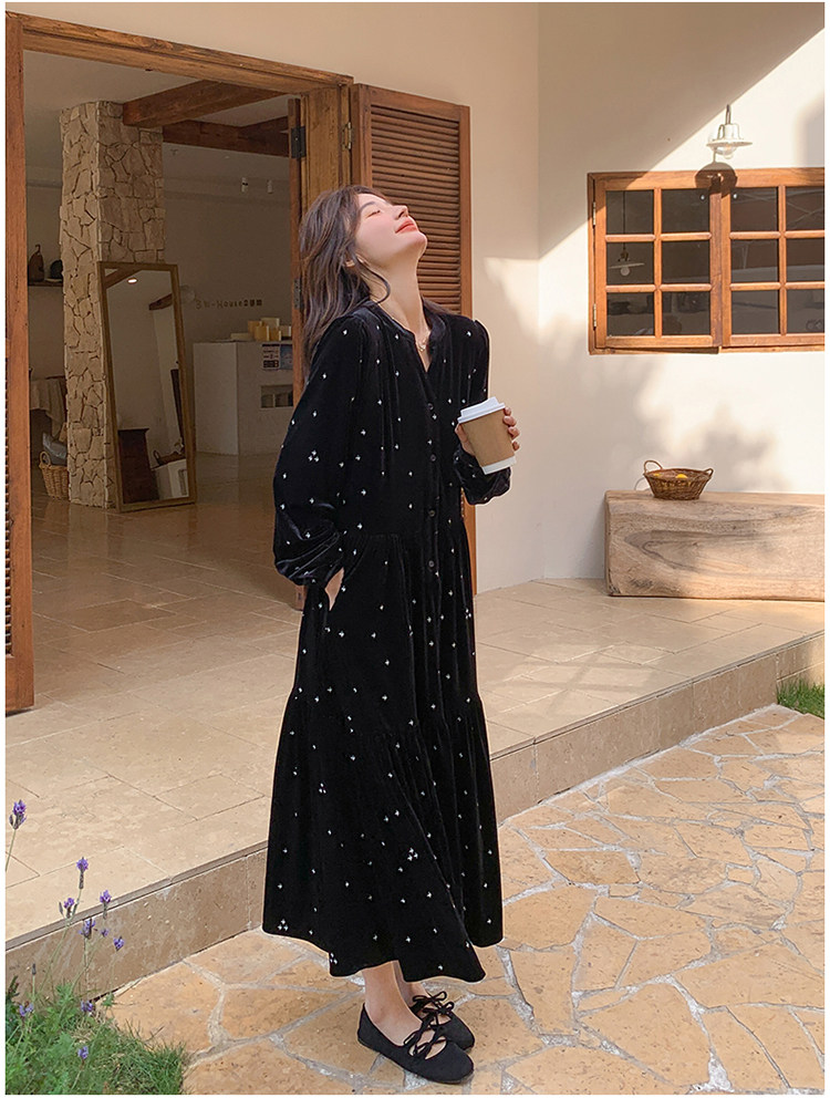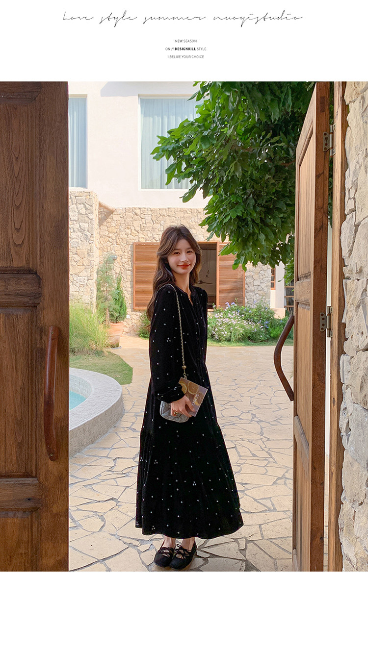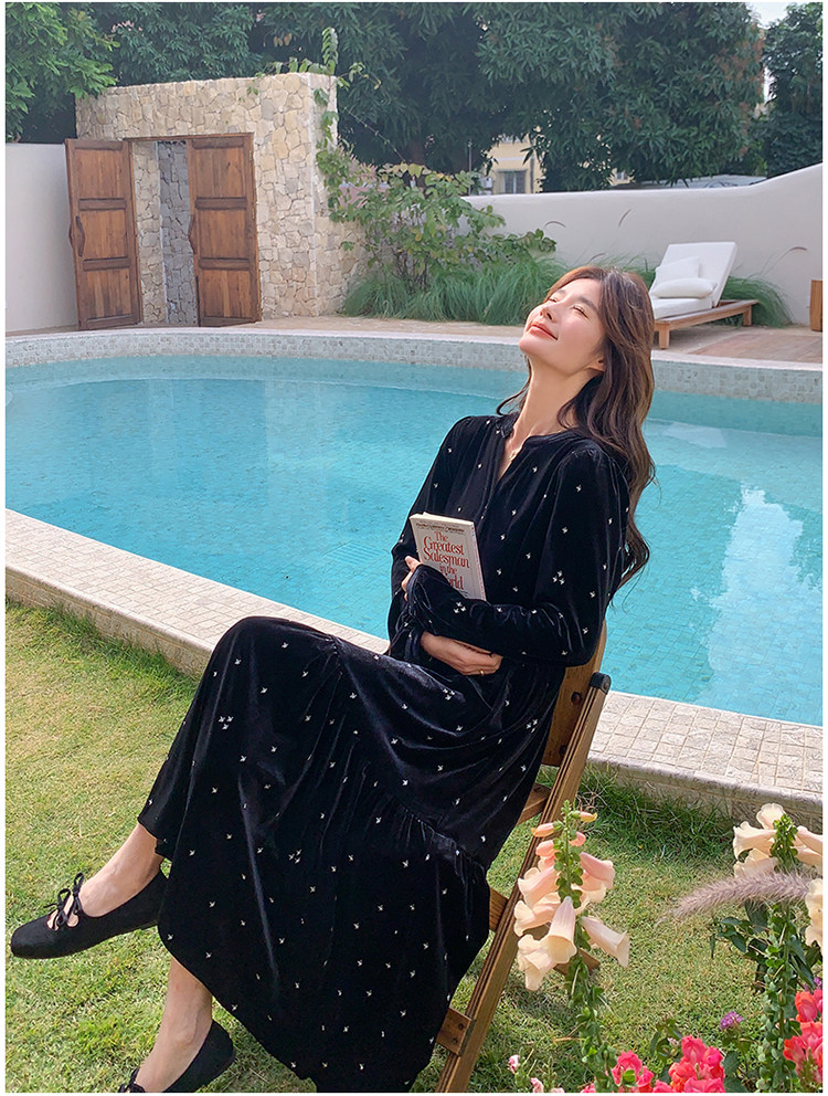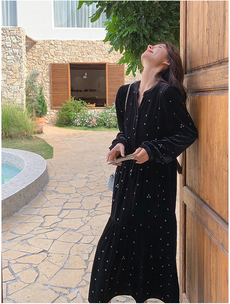 【67%OFF⭐️早い者勝ち】【ワンピース】春 秋 冬 大人フェミニン フレンチレトロ 刺繍 ベルベット 気質よい 長袖ワンピース【SHシリーズ】