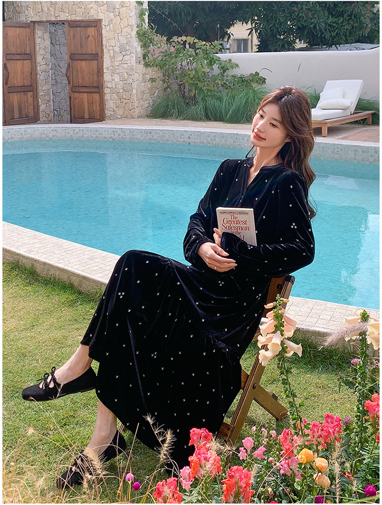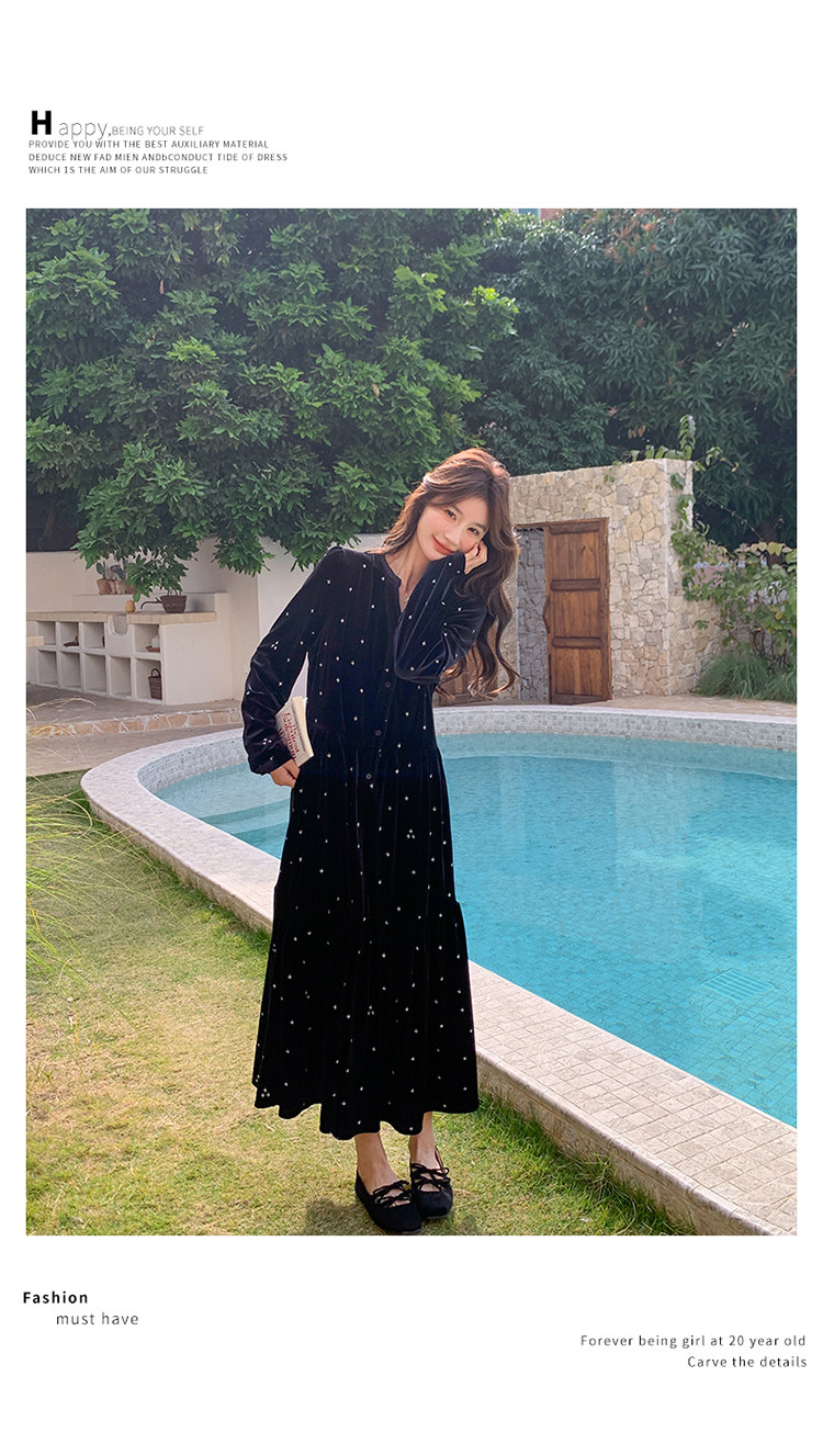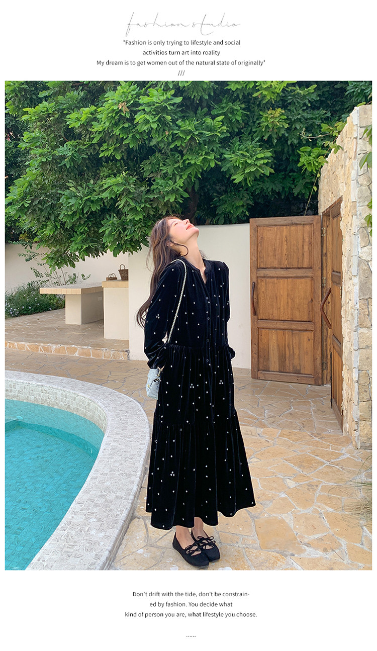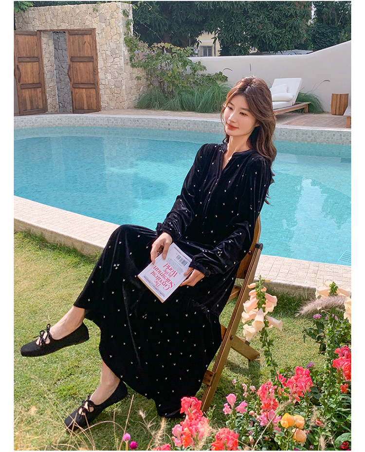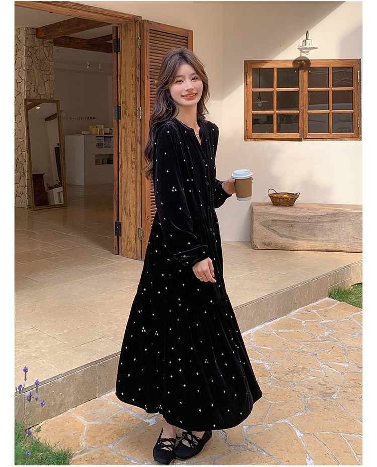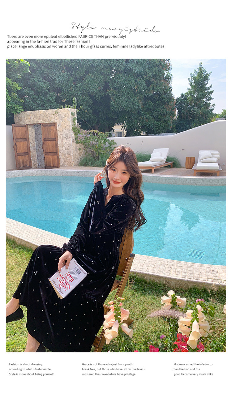 【67%OFF⭐️早い者勝ち】【ワンピース】春 秋 冬 大人フェミニン フレンチレトロ 刺繍 ベルベット 気質よい 長袖ワンピース【SHシリーズ】