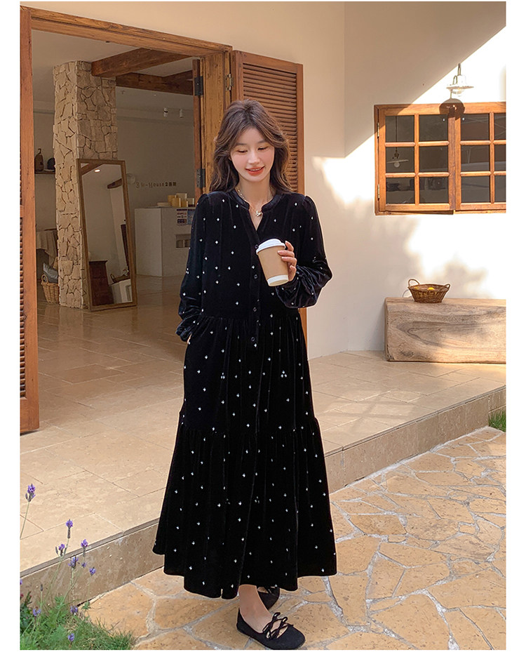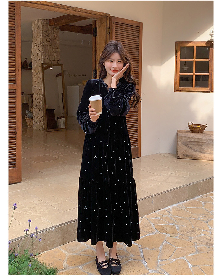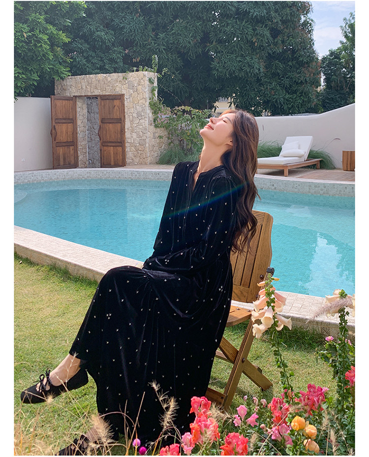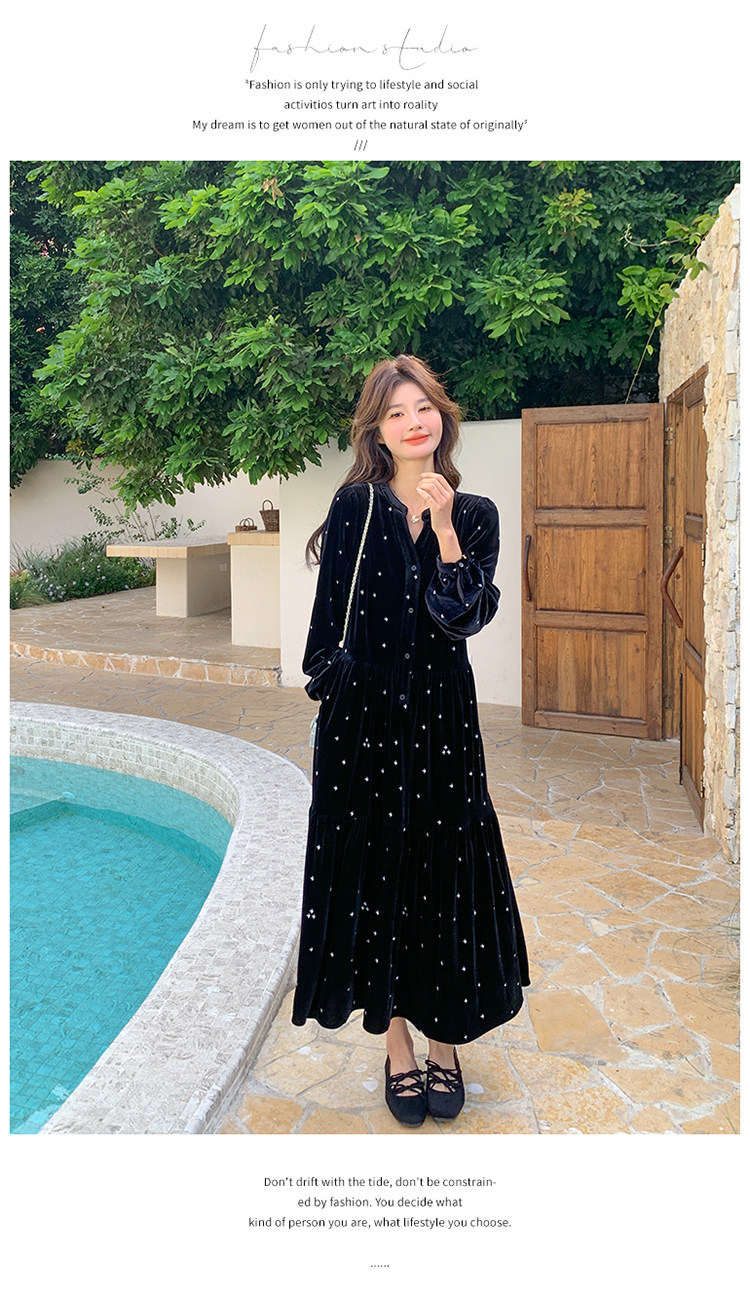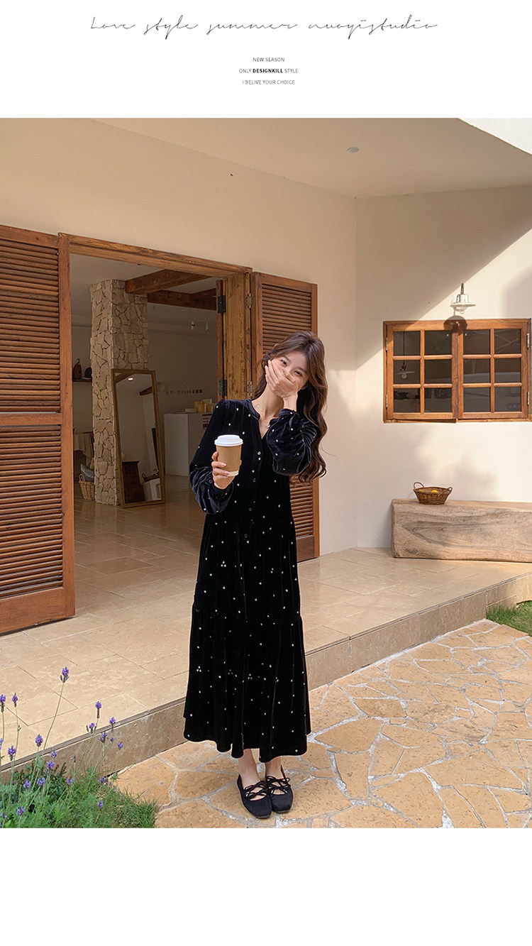 【67%OFF⭐️早い者勝ち】【ワンピース】春 秋 冬 大人フェミニン フレンチレトロ 刺繍 ベルベット 気質よい 長袖ワンピース【SHシリーズ】