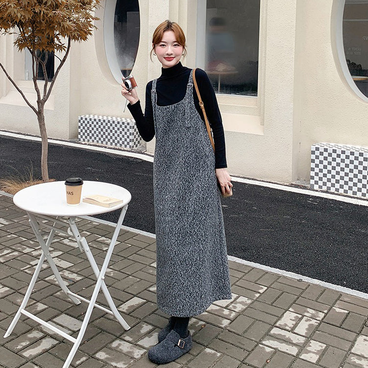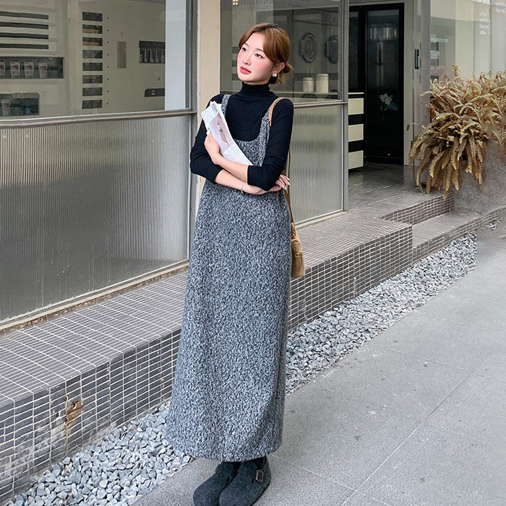 【商品名】2点セット!【セットアップ】大人可愛い ウールキャミワンピース+インナートップスセット レディース 秋冬 韓国風オシャレ【JZシリーズ】