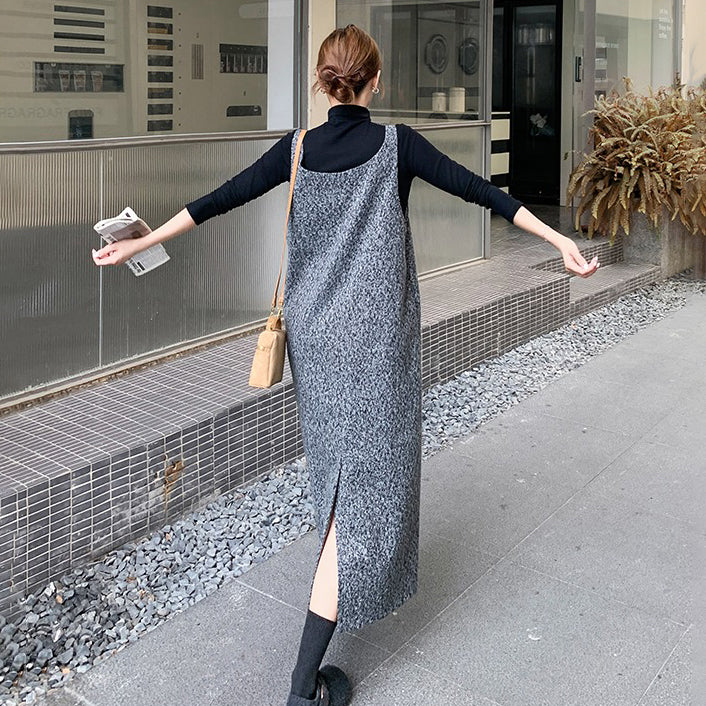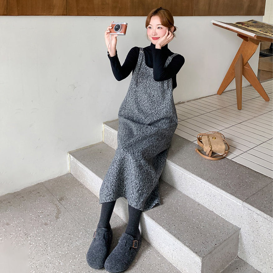 2点セット!【セットアップ】大人可愛い ウールキャミワンピース+インナートップスセット レディース 秋冬 韓国風オシャレ【JZシリーズ】