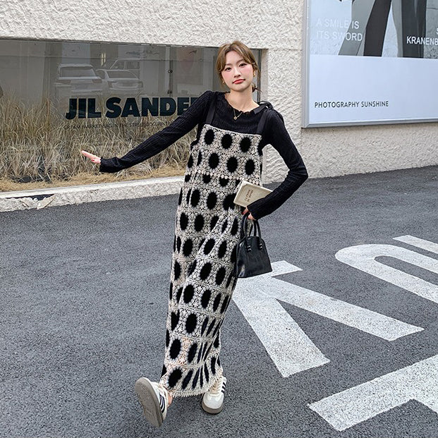 【ワンピース】起毛素材 チェック柄 レトロ クルーネック 長袖 ワンピース 【JZシリーズ】