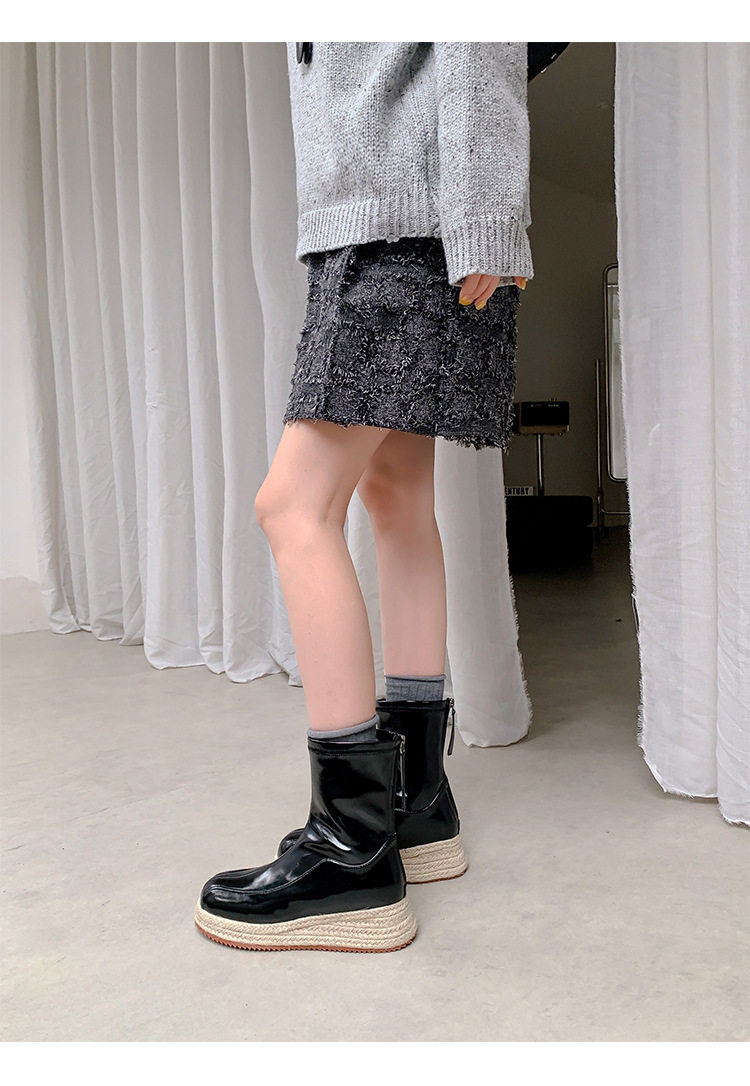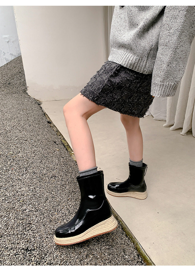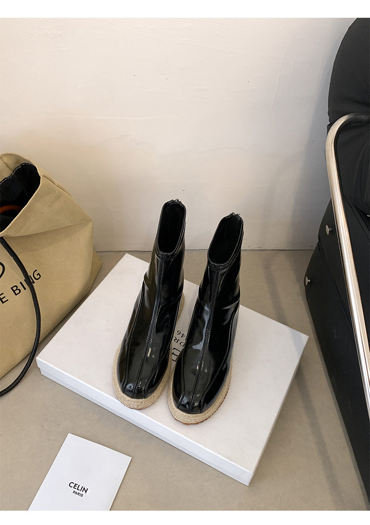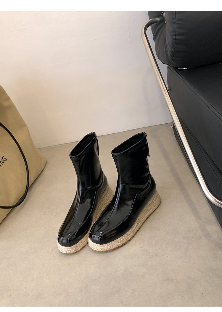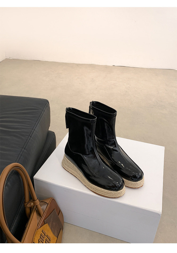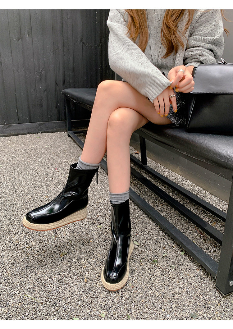 【シューズ】ウェッジヒール スクエアトゥ バックジップ エスパドリーユ 厚底ブーツ