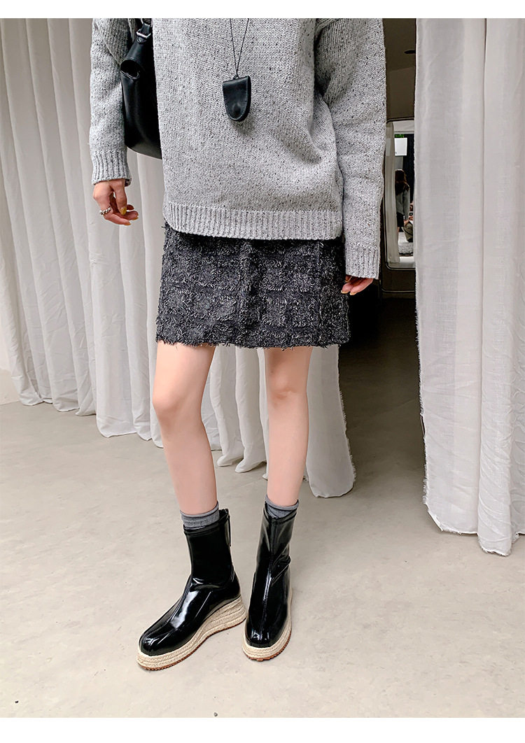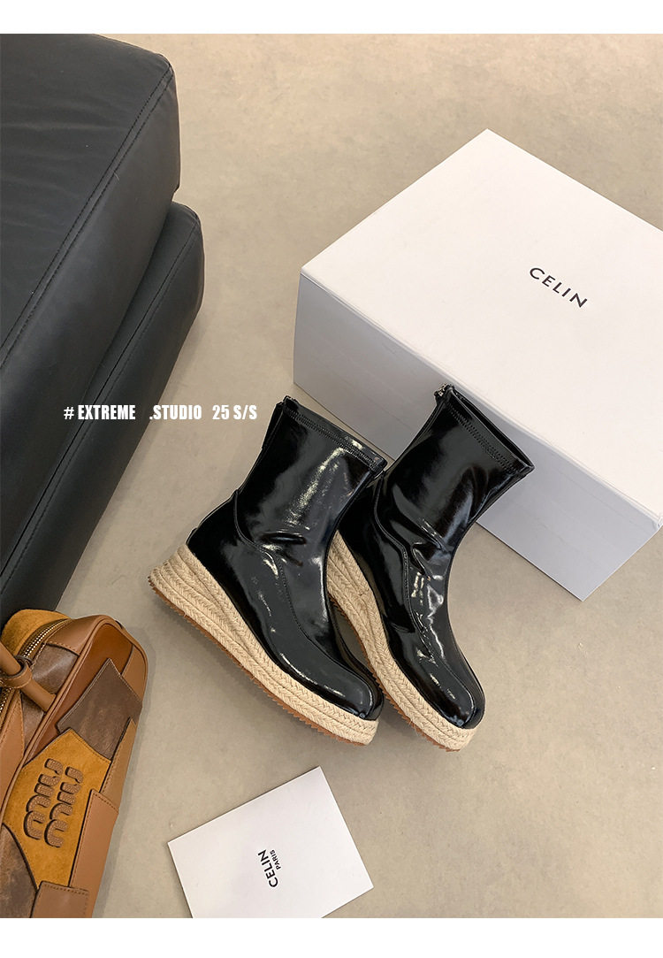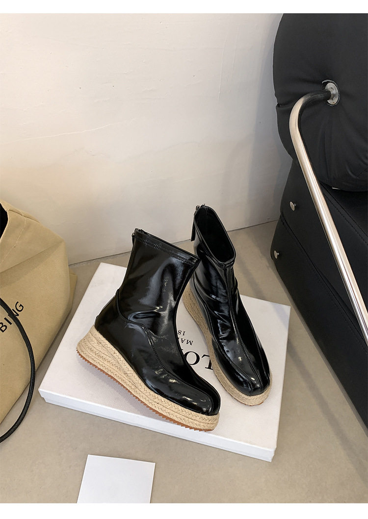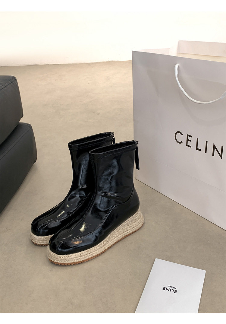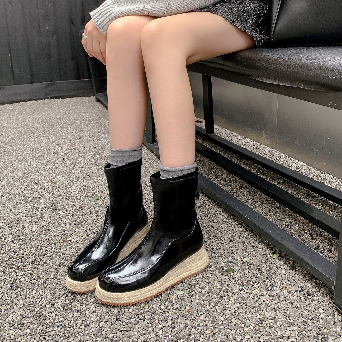 【シューズ】ウェッジヒール スクエアトゥ バックジップ エスパドリーユ 厚底ブーツ