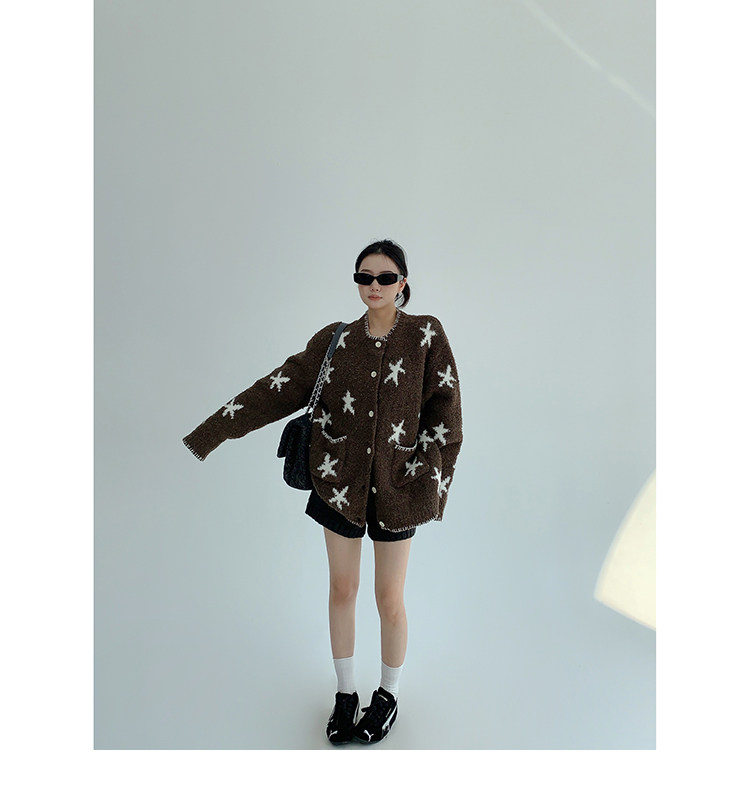 【商品名】【アウター】春 秋 冬 ジャガード 厚手 ニット セーター カーディガン ジャケット 【FCシリーズ】