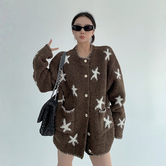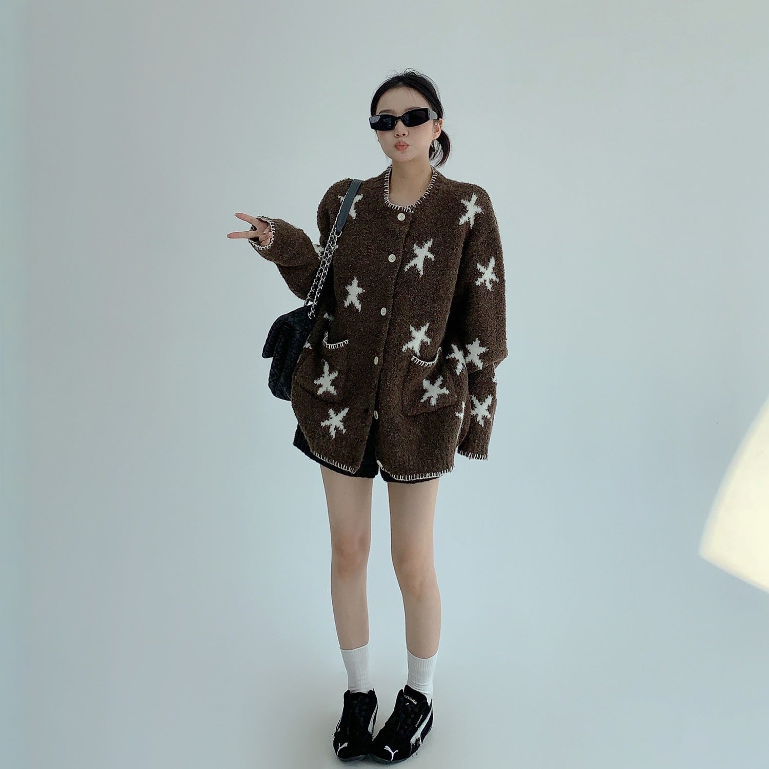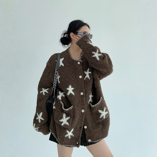 【アウター】春 秋 冬 ジャガード 厚手 ニット セーター カーディガン ジャケット 【FCシリーズ】