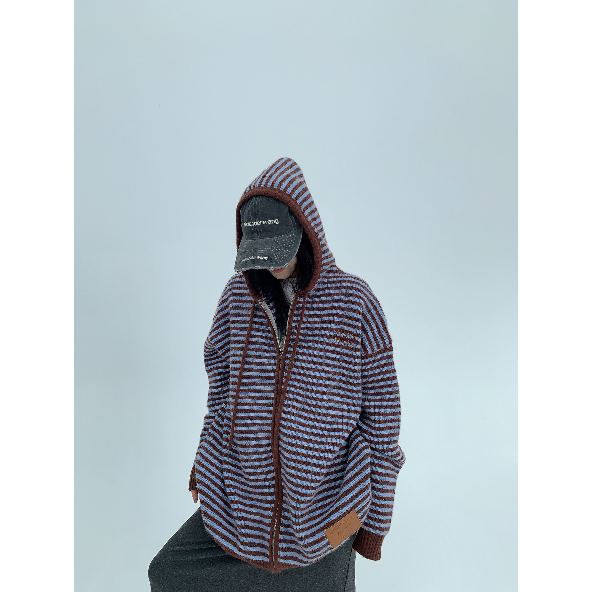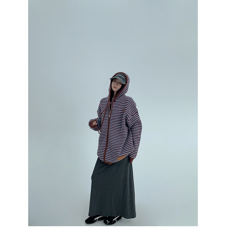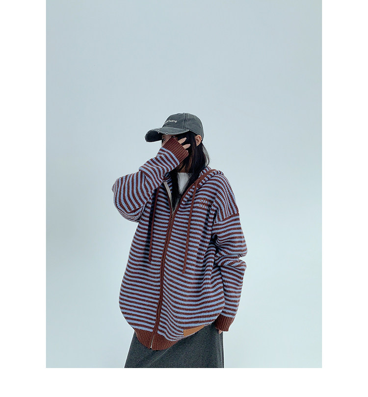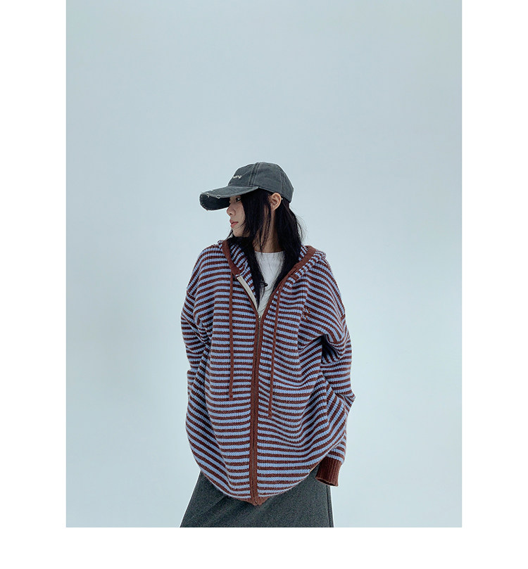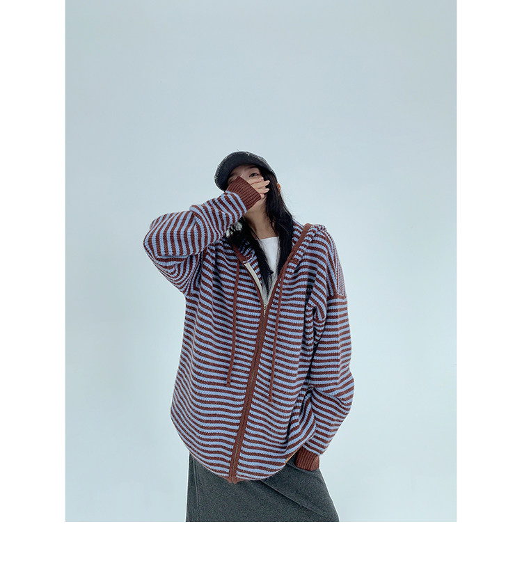 【商品名】【アウター】春 秋 冬 ボーダー 厚手 フード付き ゆる感 ジャケット 【FCシリーズ】