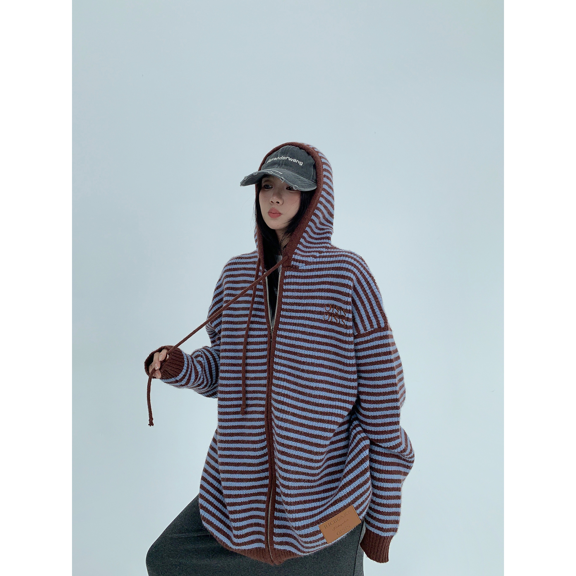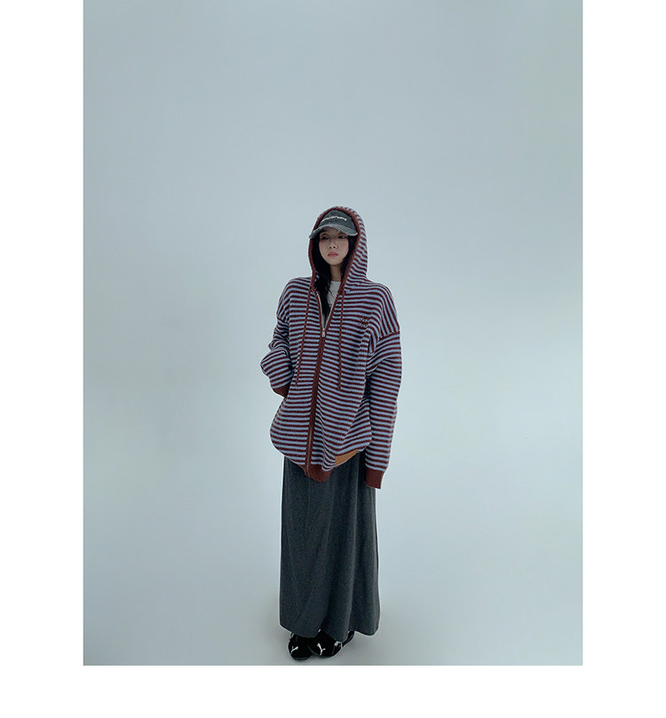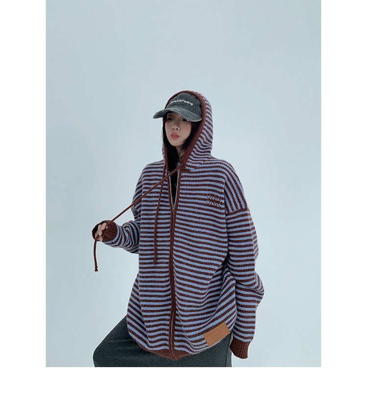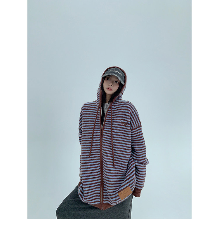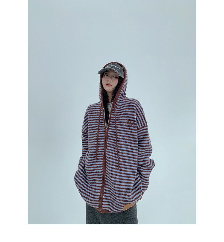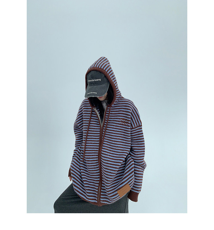 【商品名】【アウター】春 秋 冬 ボーダー 厚手 フード付き ゆる感 ジャケット 【FCシリーズ】