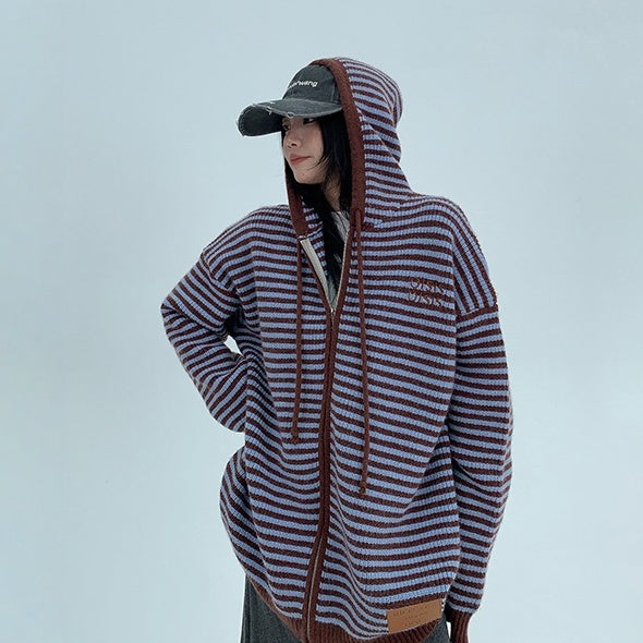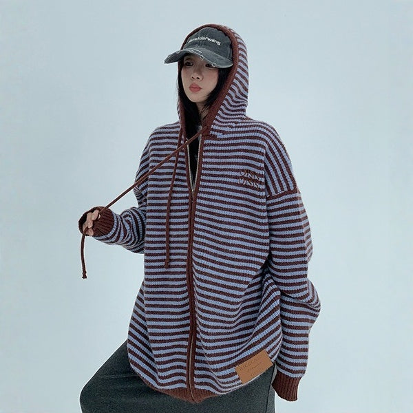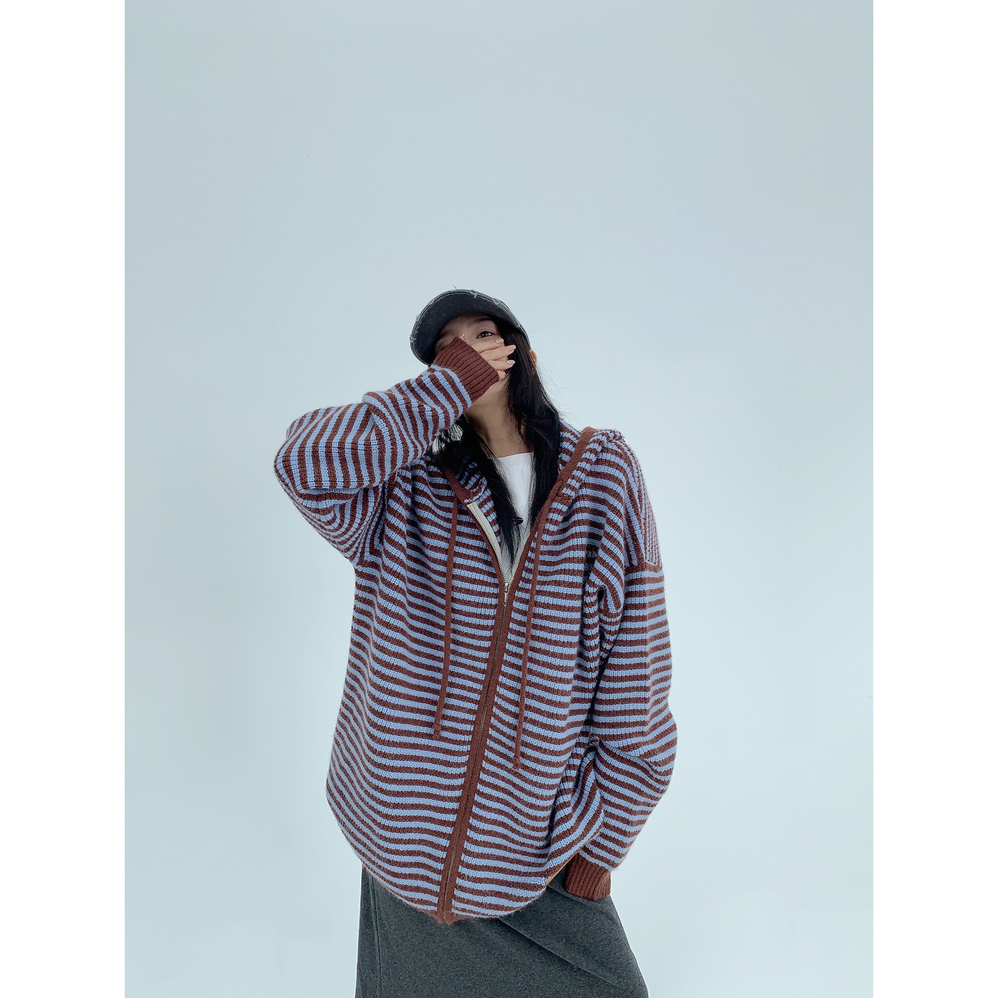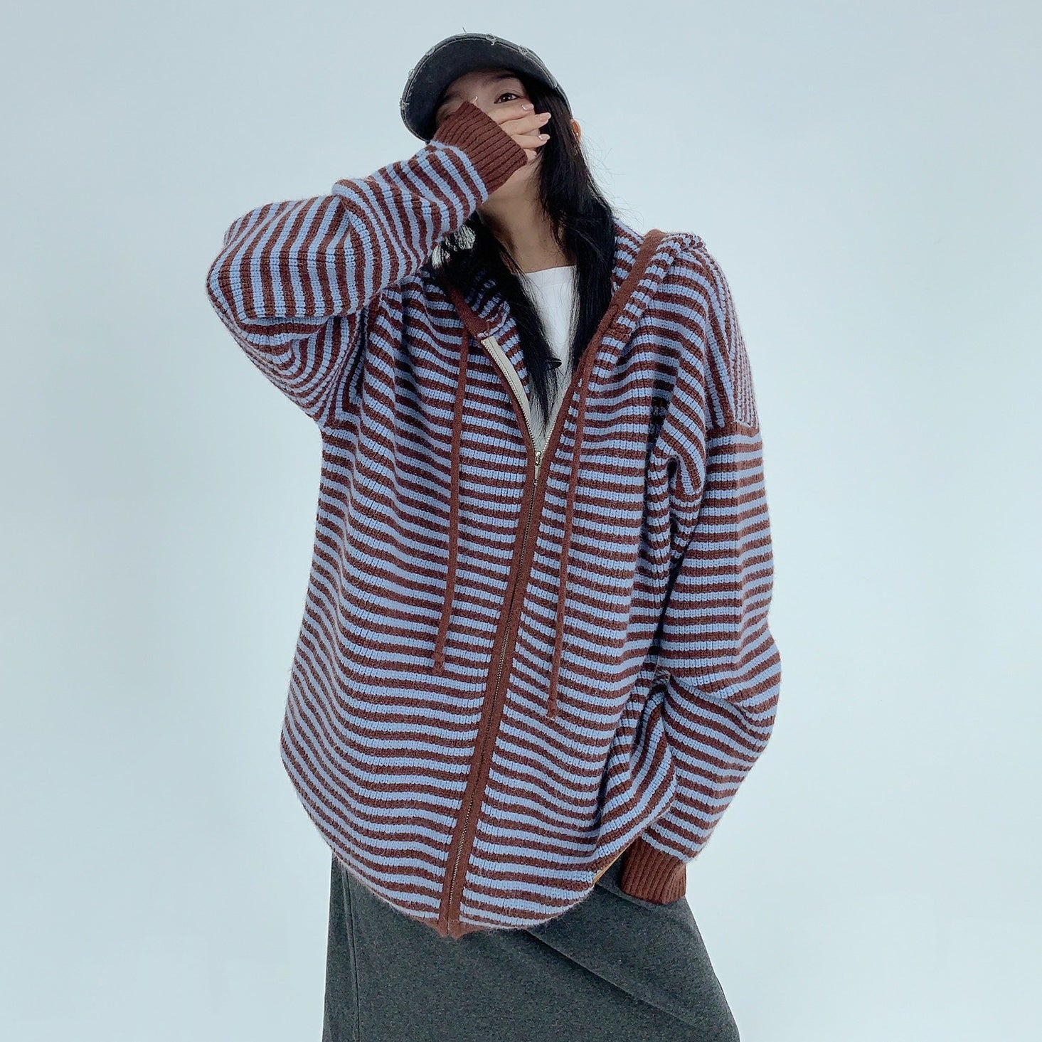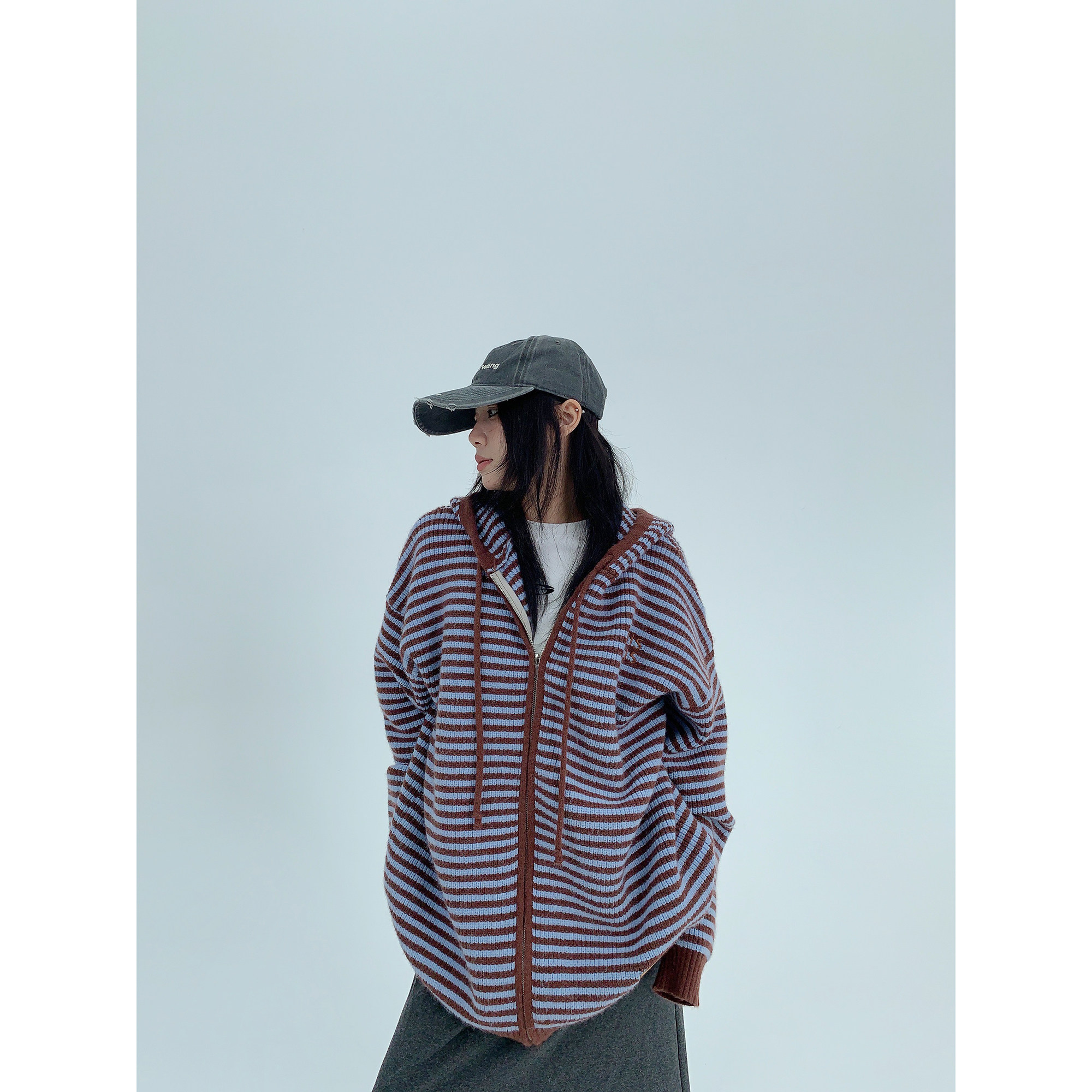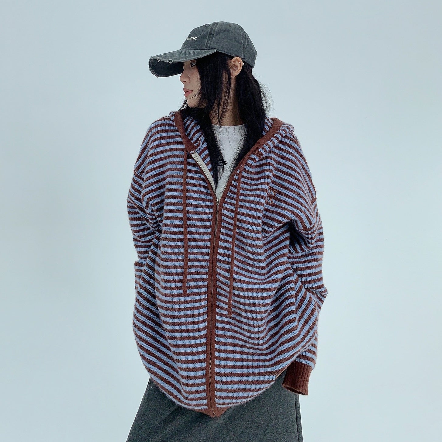 【アウター】春 秋 冬 ボーダー 厚手 フード付き ゆる感 ジャケット 【FCシリーズ】
