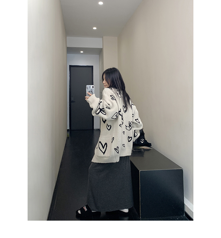 【商品名】【アウター】レトロ ルーズ ゆるめ 厚手 Vネック ニットセーター カーディガン