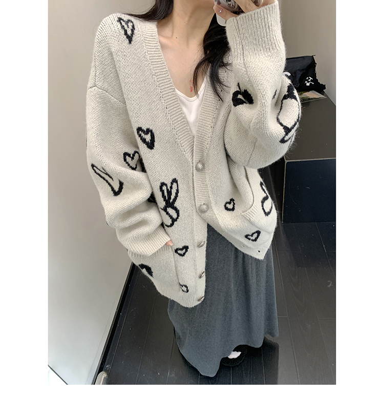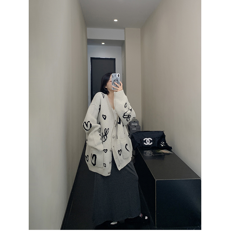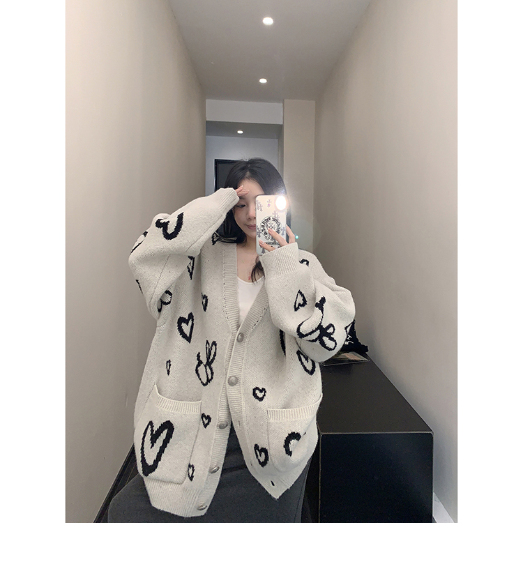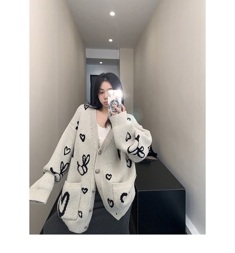 【アウター】レトロ ルーズ ゆるめ 厚手 Vネック ニットセーター カーディガン 【FCシリーズ】