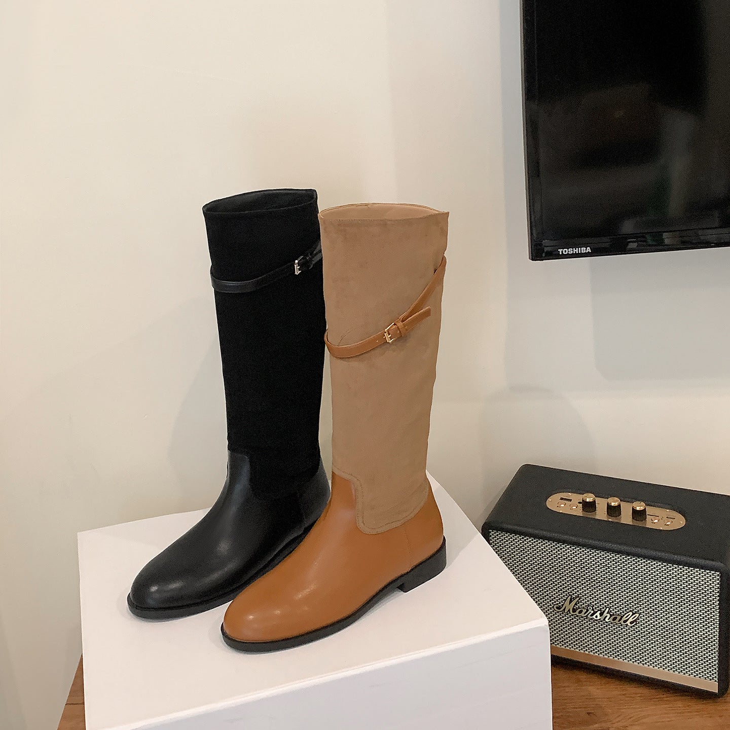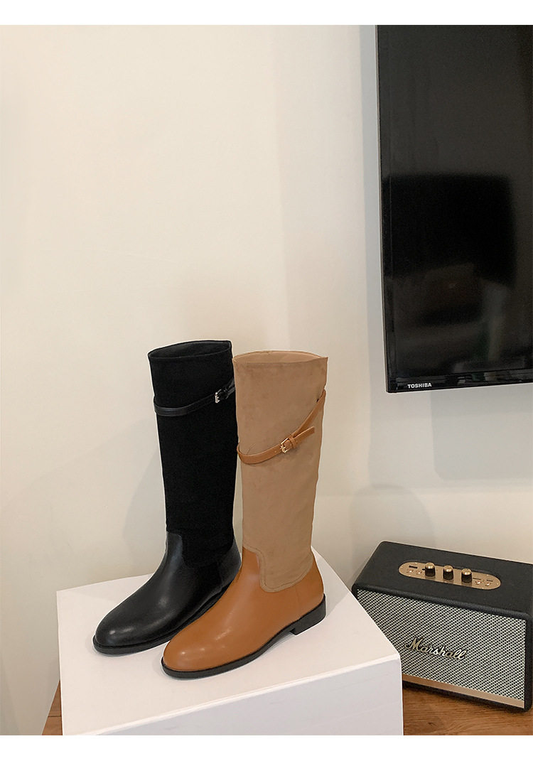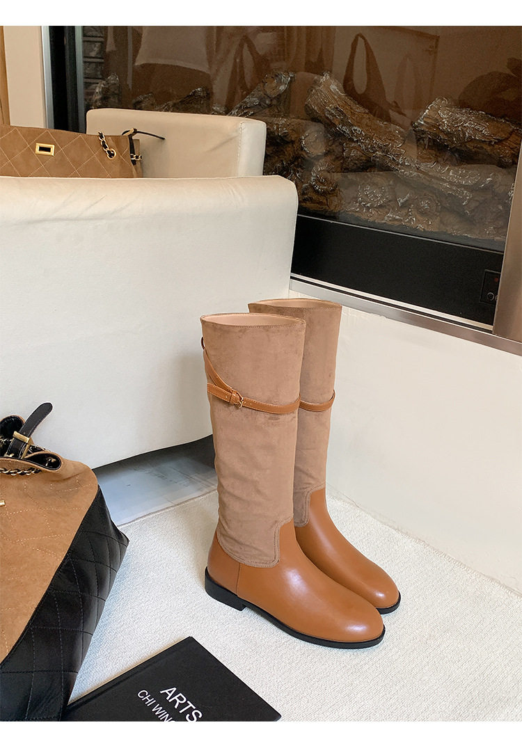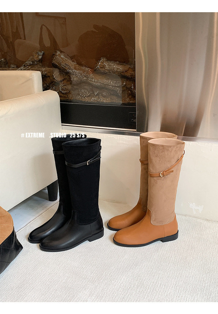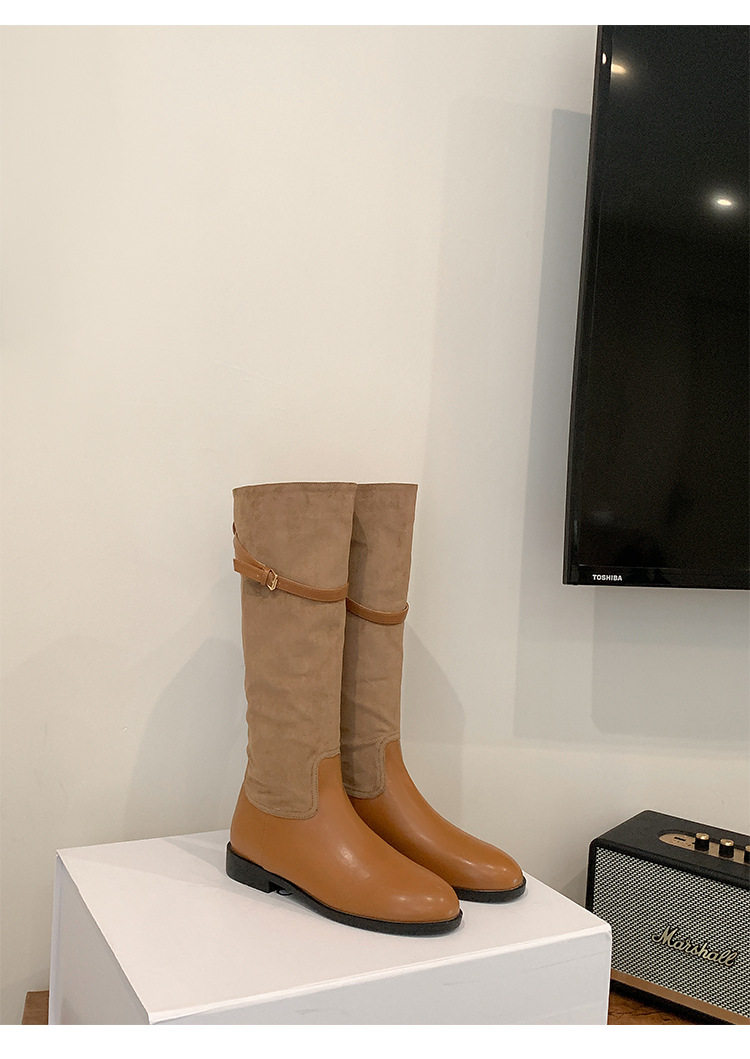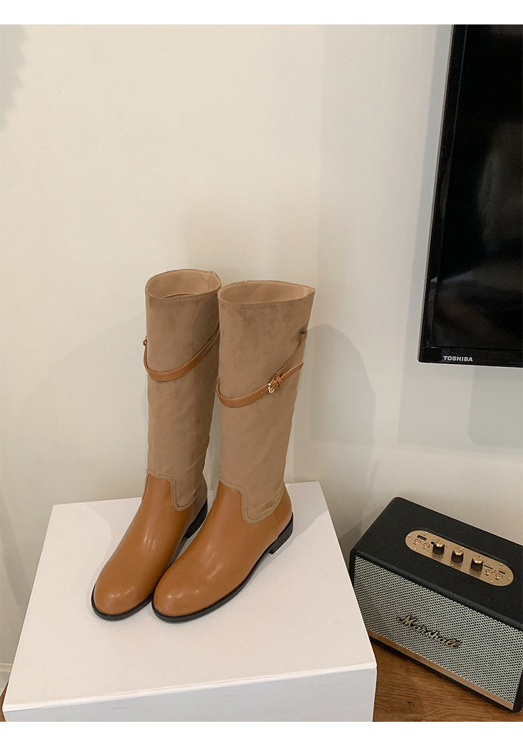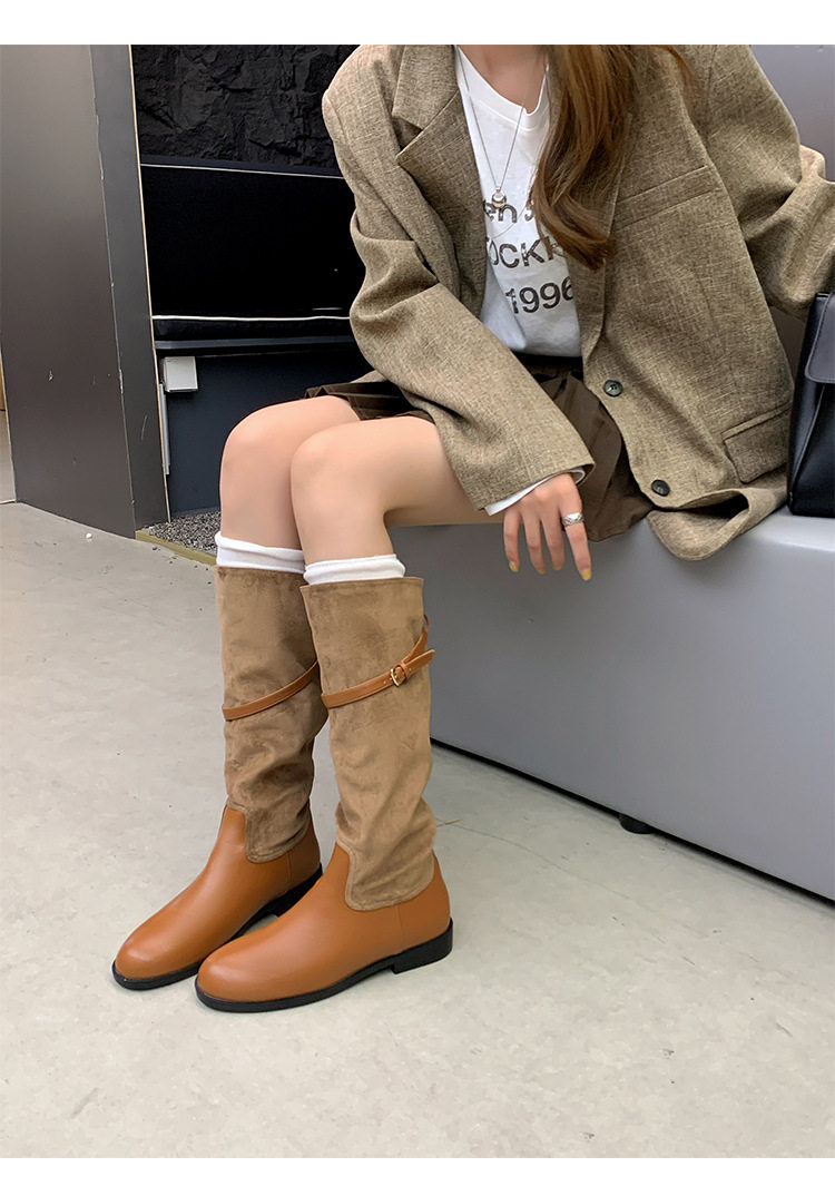 【シューズ】🍂キャラメルブラウン ベルト付きヴィンテージ風ハイカットウエスタンブーツ💫スエードラウンドトゥ レディース