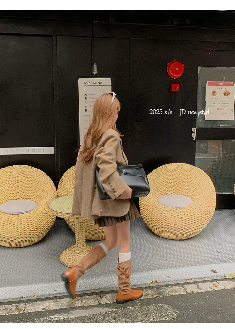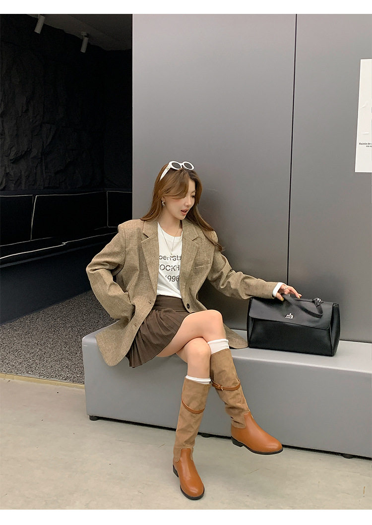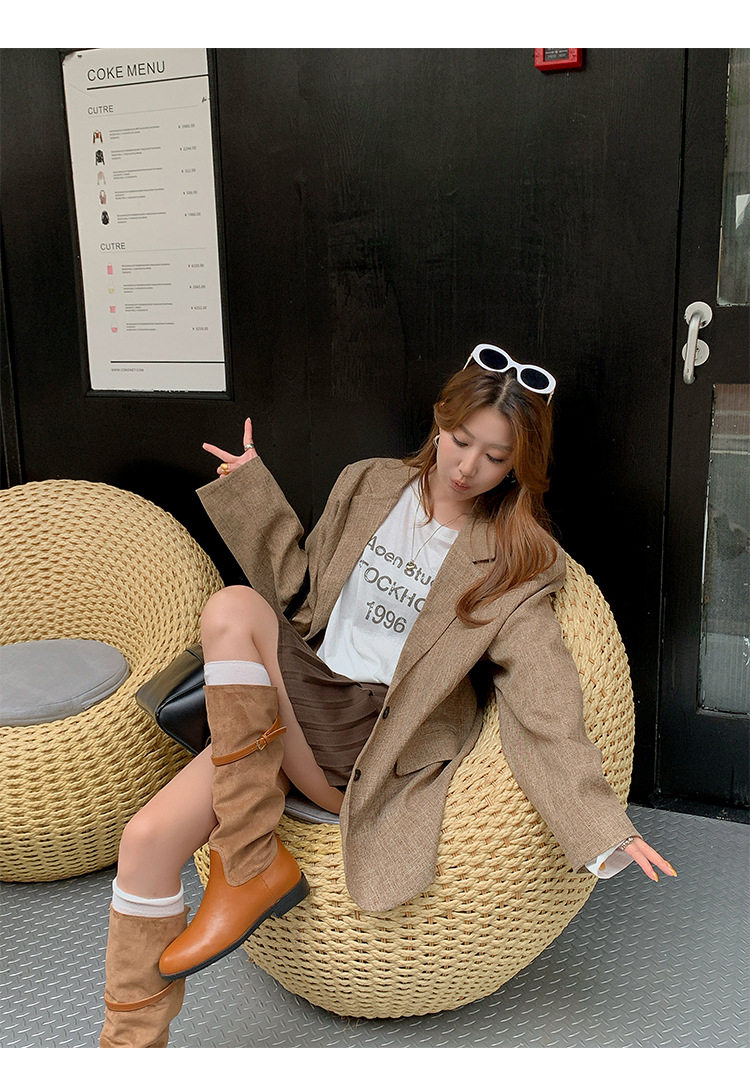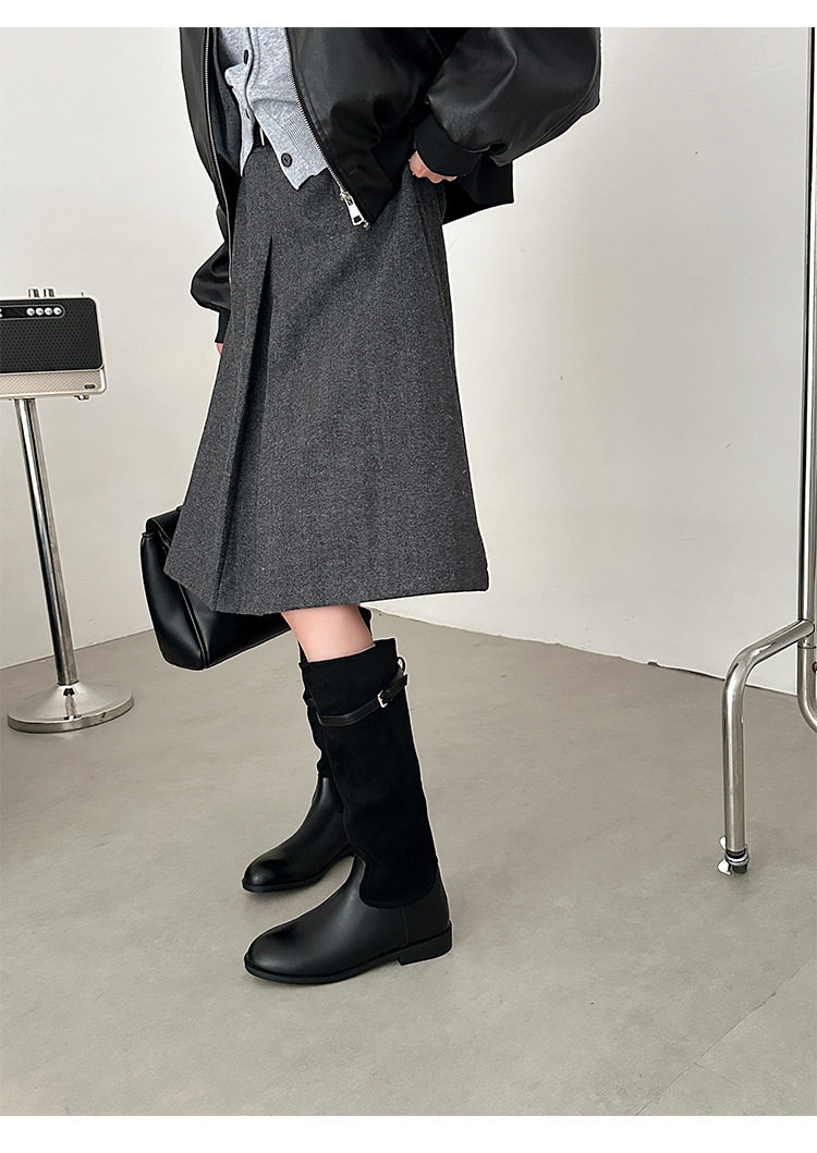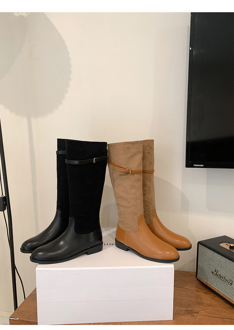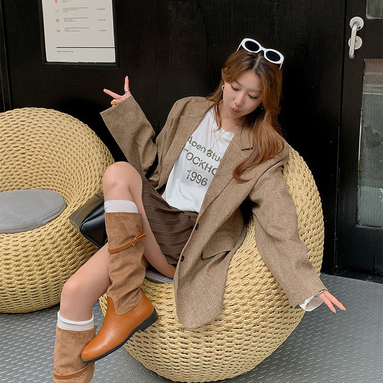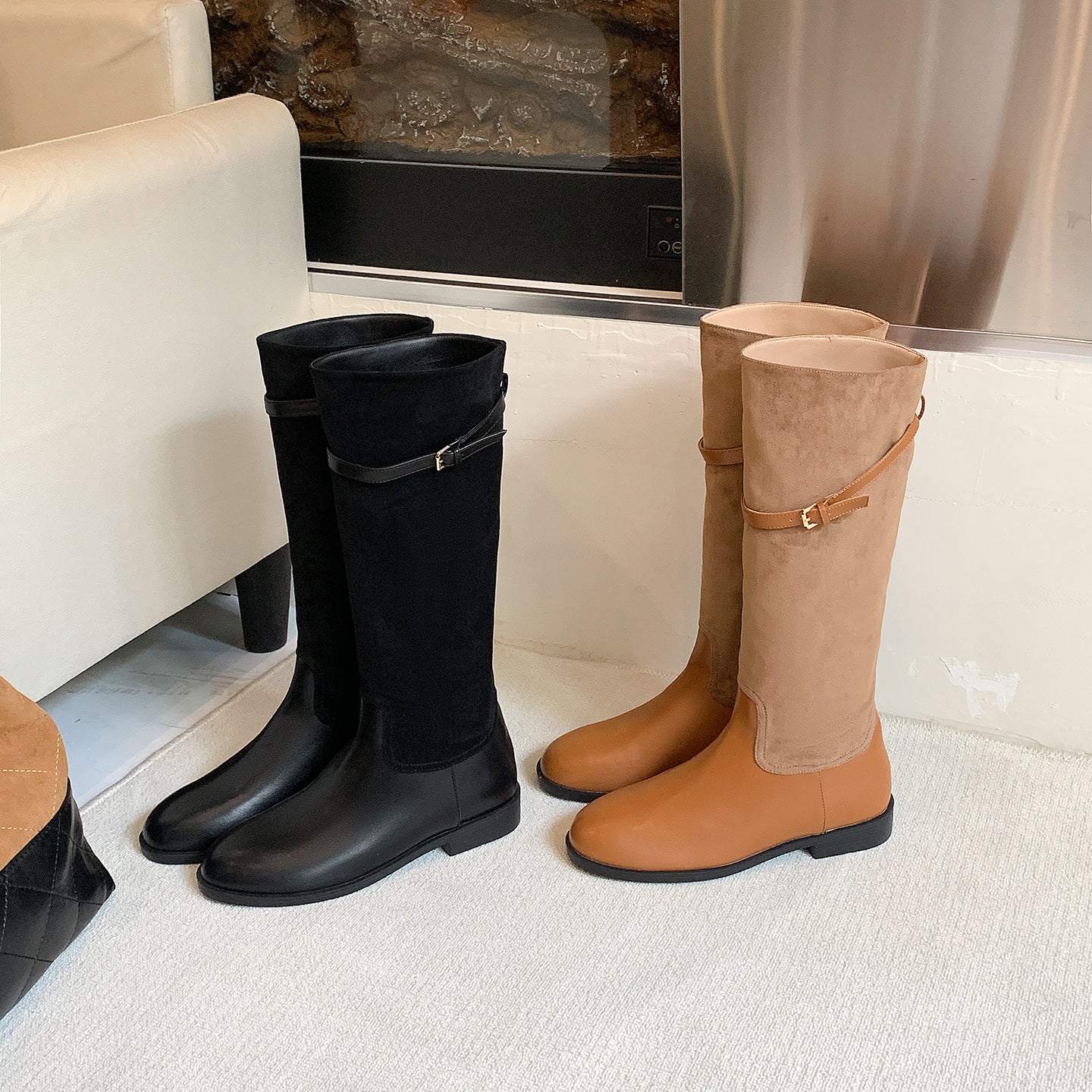 【シューズ】🍂キャラメルブラウン ベルト付きヴィンテージ風ハイカットウエスタンブーツ💫スエードラウンドトゥ レディース