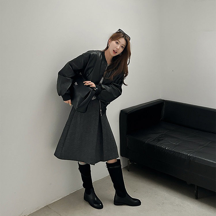 【セットアップ】【単品注文】ファー襟 スウェットアウター + カーブ ワイドパンツ 2点上下セット 【JZシリーズ】