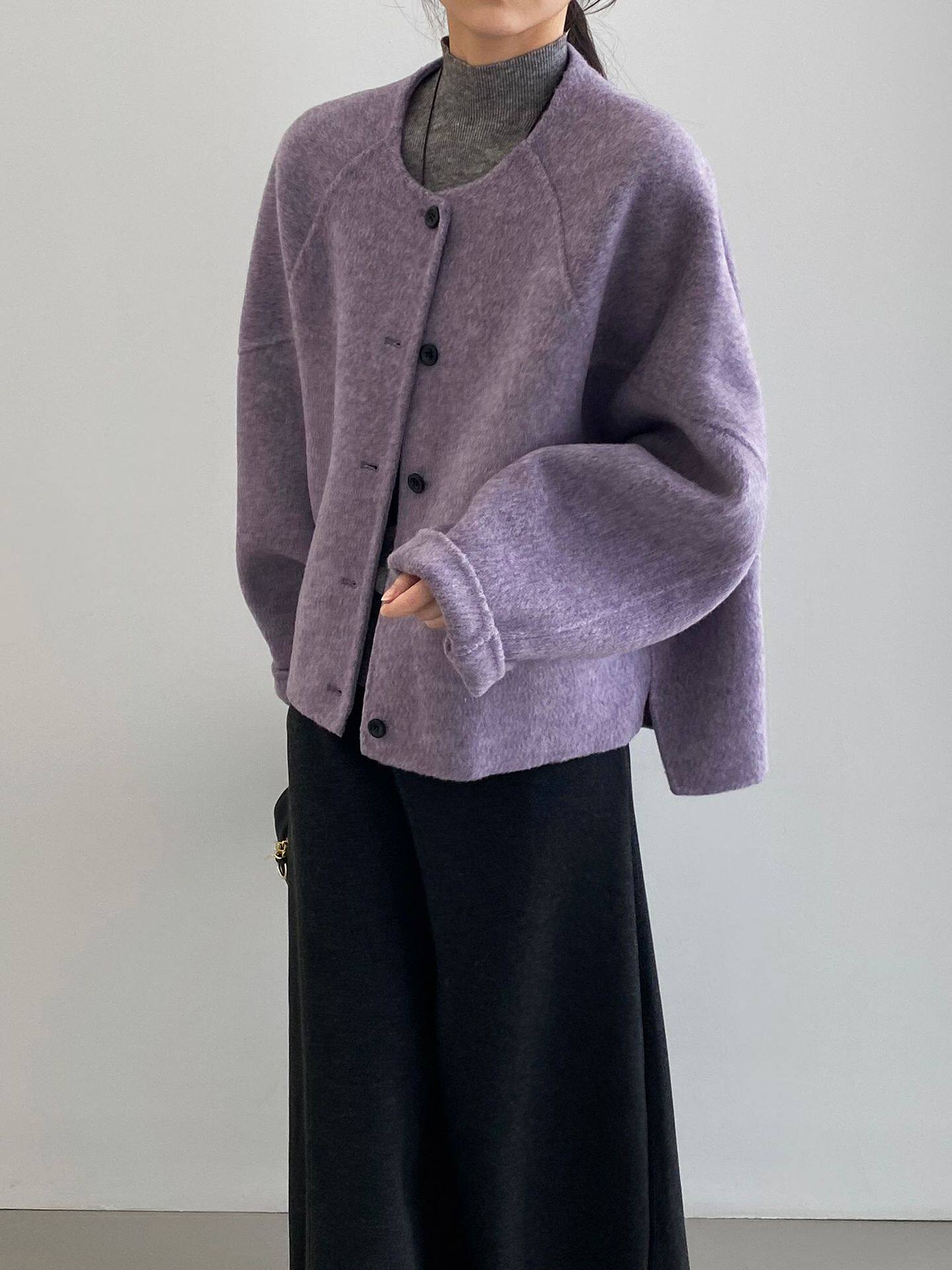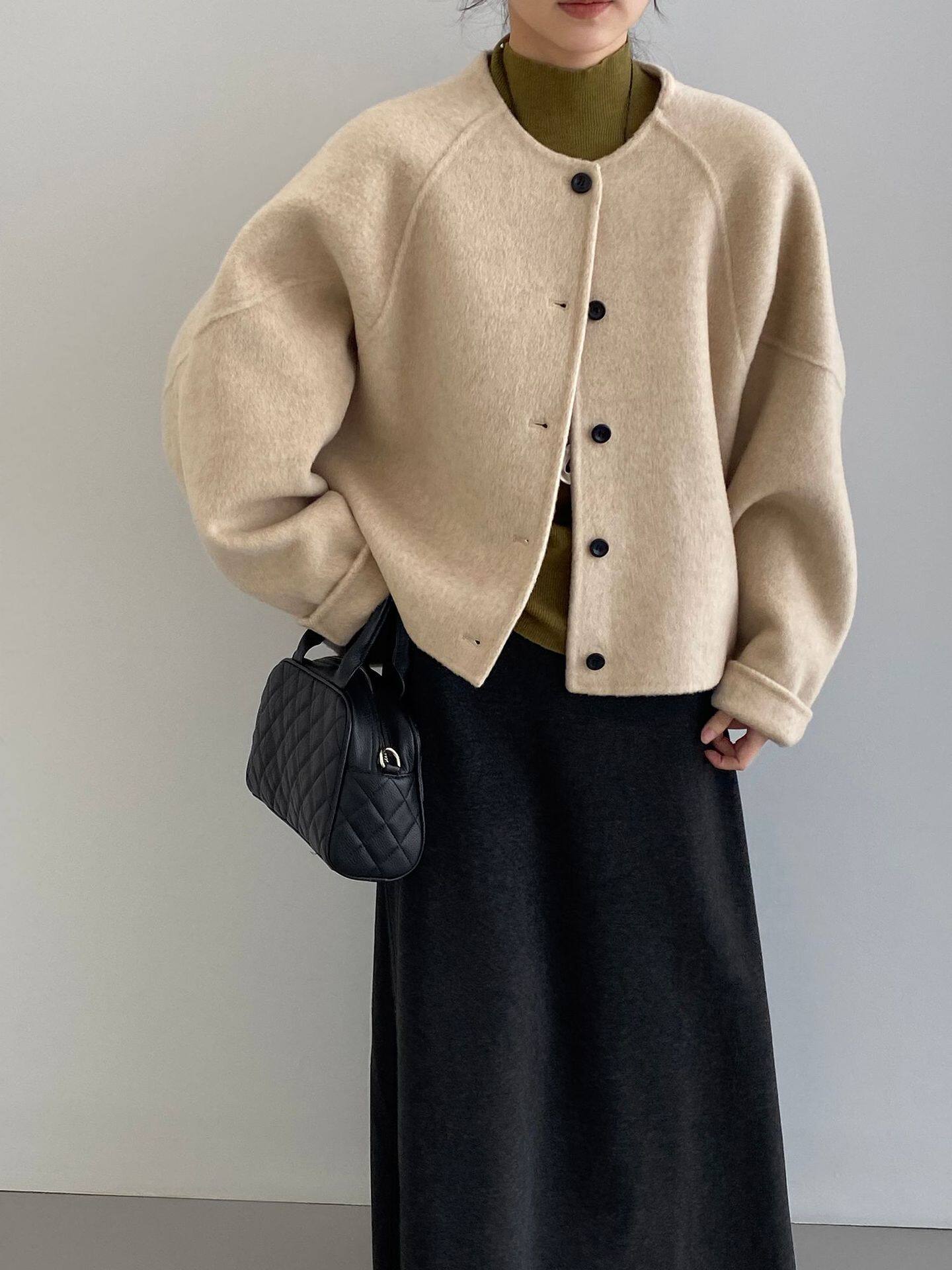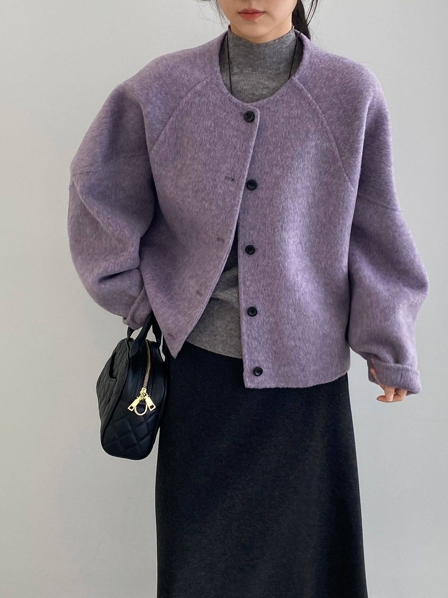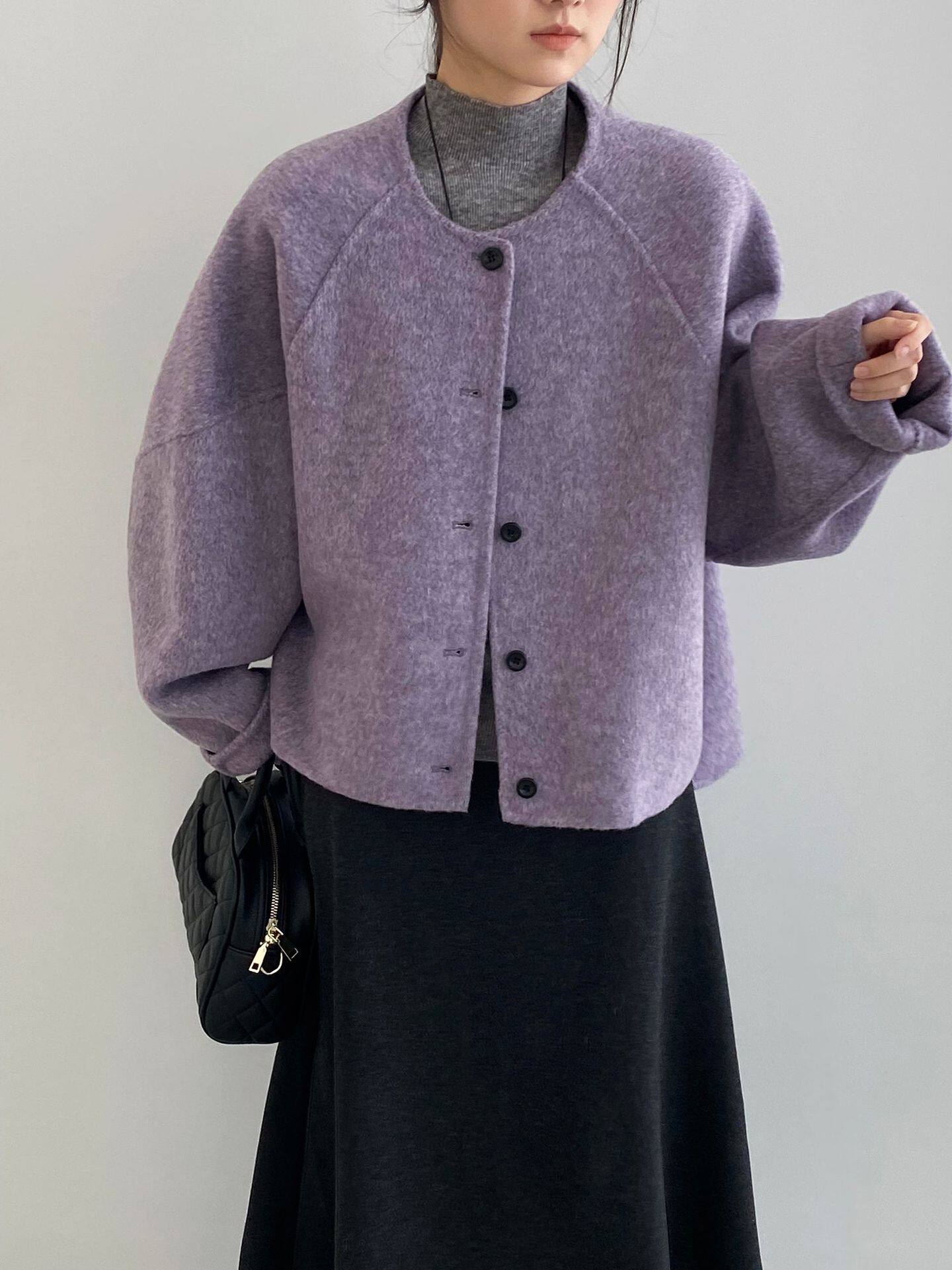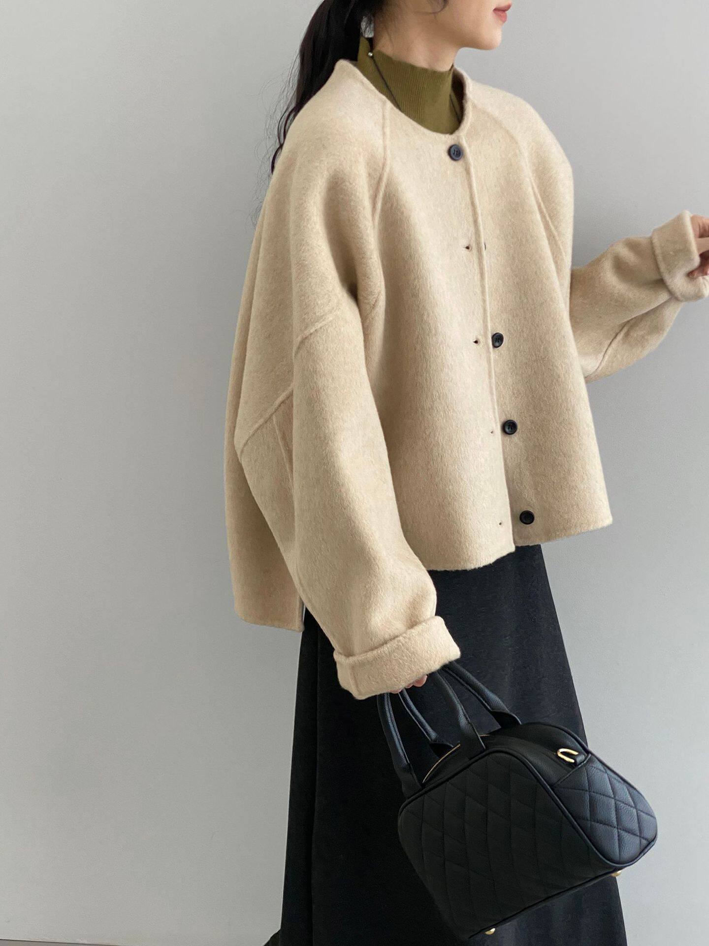 【アウター】春 秋 冬 ウール アルパカ ショート丈 ゆったり ラウンドネック ジャケット 【JZシリーズ】