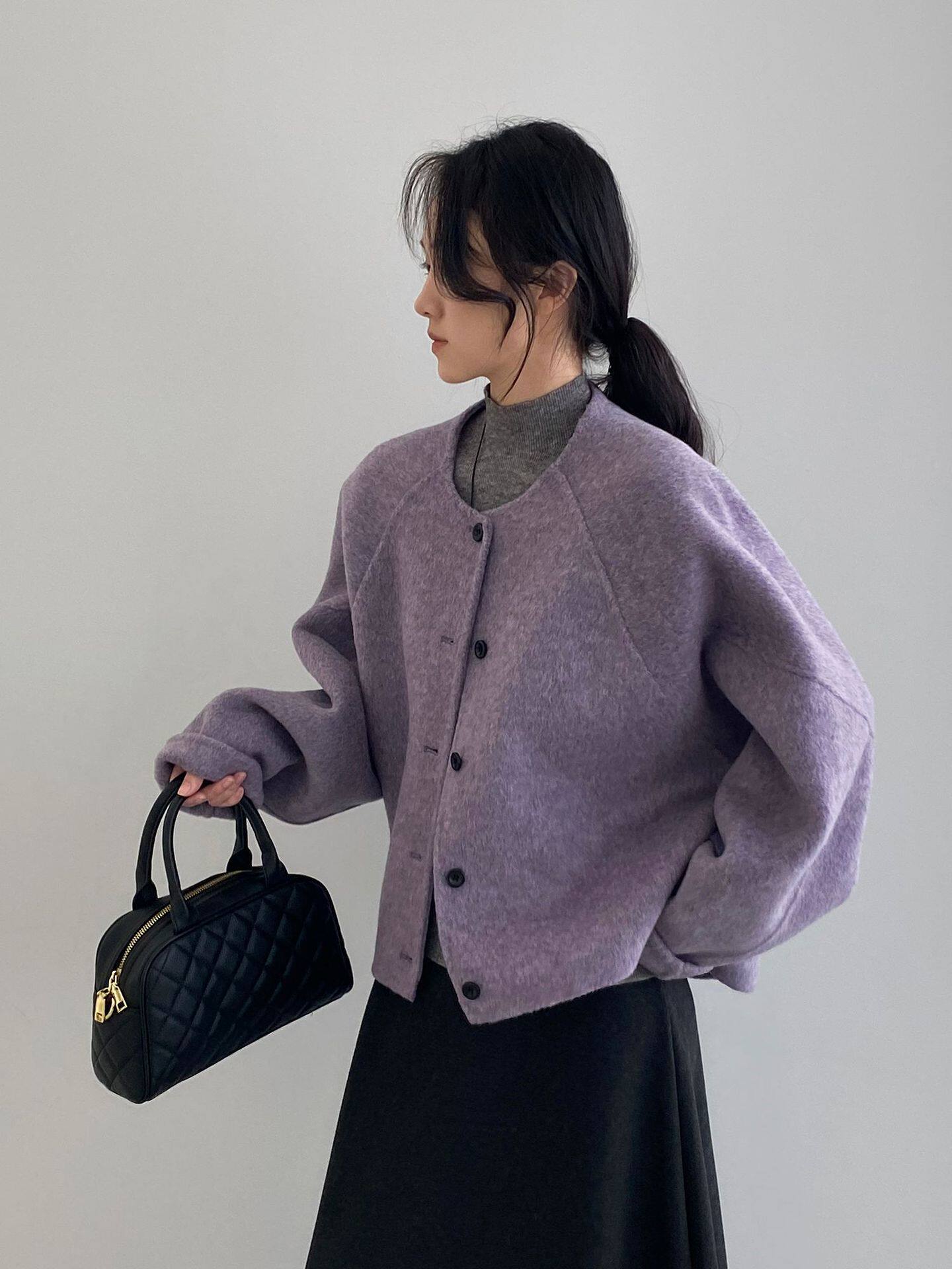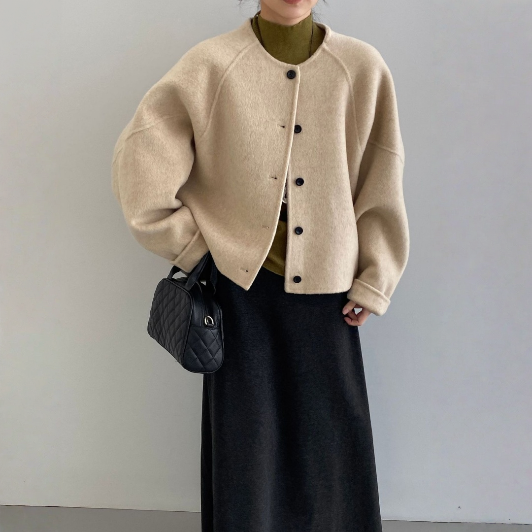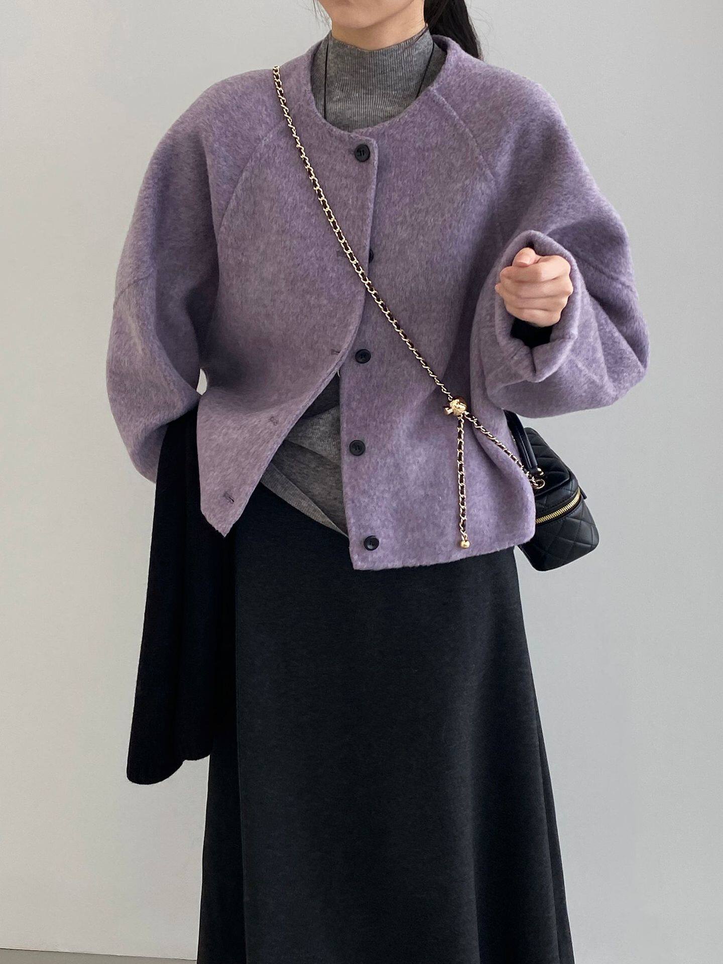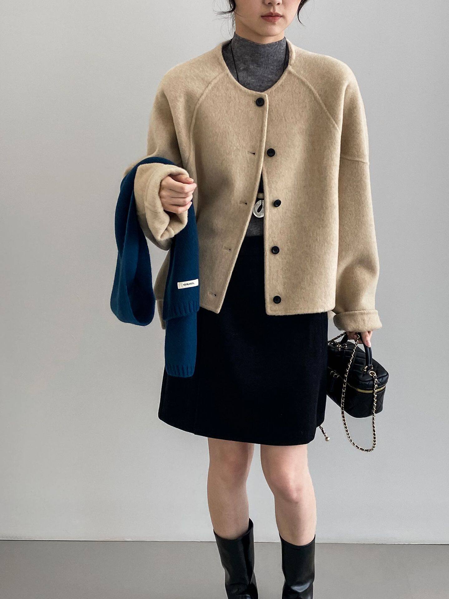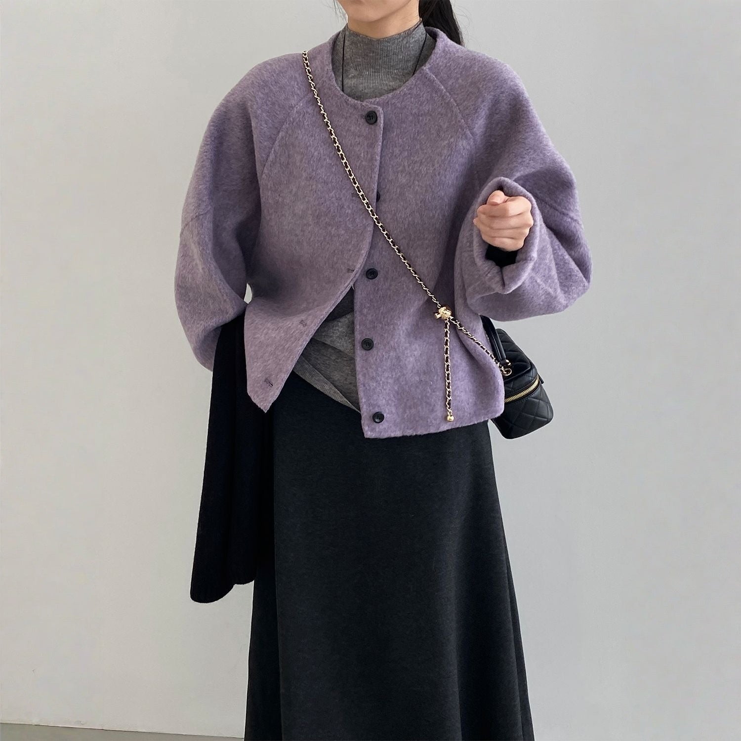 【アウター】春 秋 冬 ウール アルパカ ショート丈 ゆったり ラウンドネック ジャケット 【JZシリーズ】