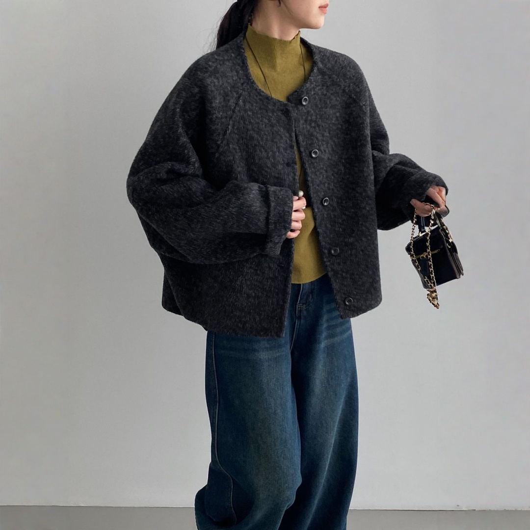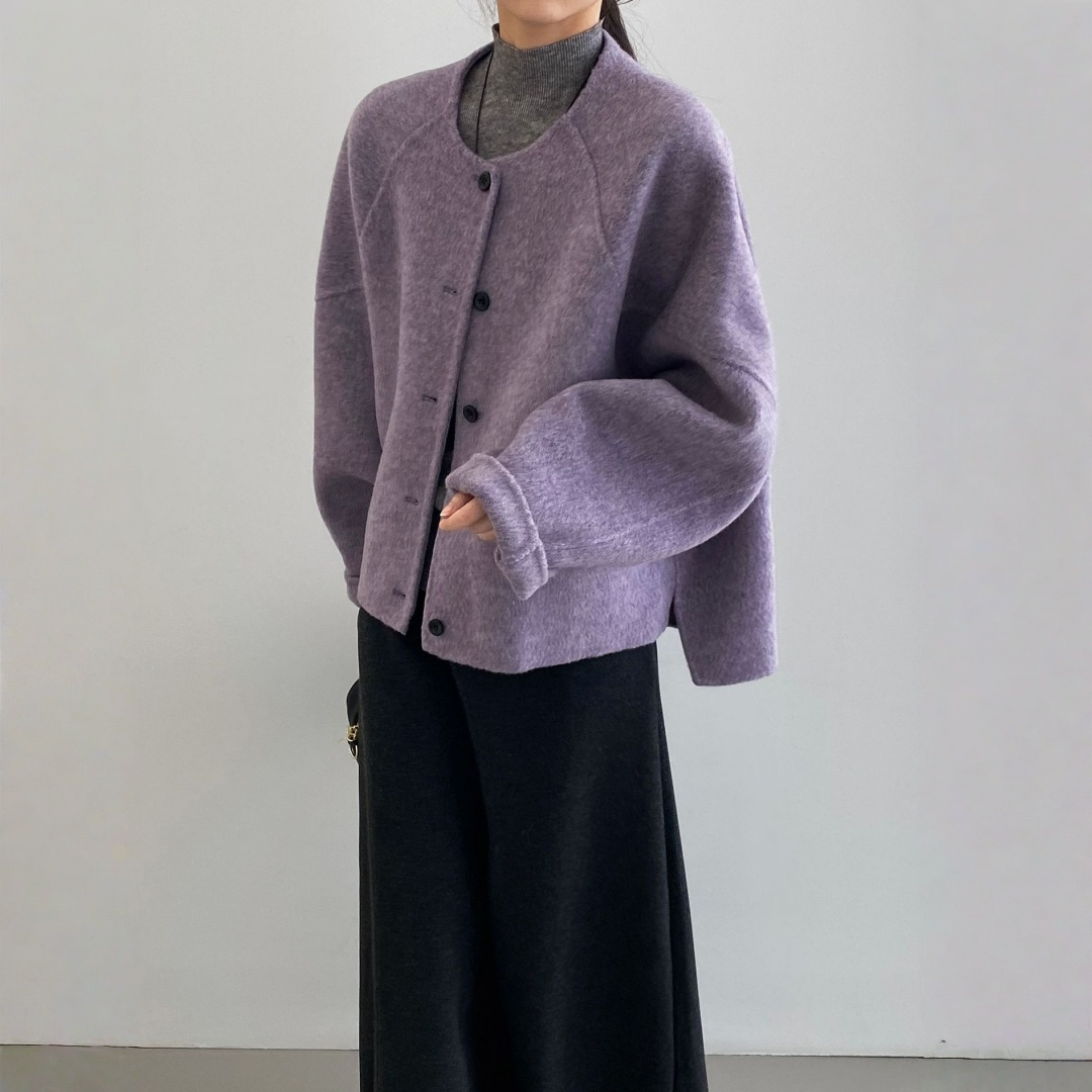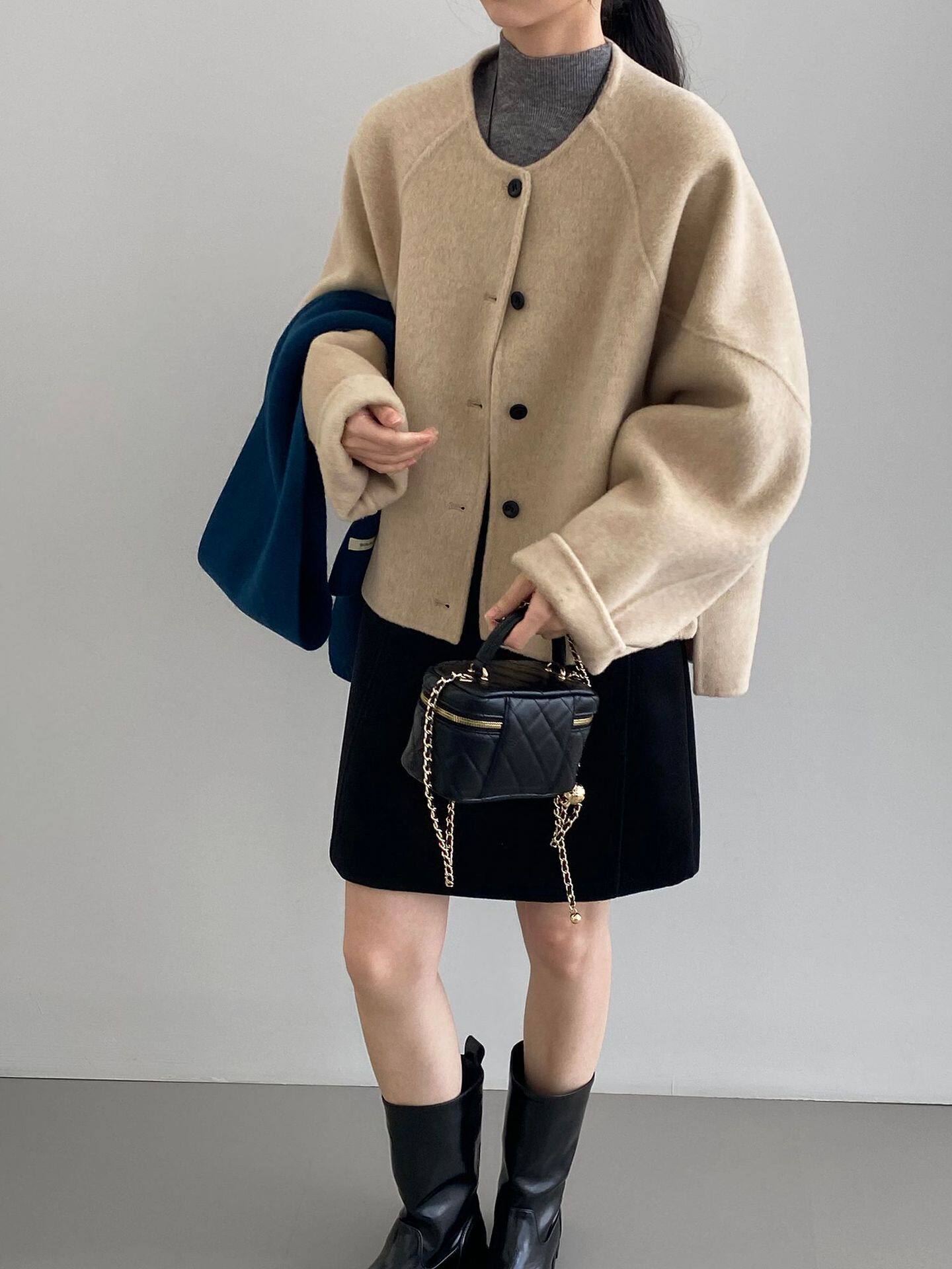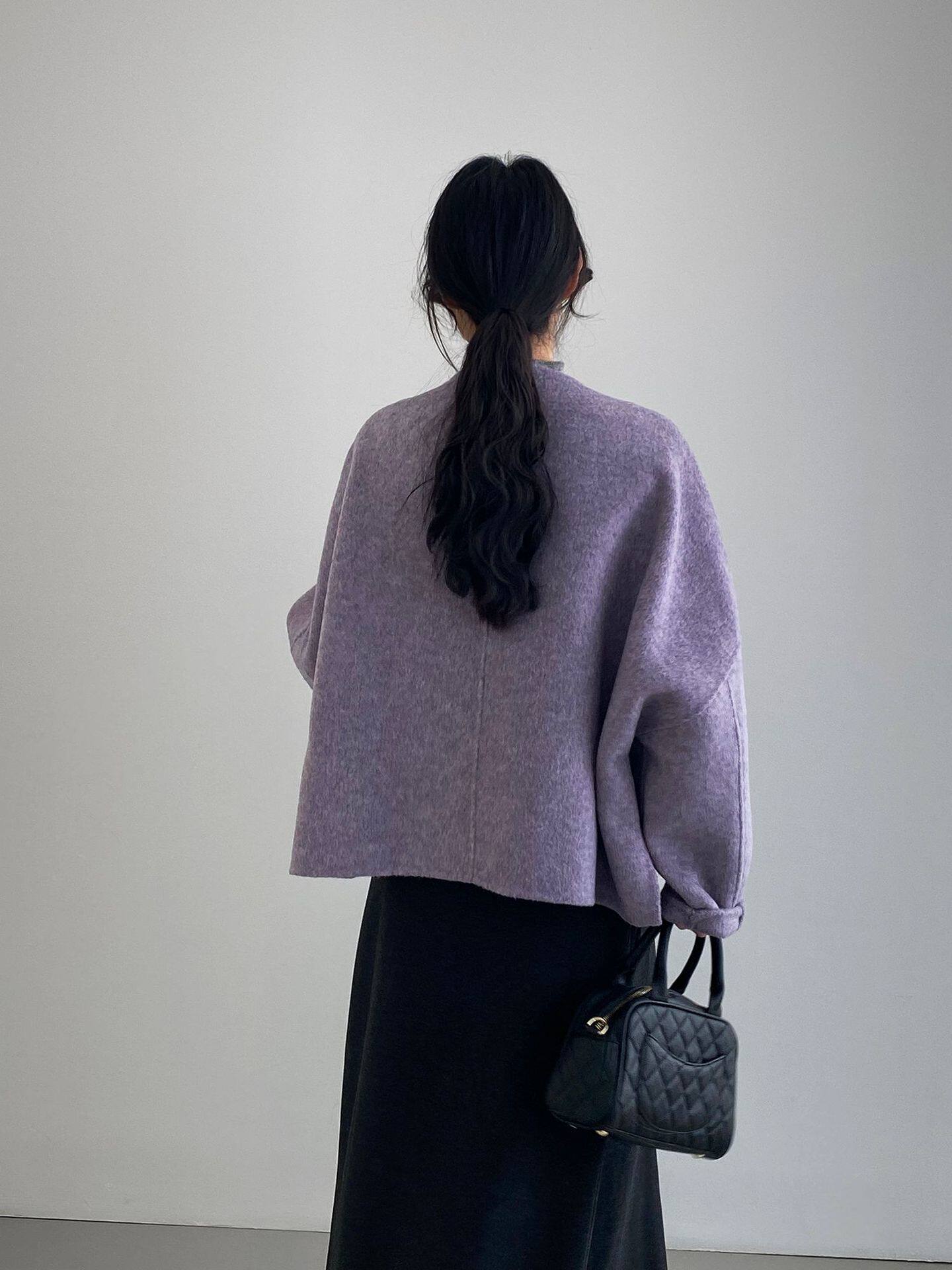 【アウター】春 秋 冬 ウール アルパカ ショート丈 ゆったり ラウンドネック ジャケット 【JZシリーズ】