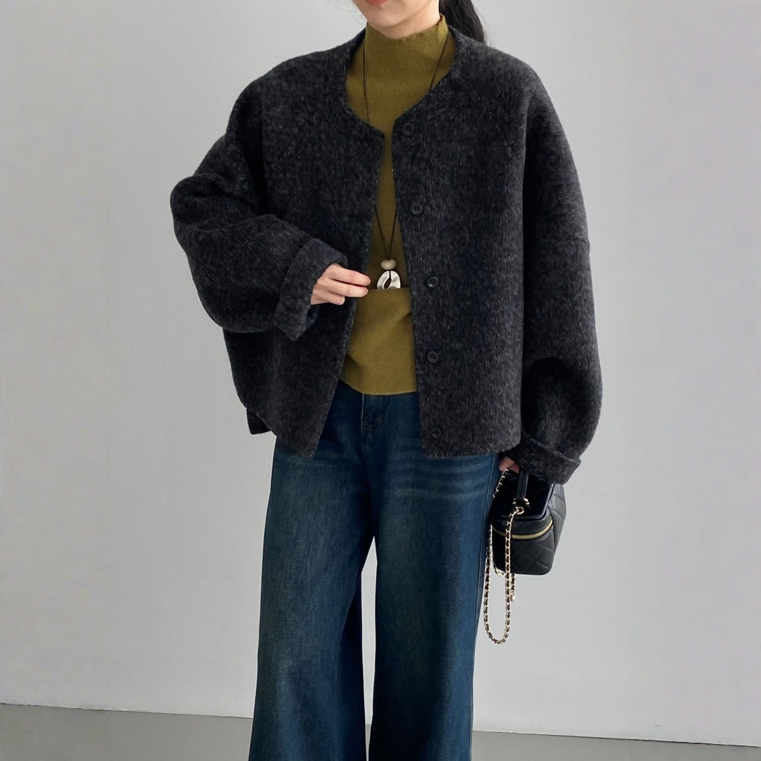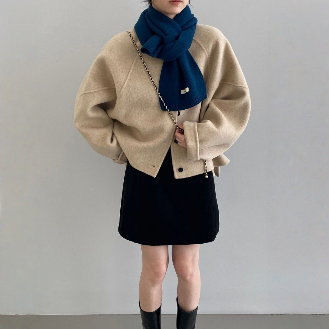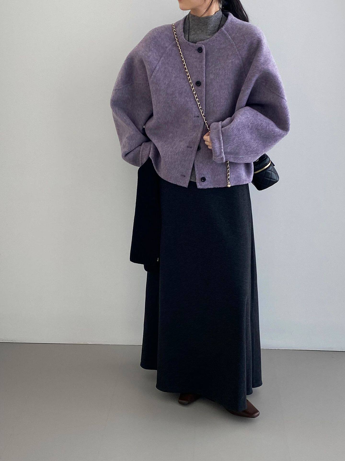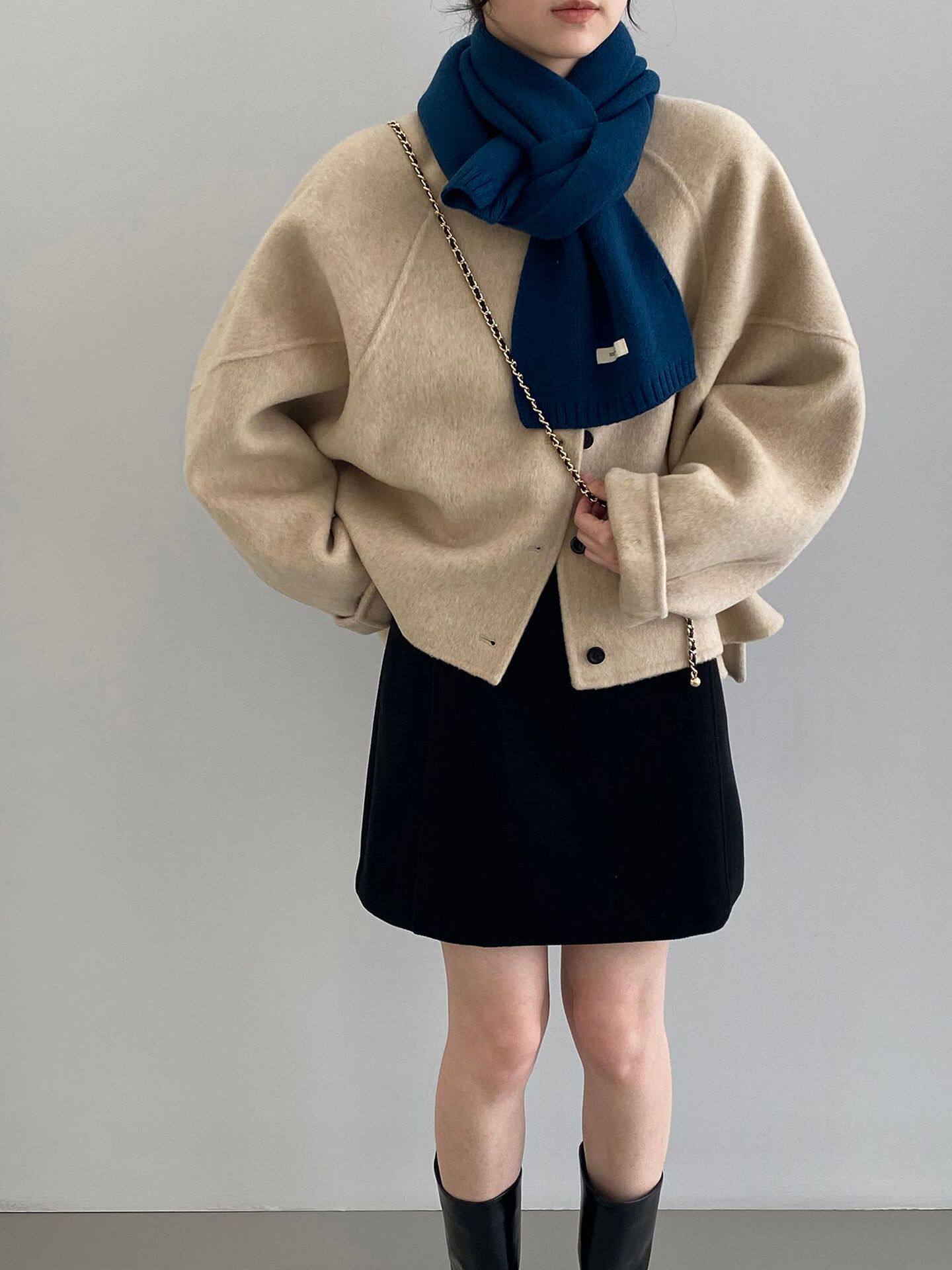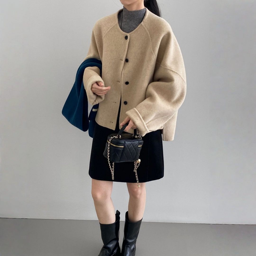 【アウター】春 秋 冬 ウール アルパカ ショート丈 ゆったり ラウンドネック ジャケット 【JZシリーズ】