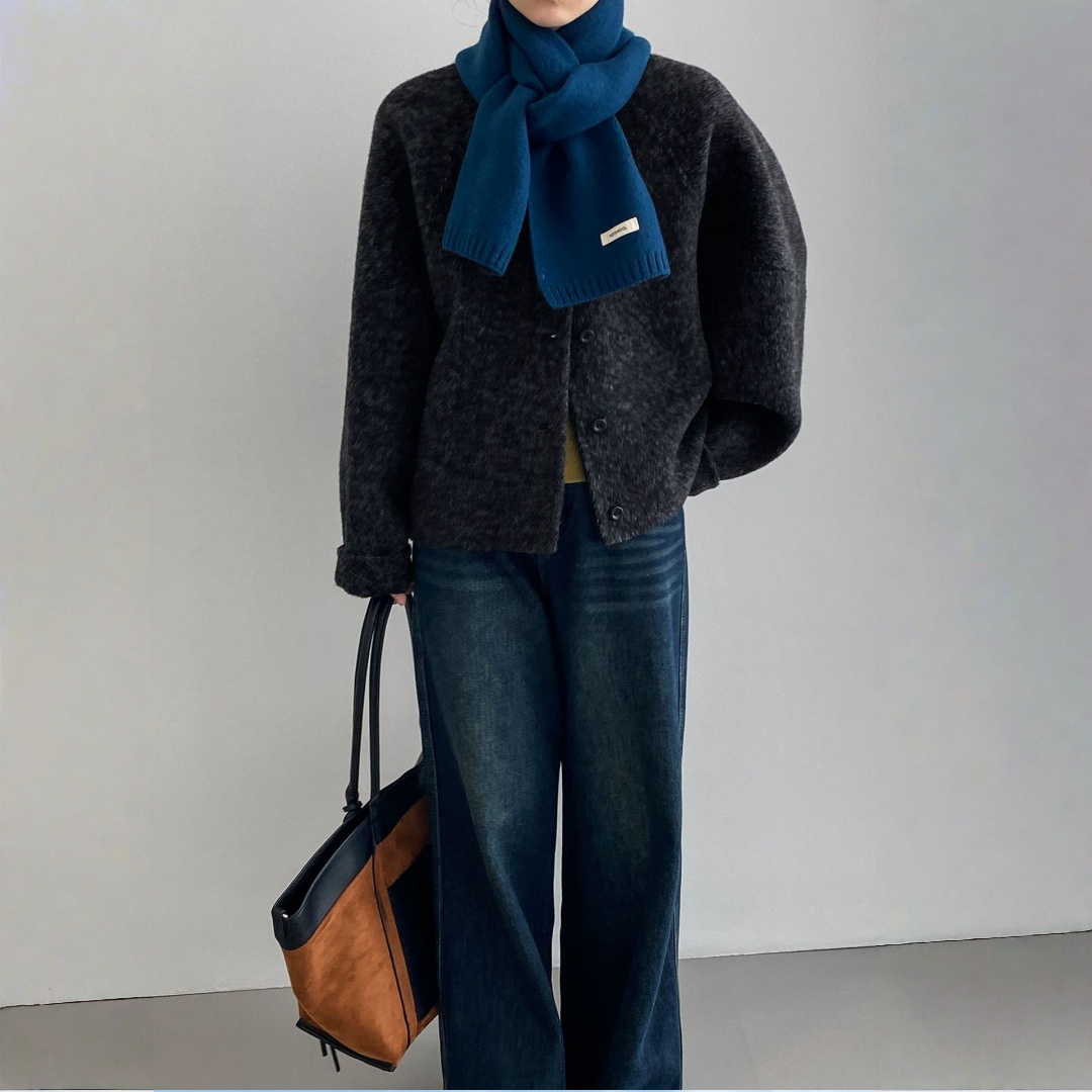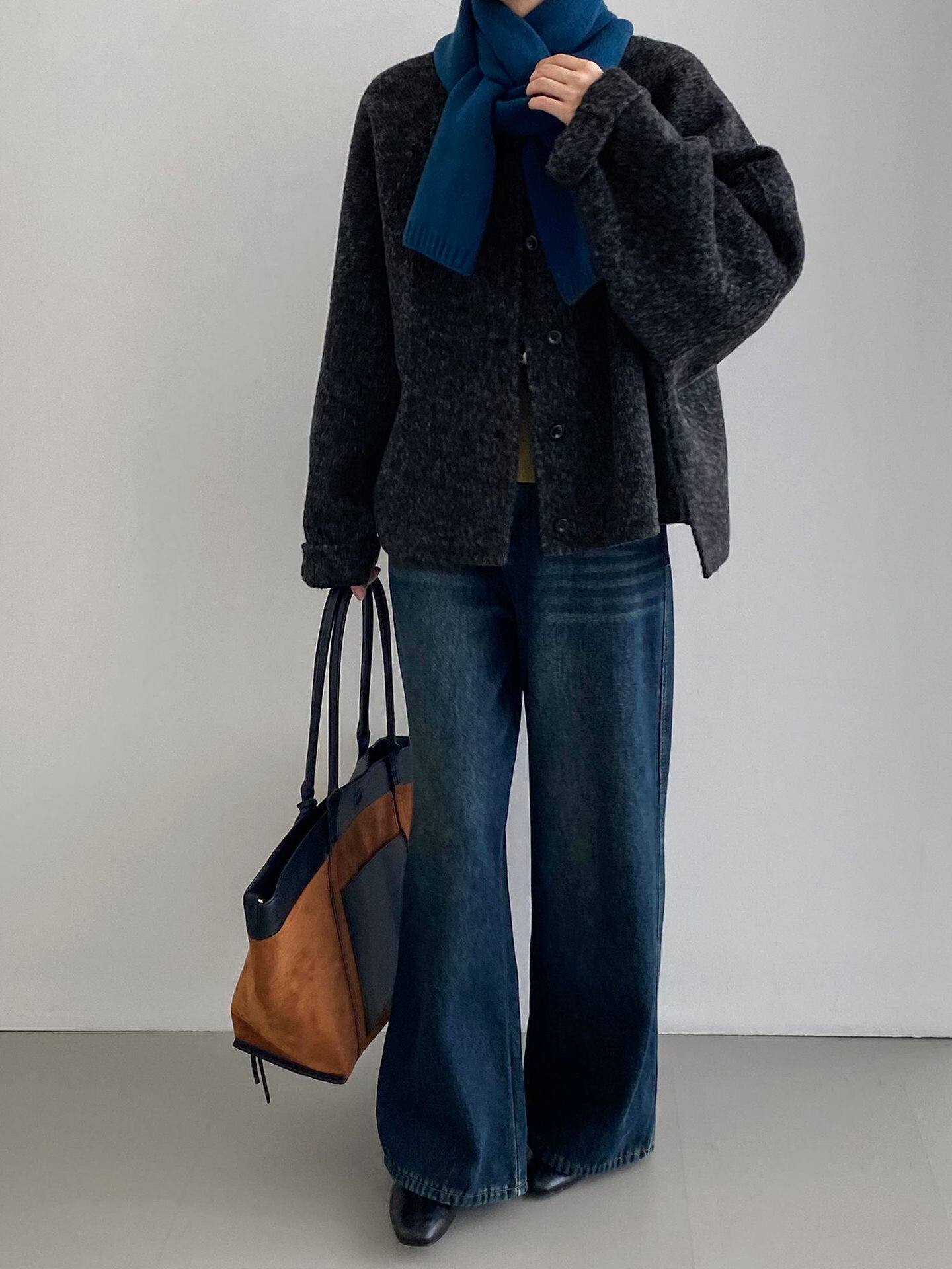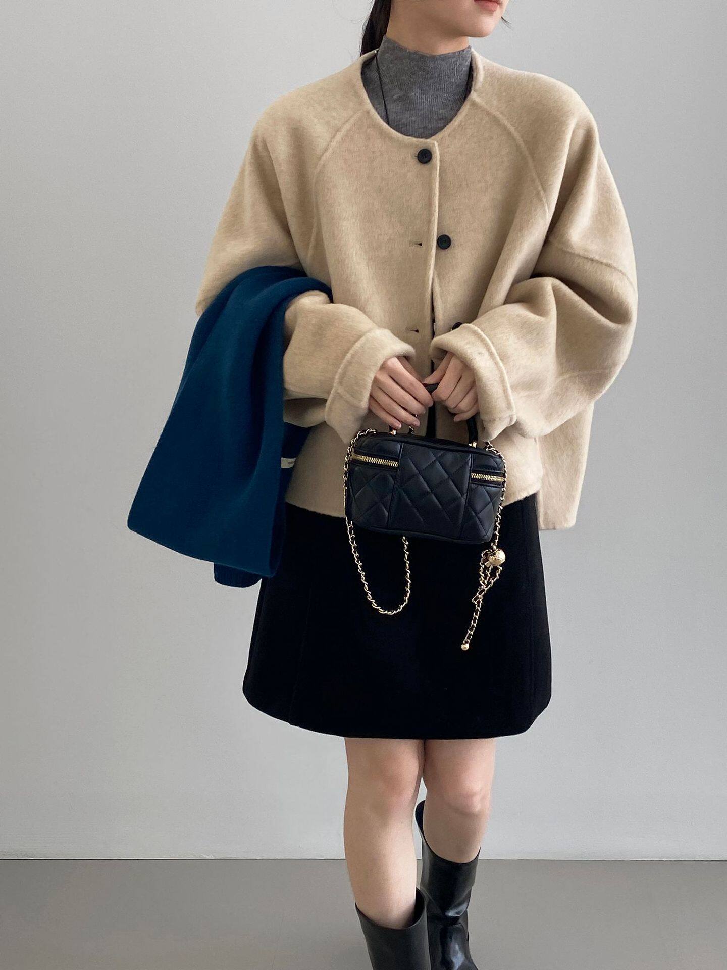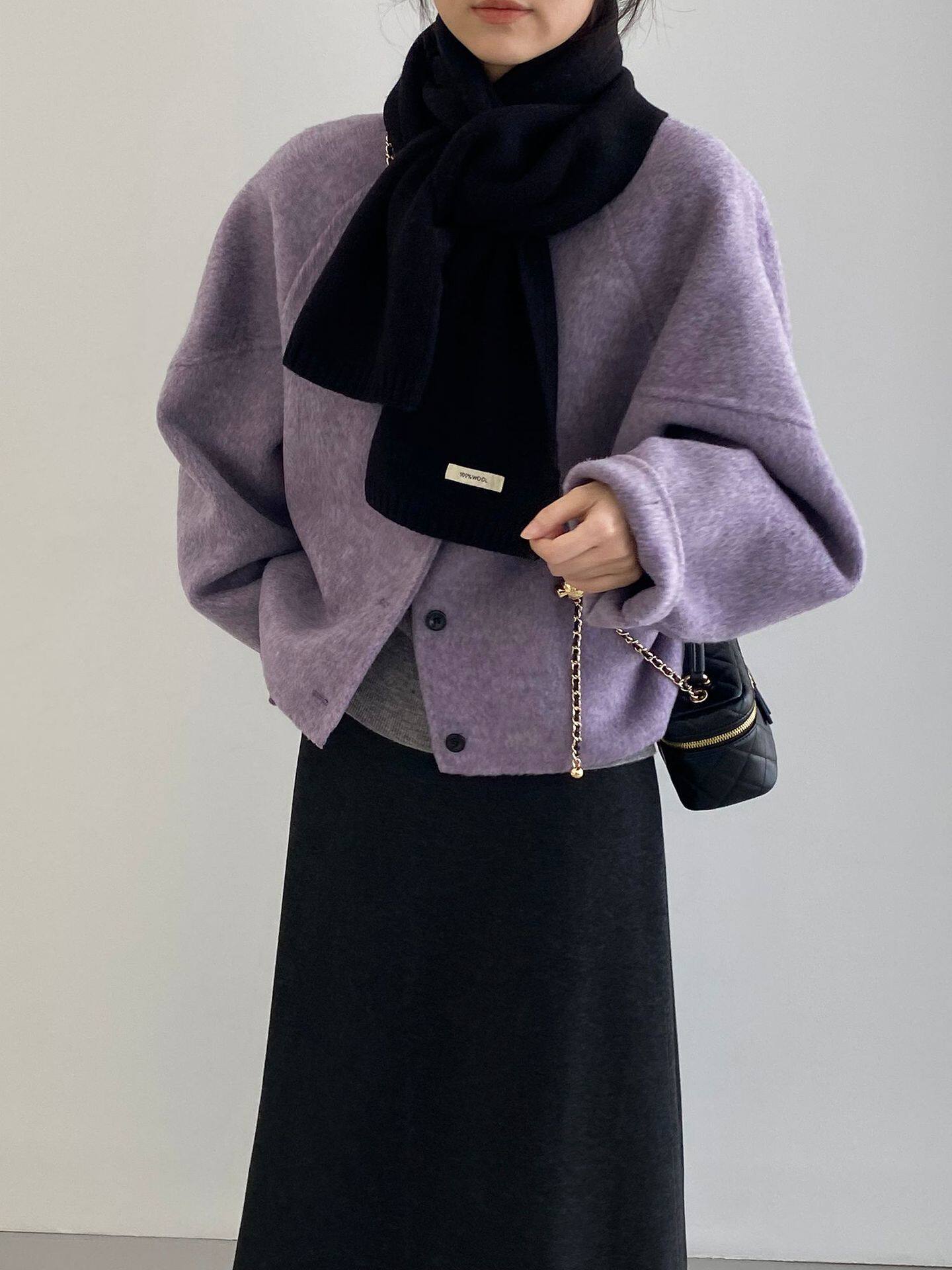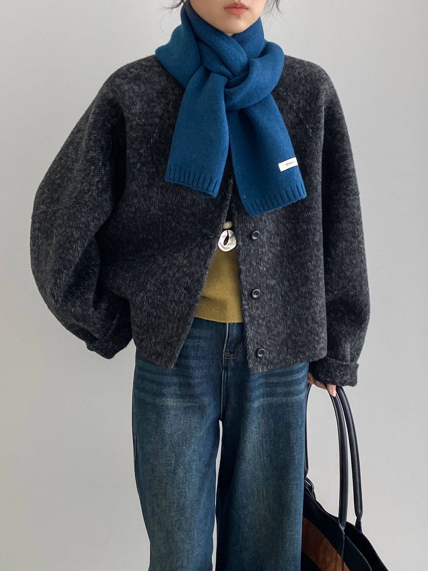 【アウター】春 秋 冬 ウール アルパカ ショート丈 ゆったり ラウンドネック ジャケット 【JZシリーズ】