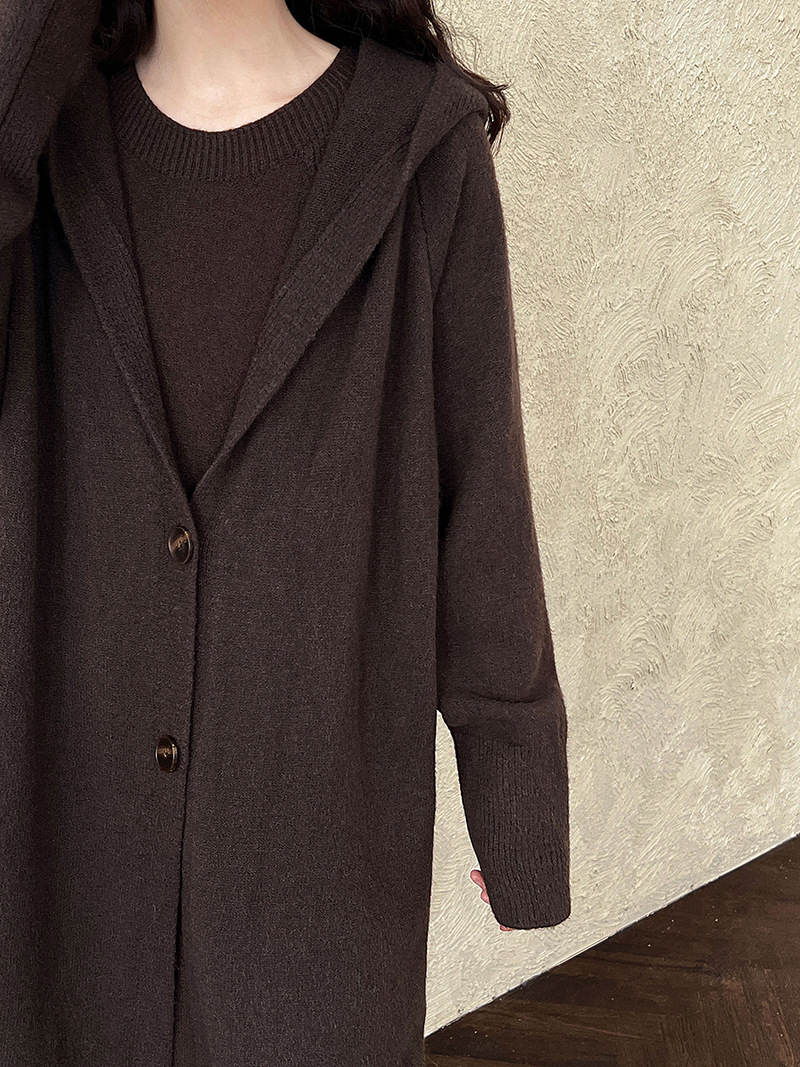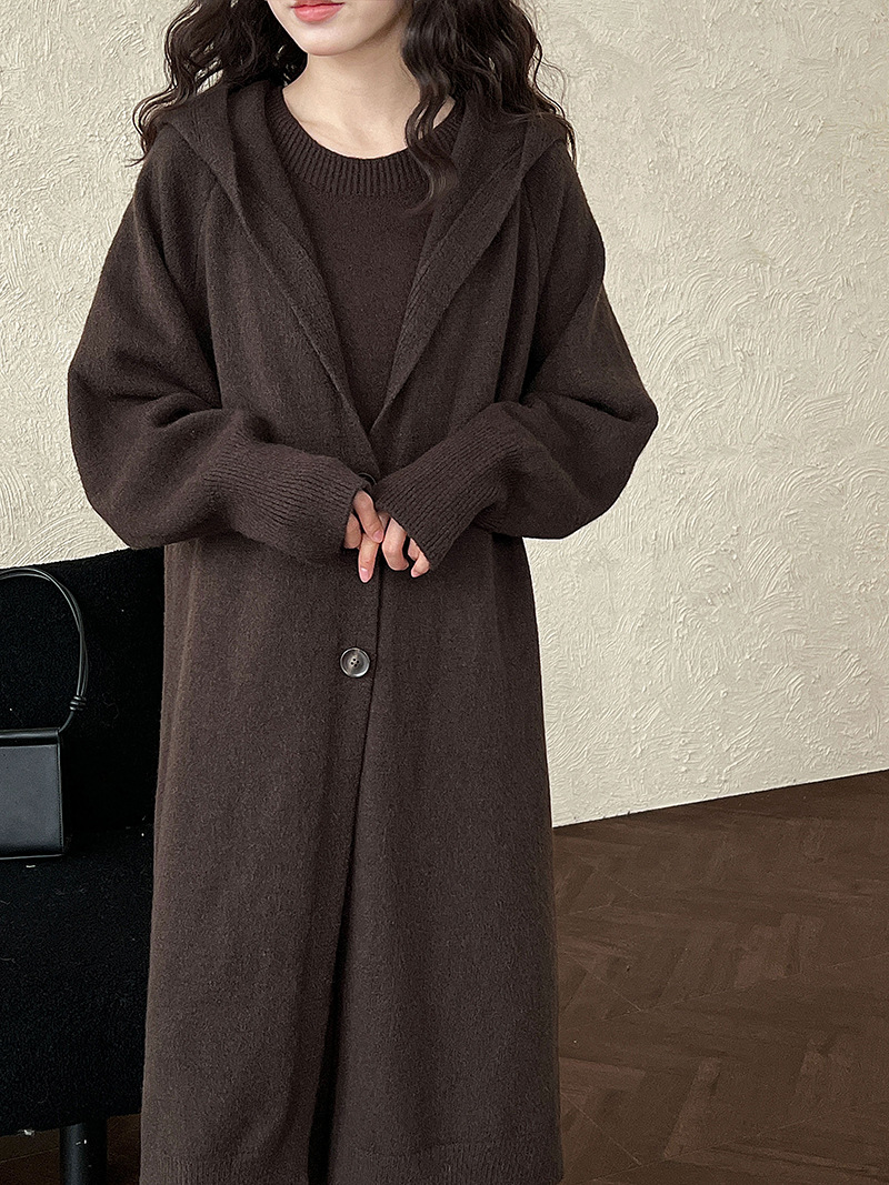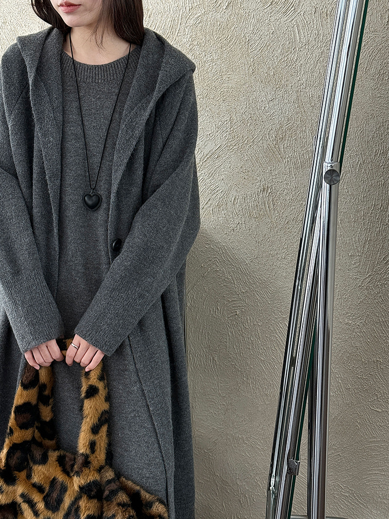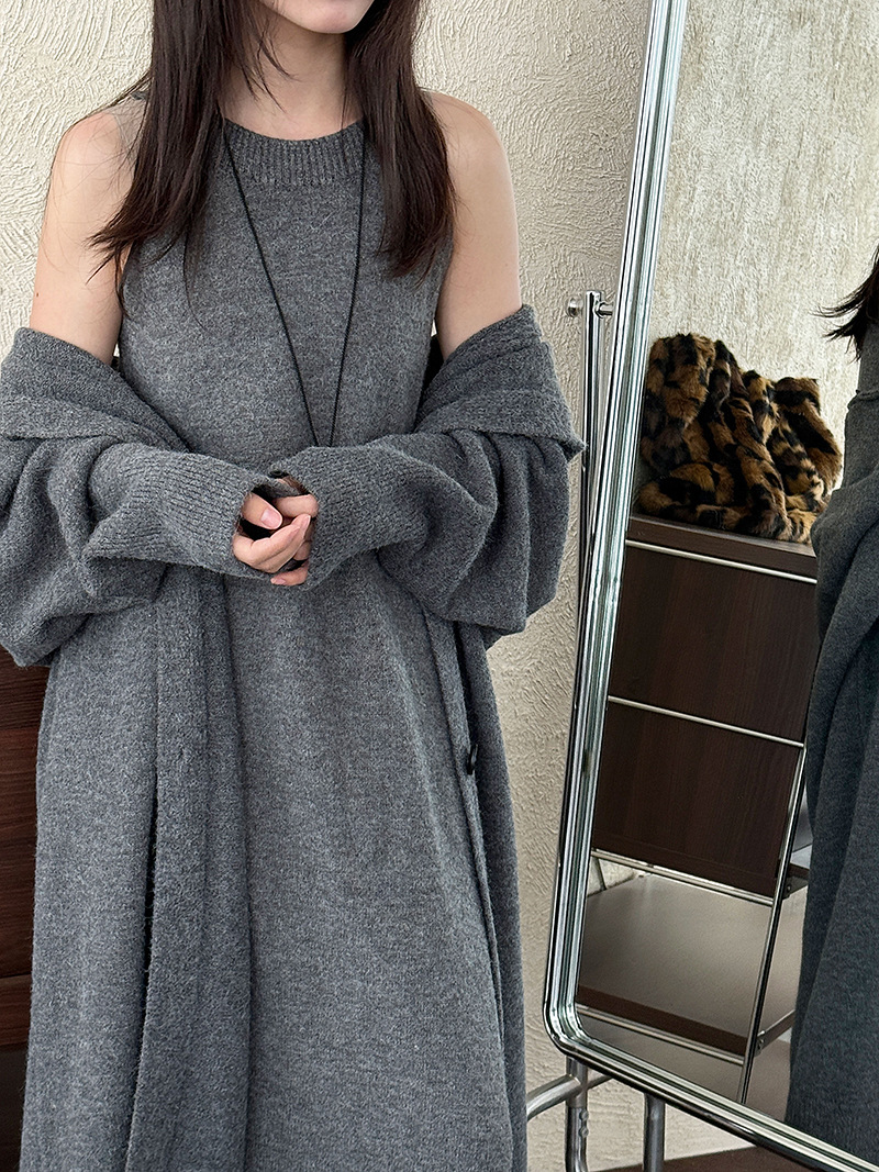 【セットアップ】【単品注文】ゆったり風 ロング丈 春 秋 冬 フード付き カーディガン + ノースリーブ ワンピース 2点ワンピースセット 【JZシリーズ】
