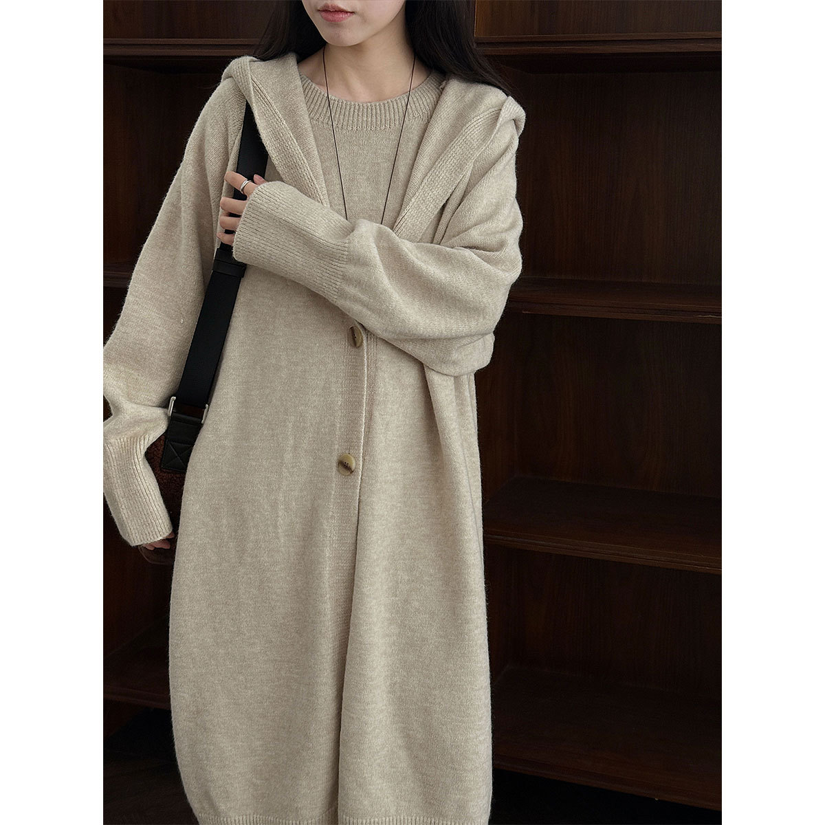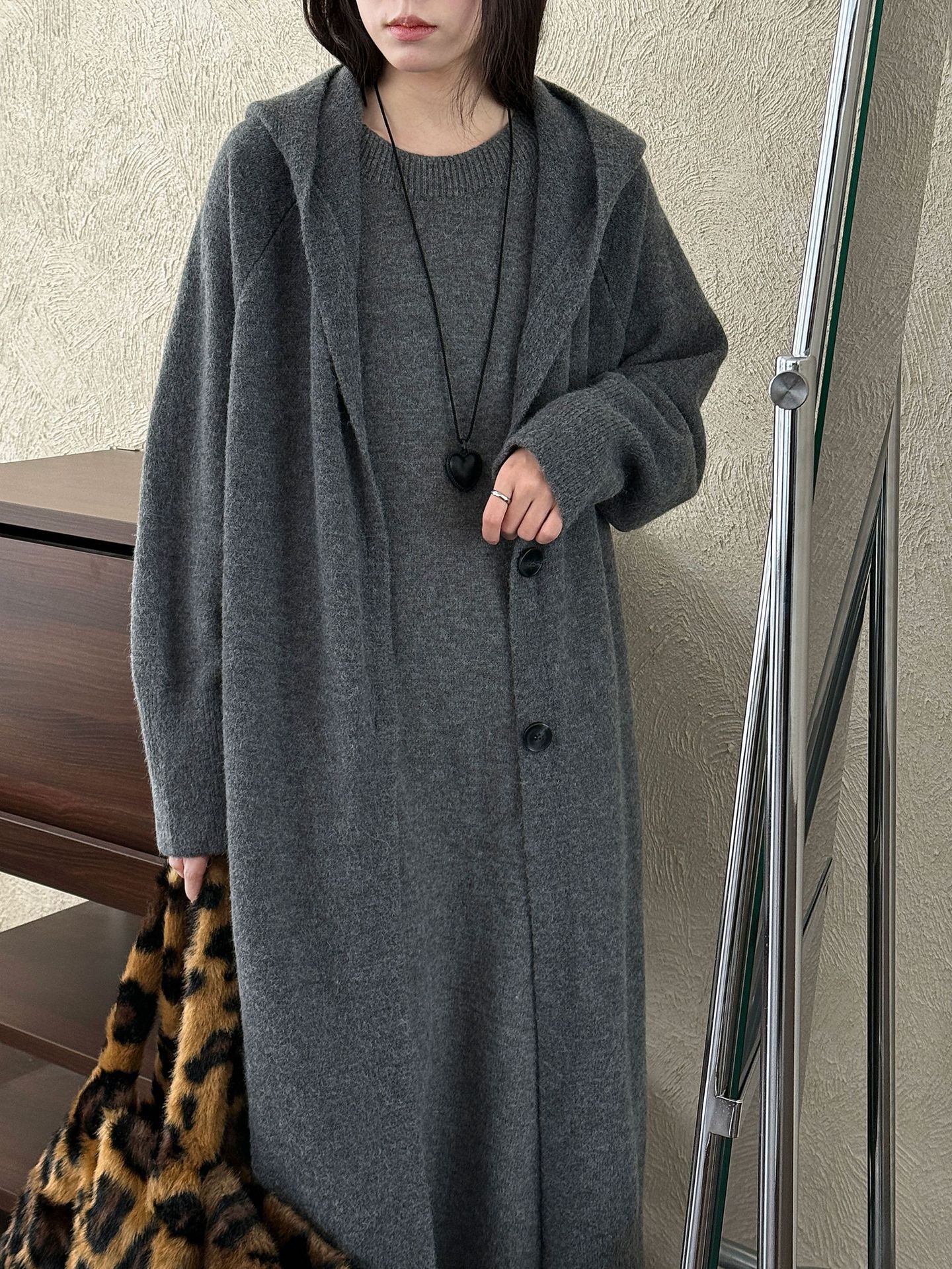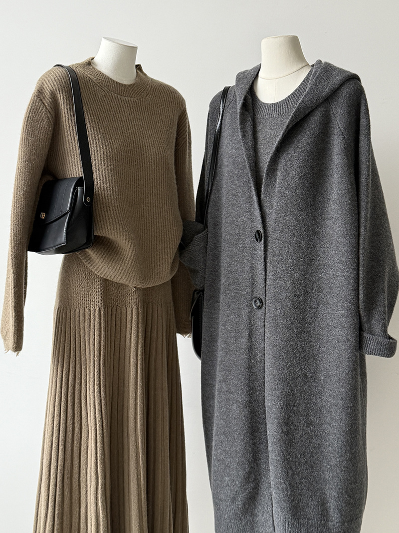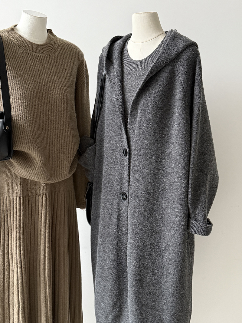 【セットアップ】【単品注文】ゆったり風 ロング丈 春 秋 冬 フード付き カーディガン + ノースリーブ ワンピース 2点ワンピースセット 【JZシリーズ】
