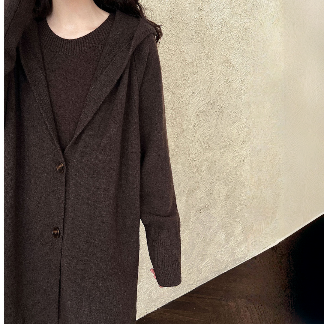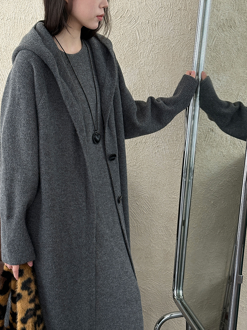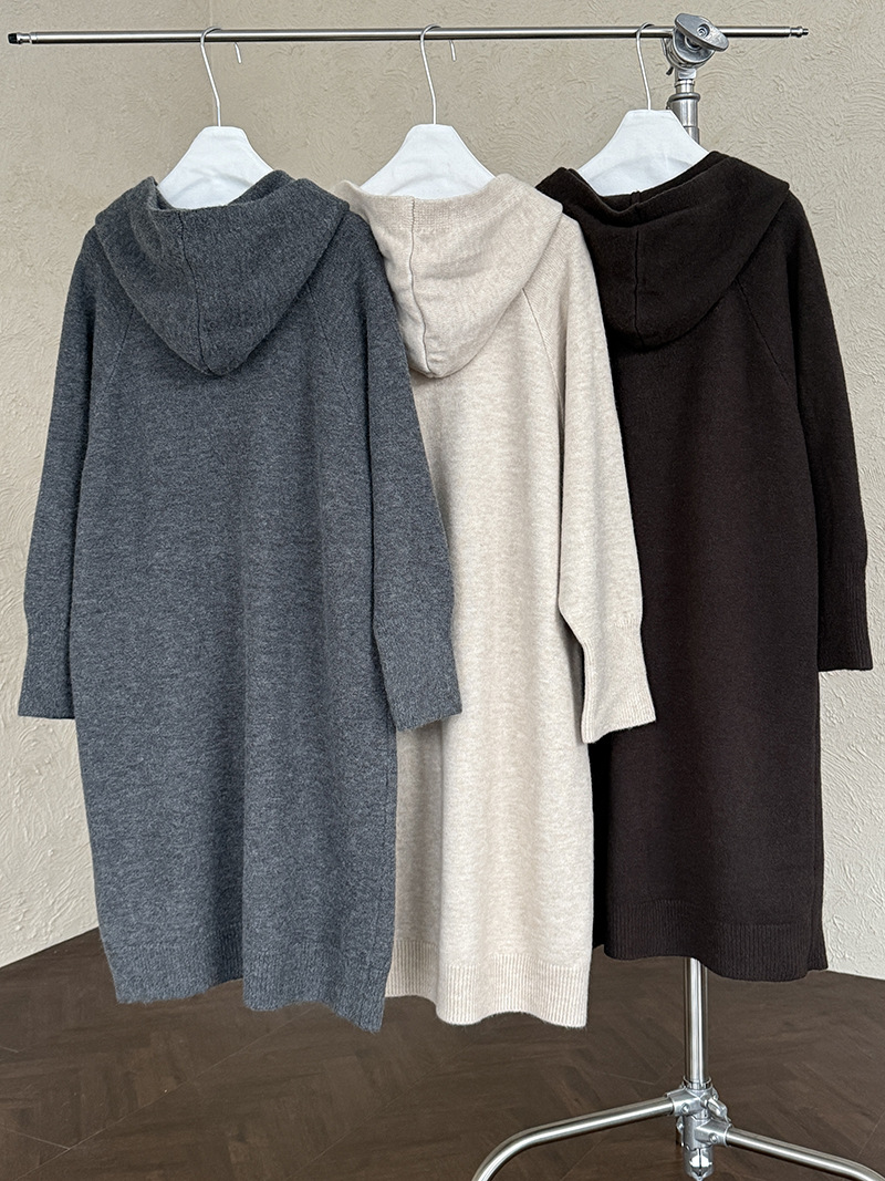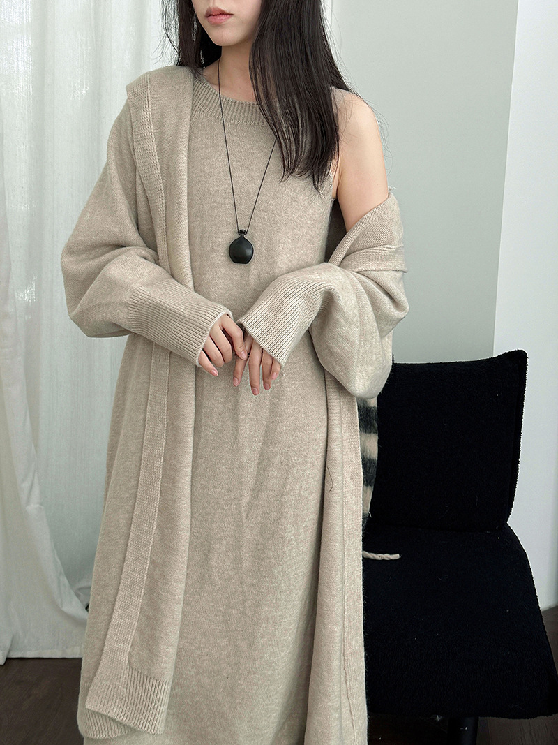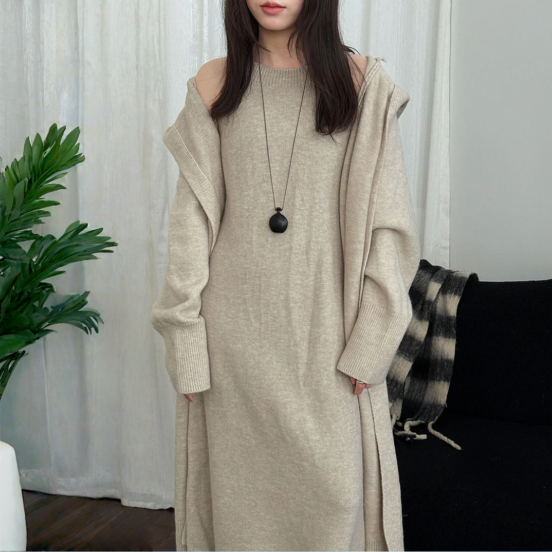 【商品名】【セットアップ】ゆったり風 ロング丈 春 秋 冬 フード付き カーディガン + ノースリーブ ワンピース 2点ワンピースセット 【JZシリーズ】