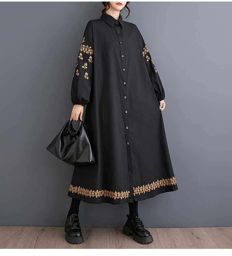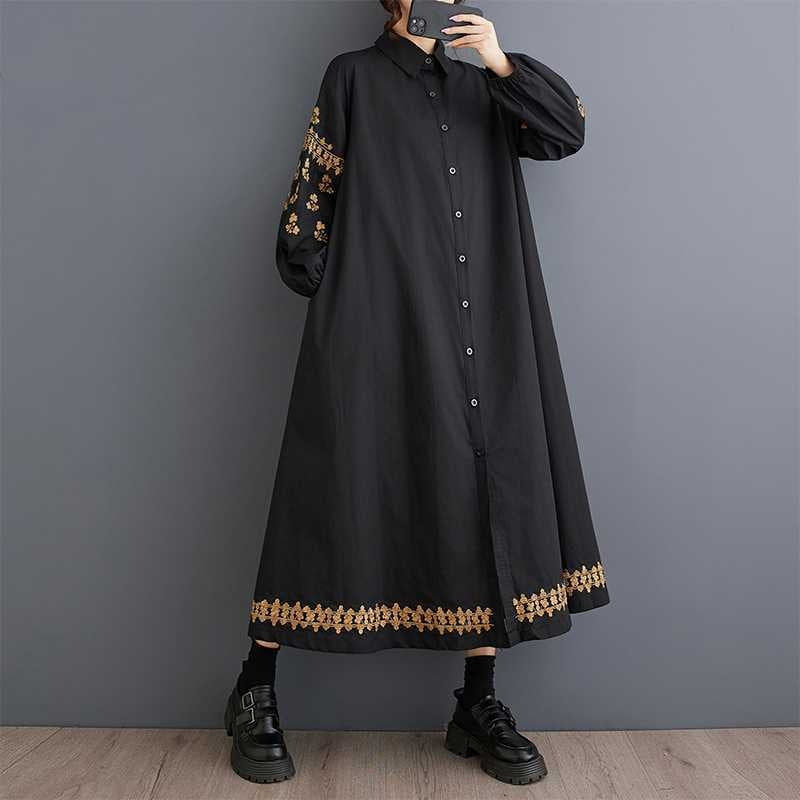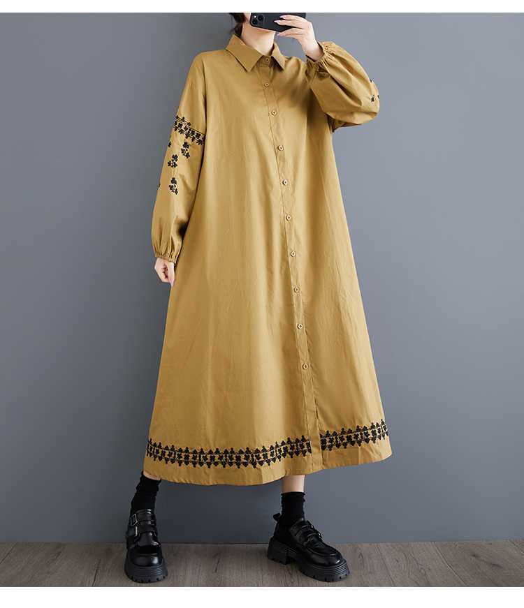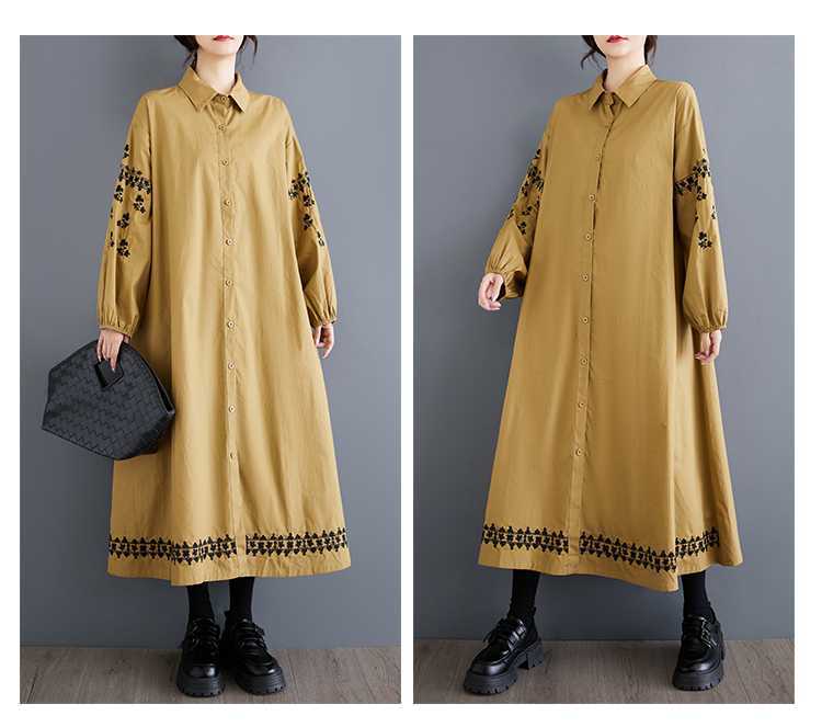 【ワンピース】春 秋 冬 刺繍 スイート 切り替え シャツ 長袖 ワンピース 【SHシリーズ】