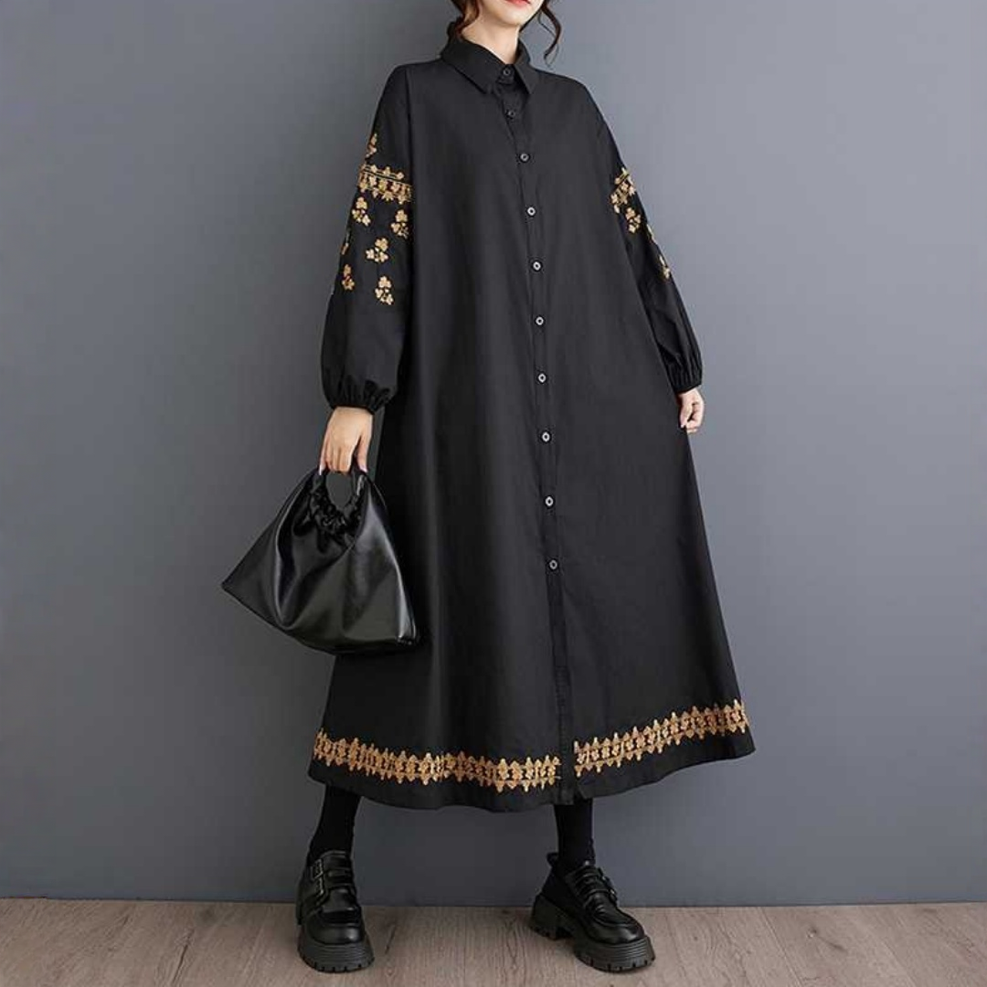 【商品名】【ワンピース】春 秋 冬 刺繍 スイート 切り替え シャツ 長袖 ワンピース 【SHシリーズ】