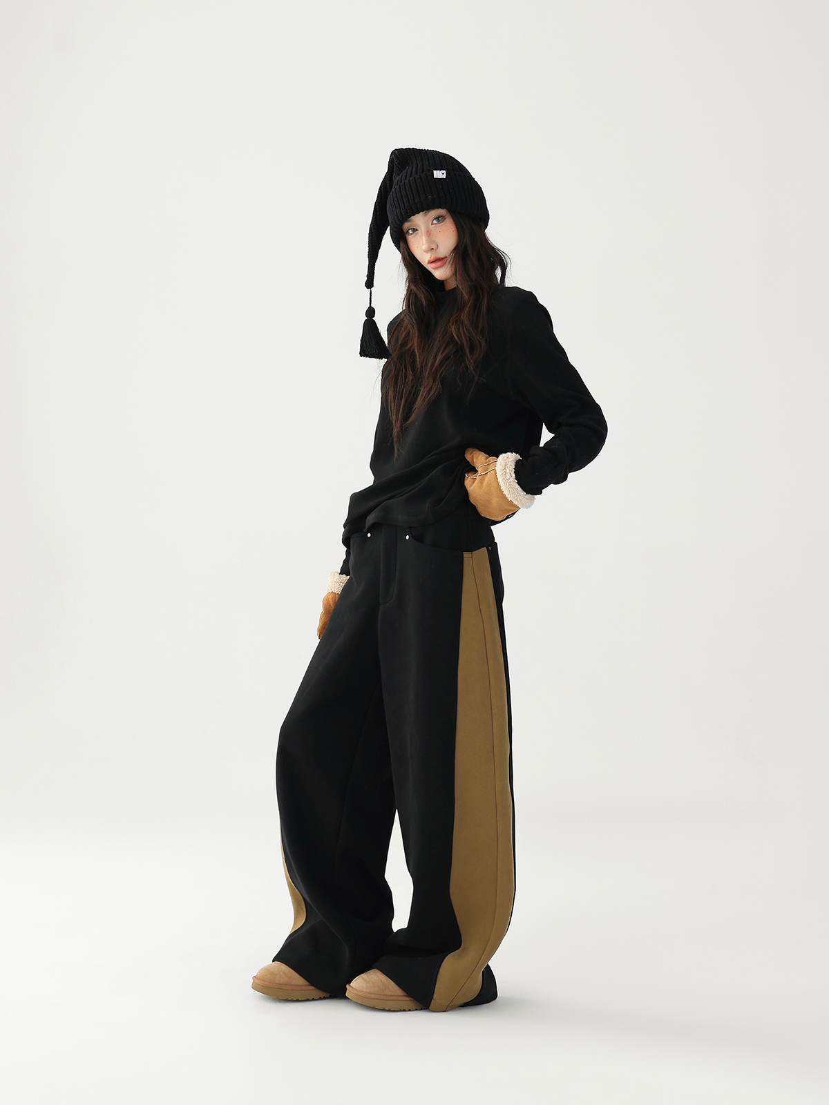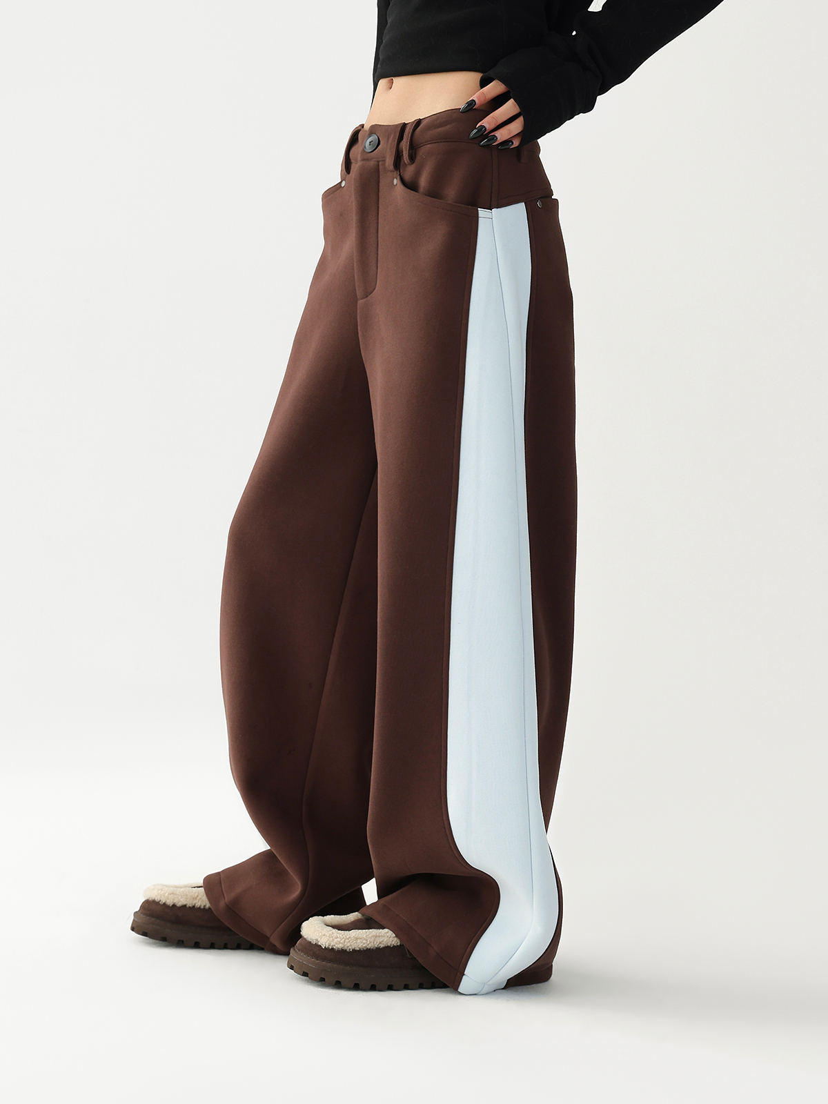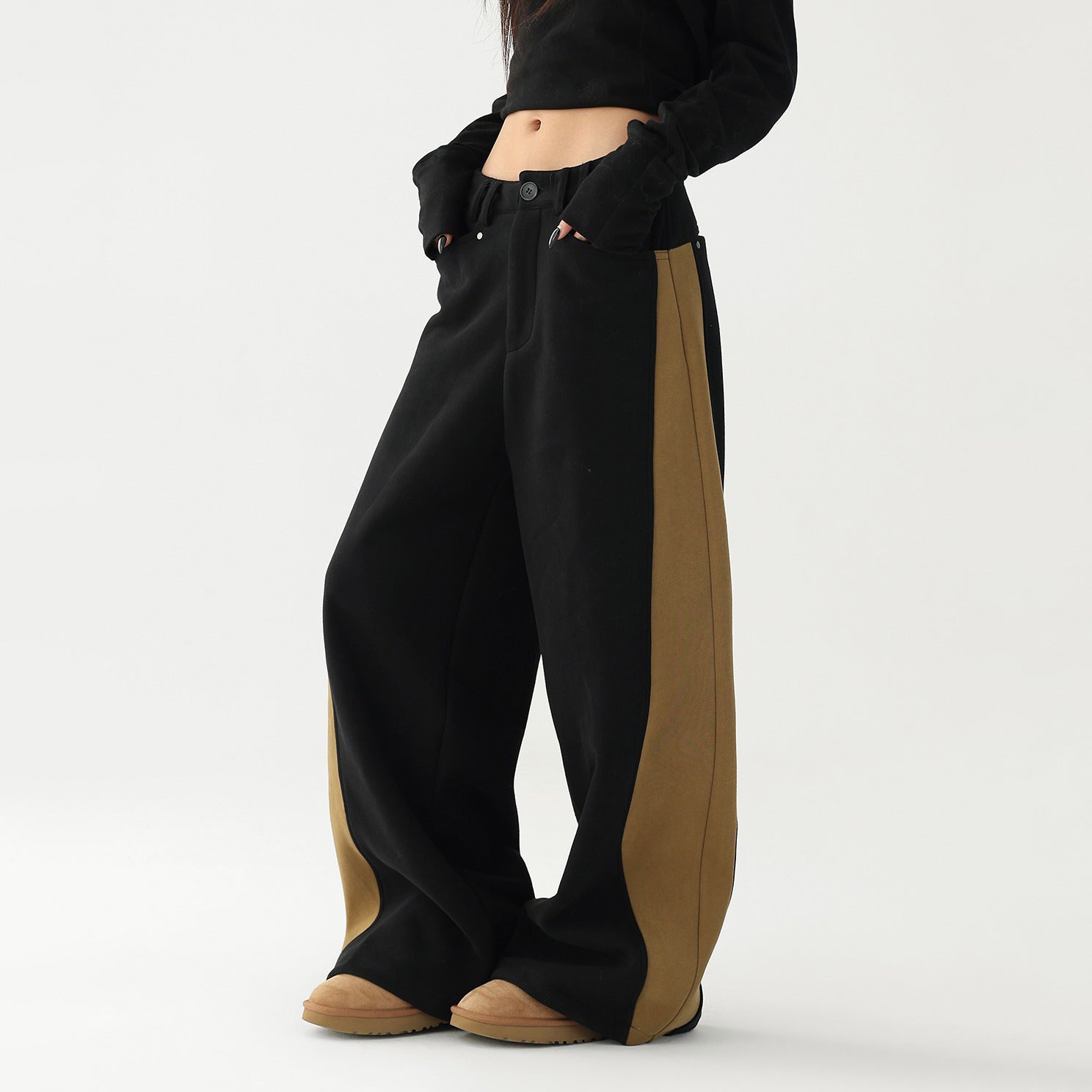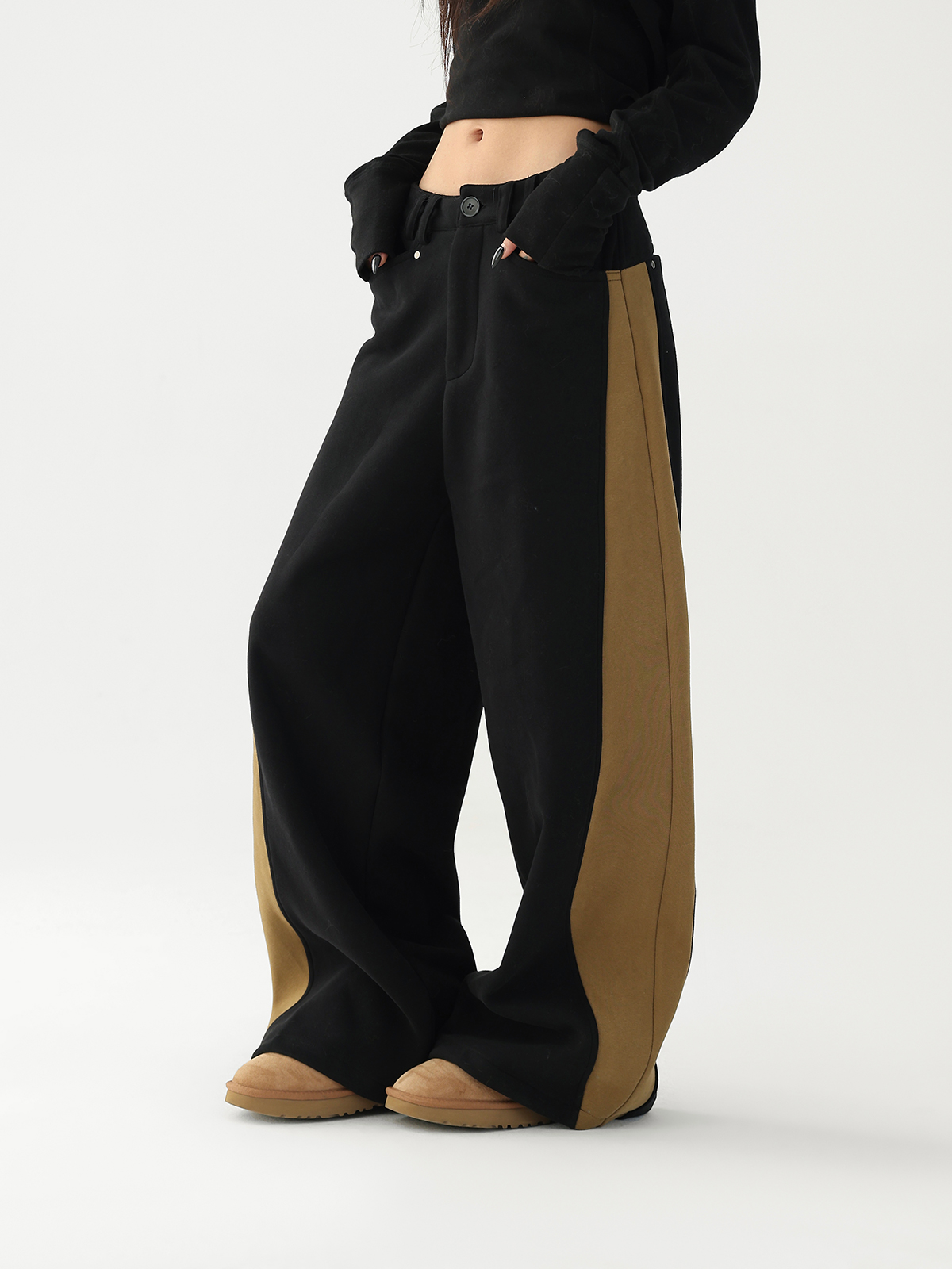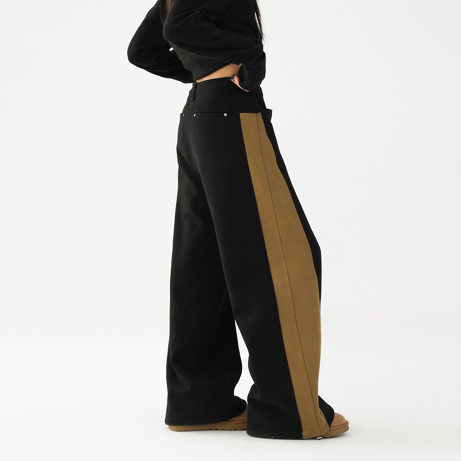 【商品名】【ボトムス】✨配色切替デザイン♡ワイドストレートスウェットパンツ レディース ゆったり【FCシリーズ】