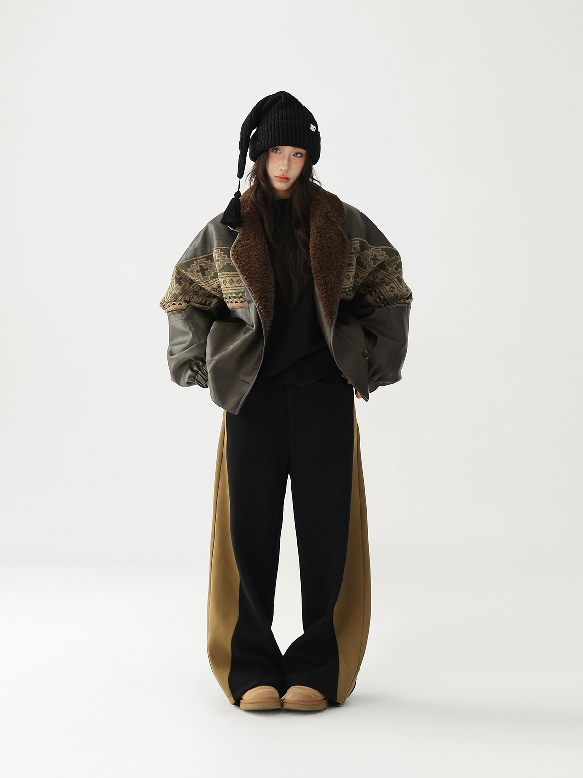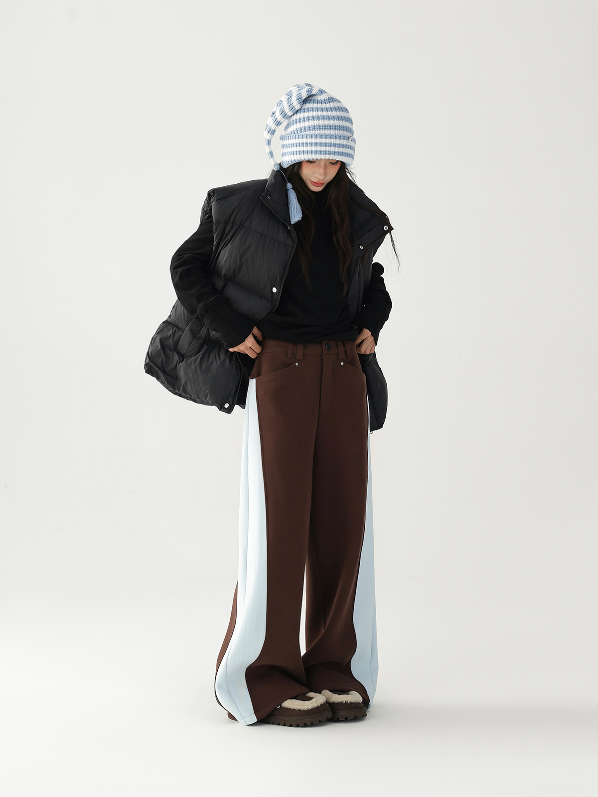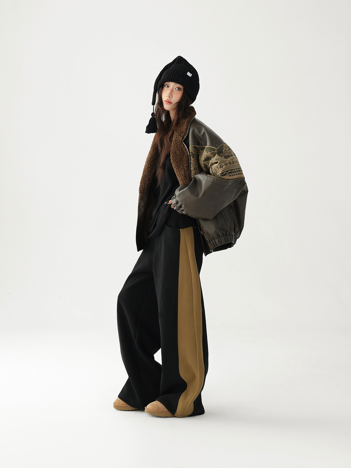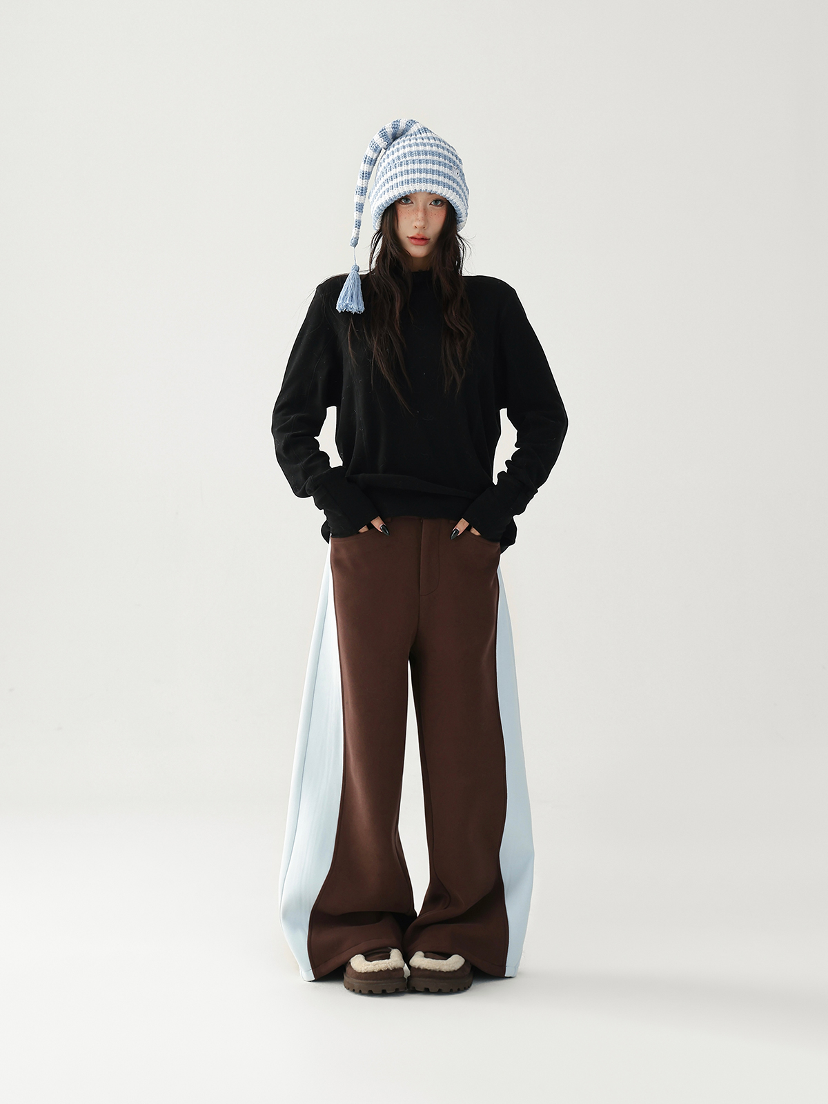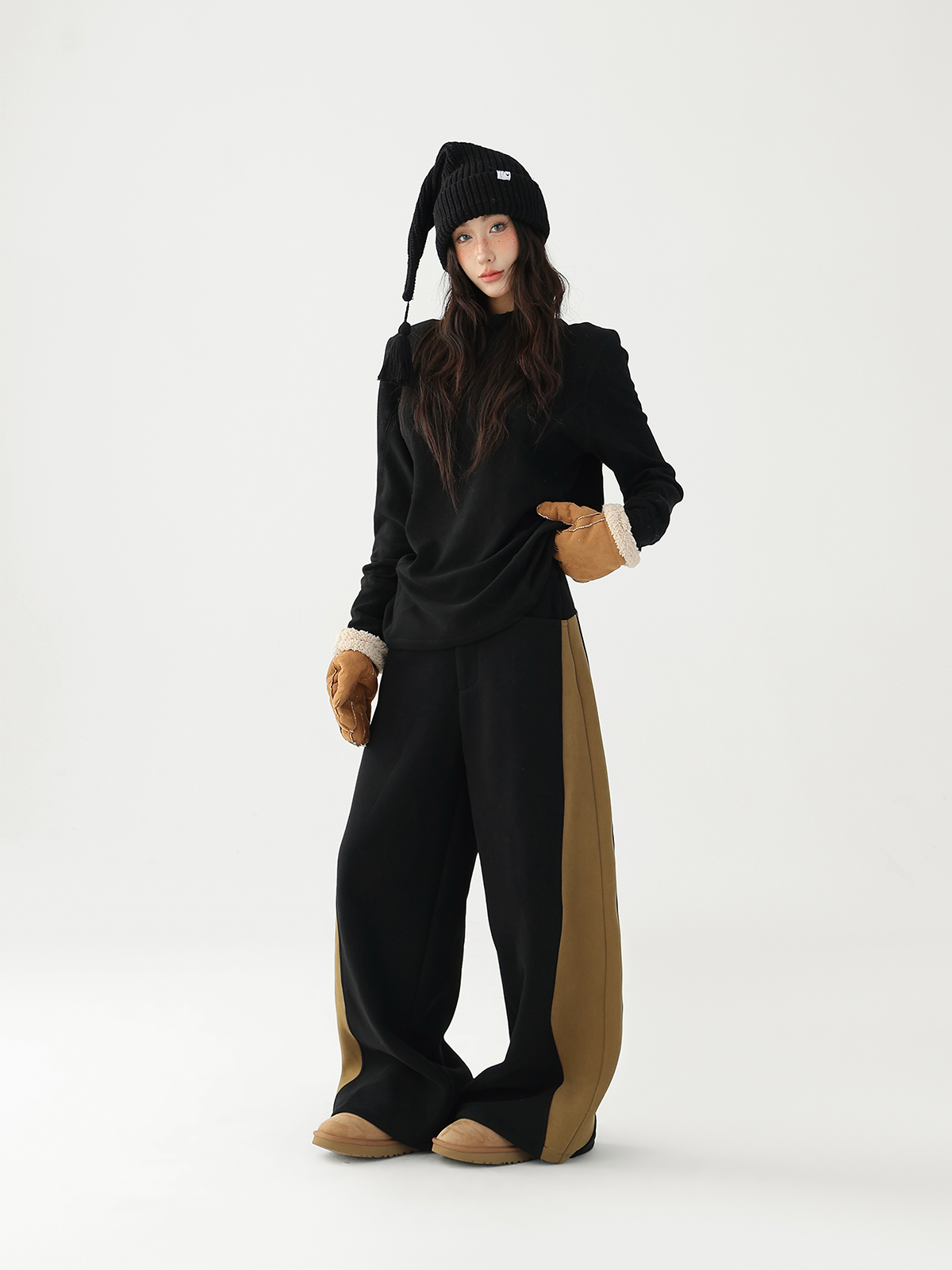 【商品名】【ボトムス】✨配色切替デザイン♡ワイドストレートスウェットパンツ レディース ゆったり【FCシリーズ】
