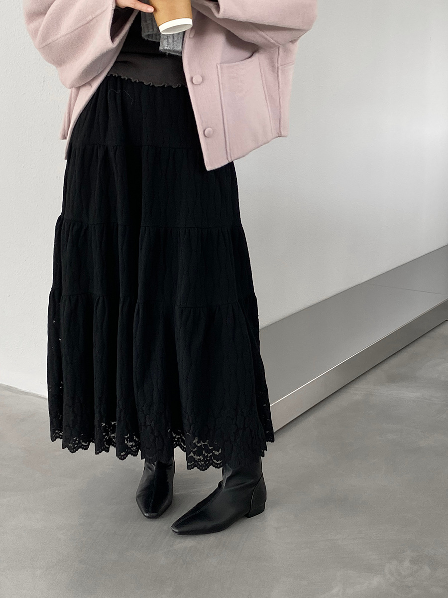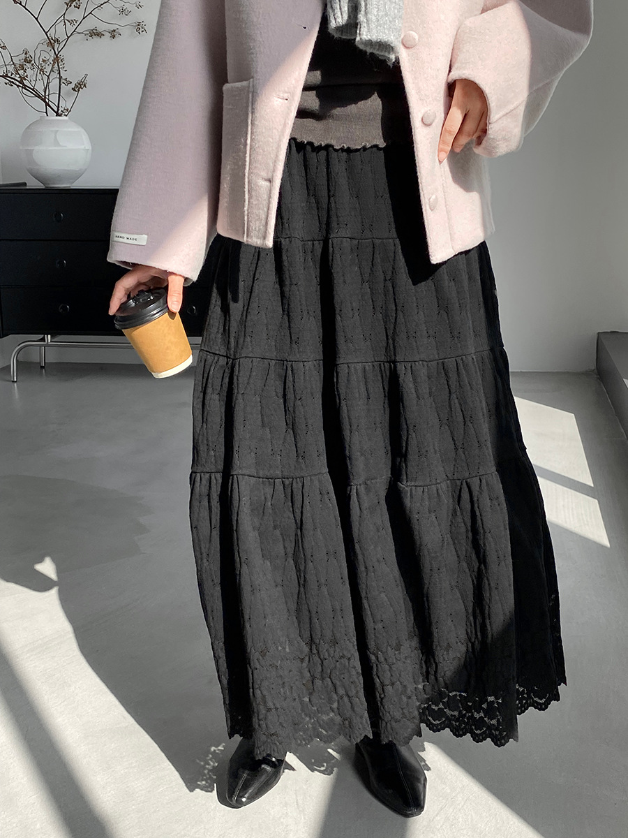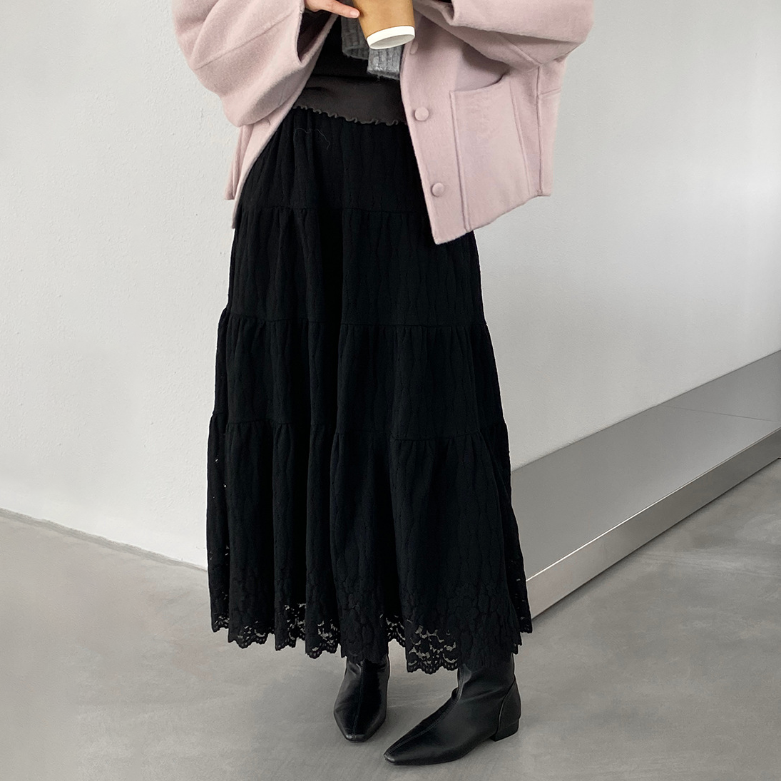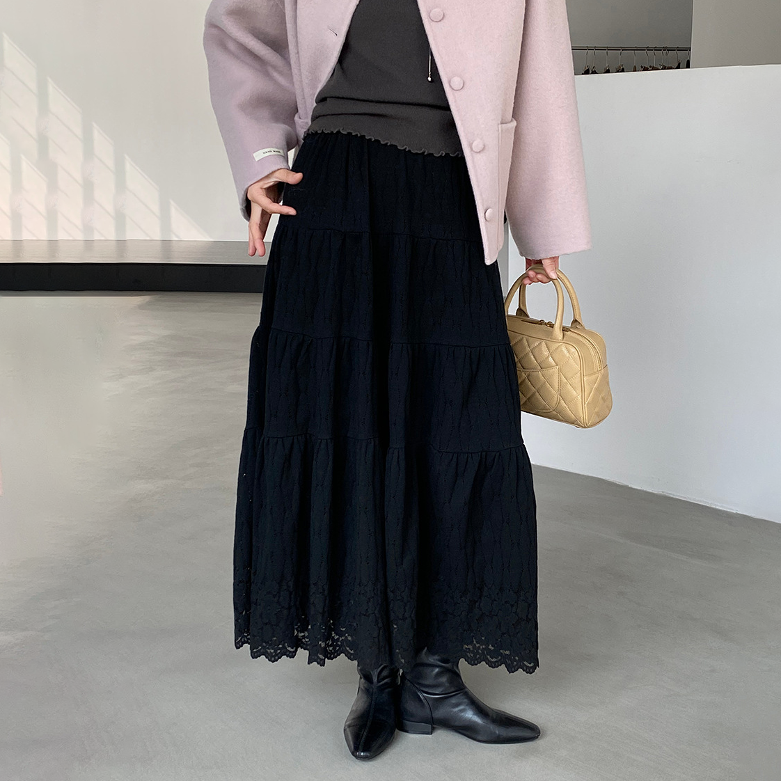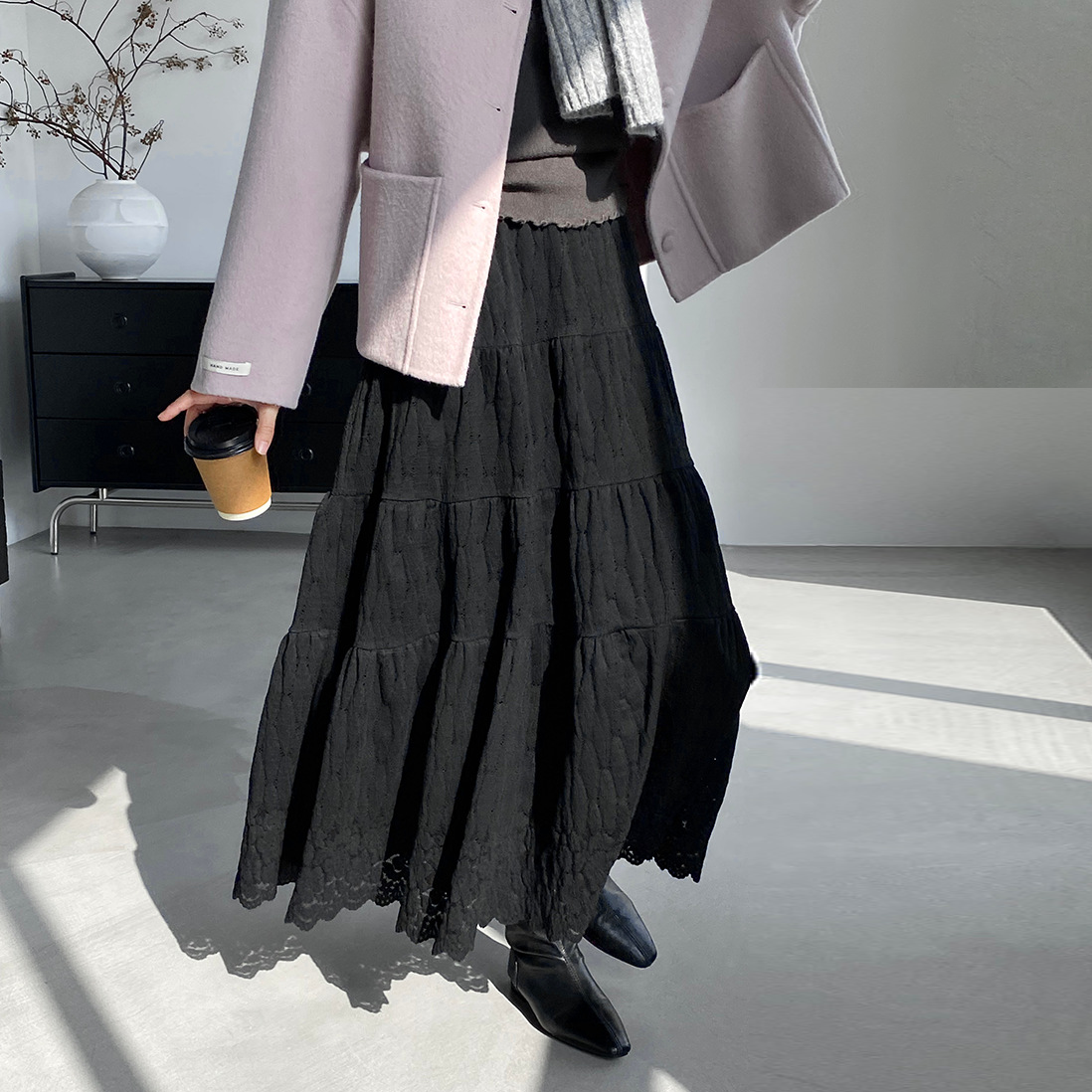 【ボトムス】厚手レース ハイウエストAラインロングスカート ❄️秋冬【JZシリーズ】