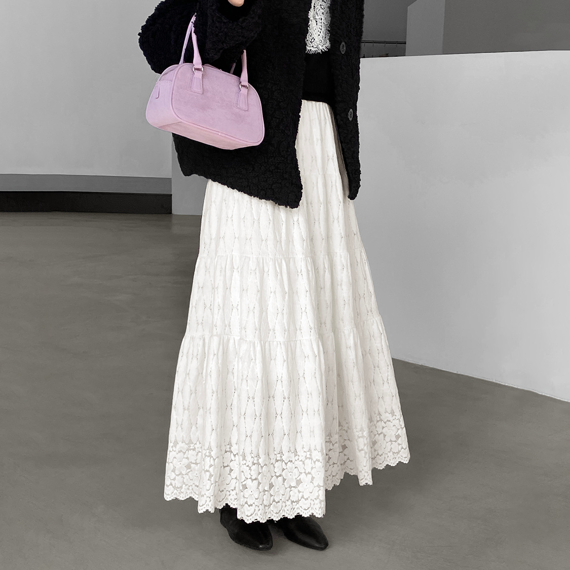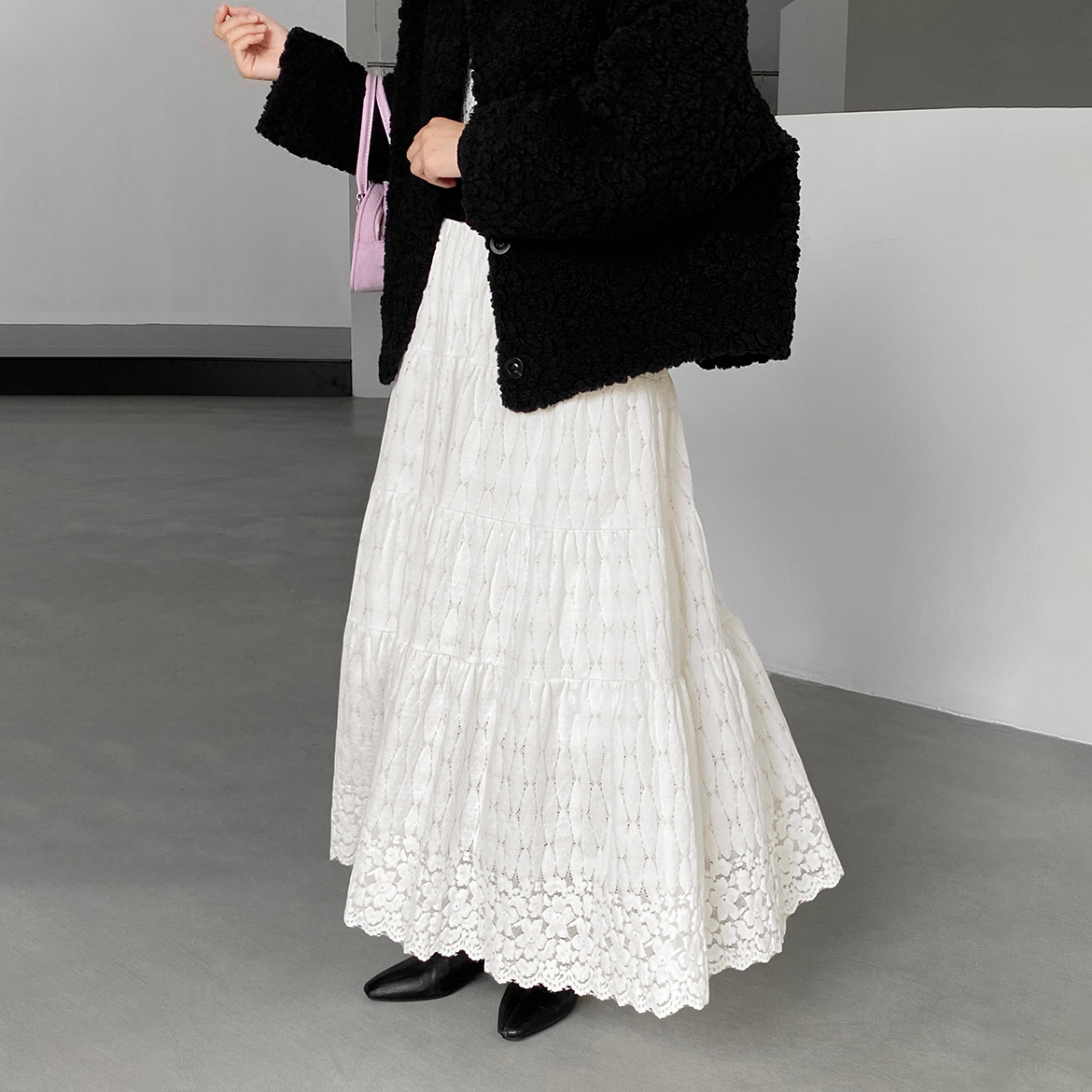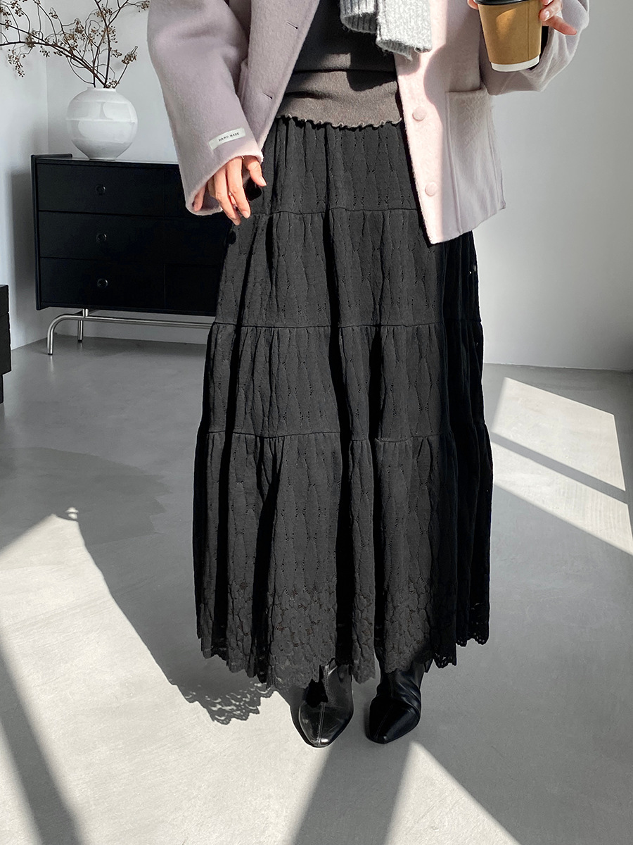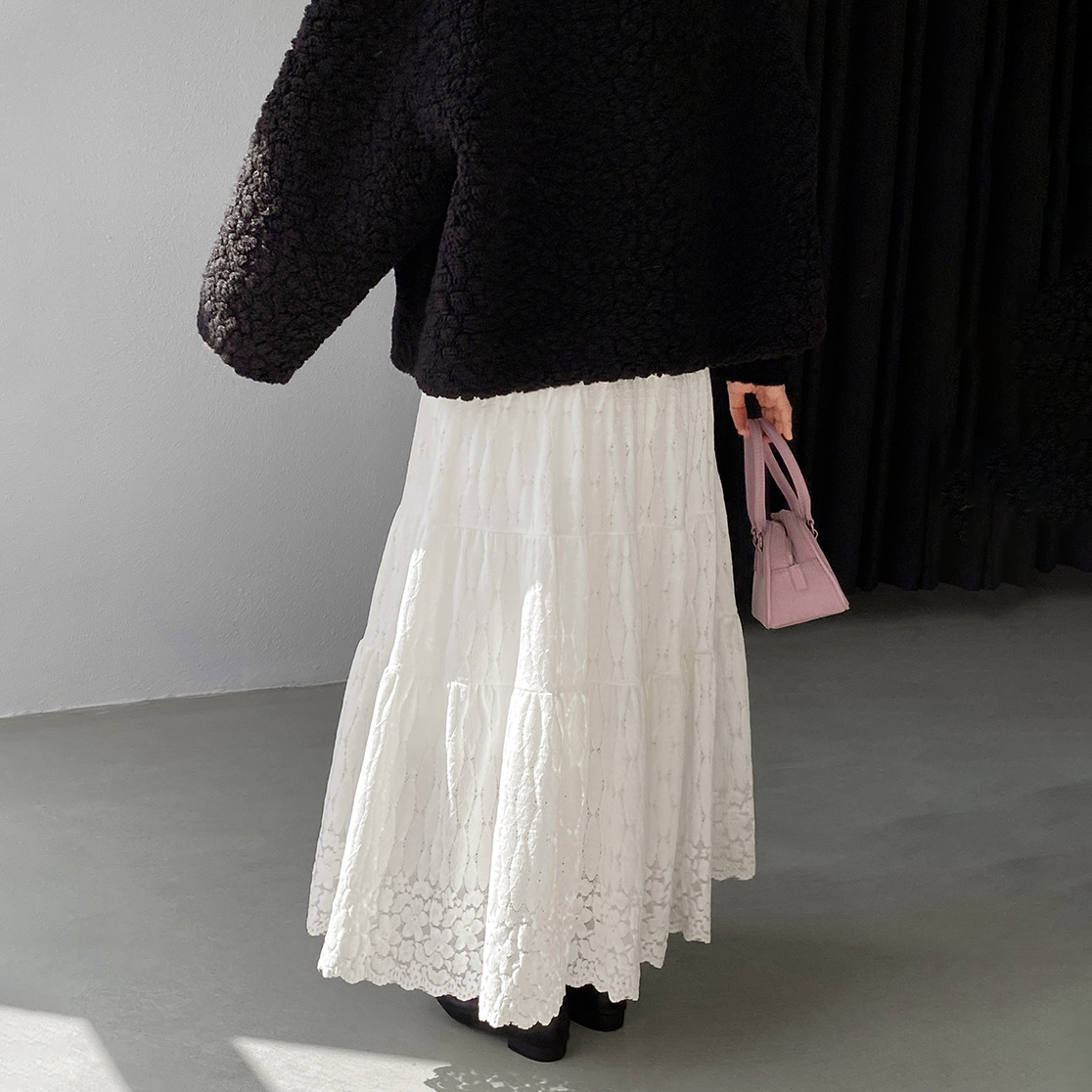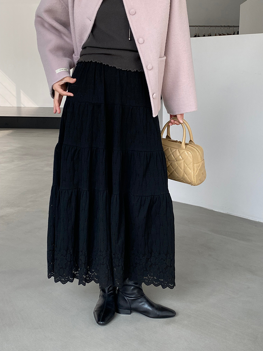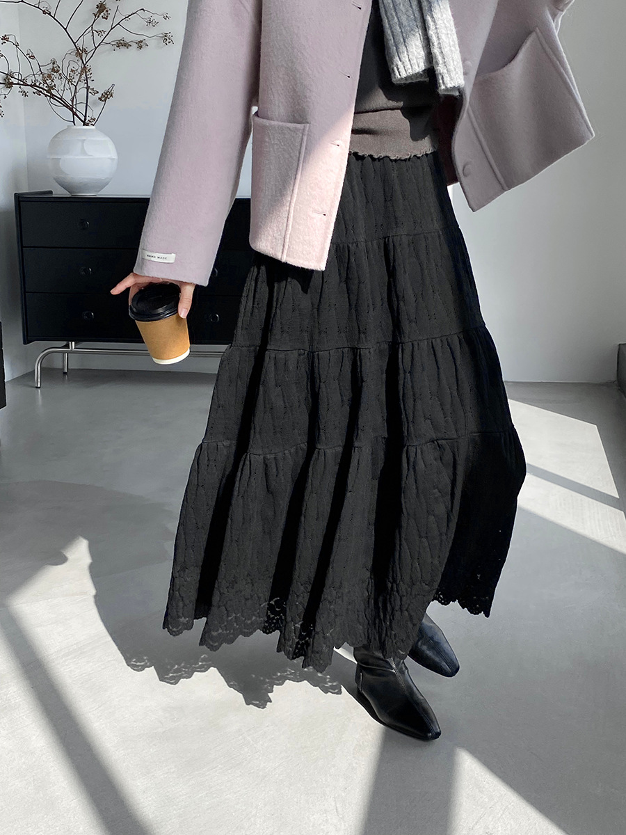 【ボトムス】厚手レース ハイウエストAラインロングスカート ❄️秋冬【JZシリーズ】