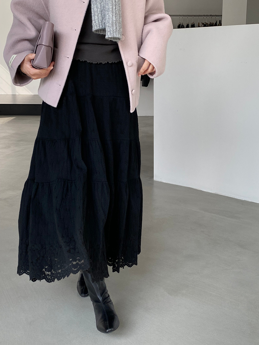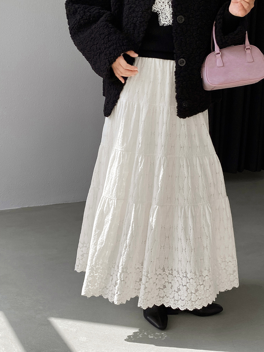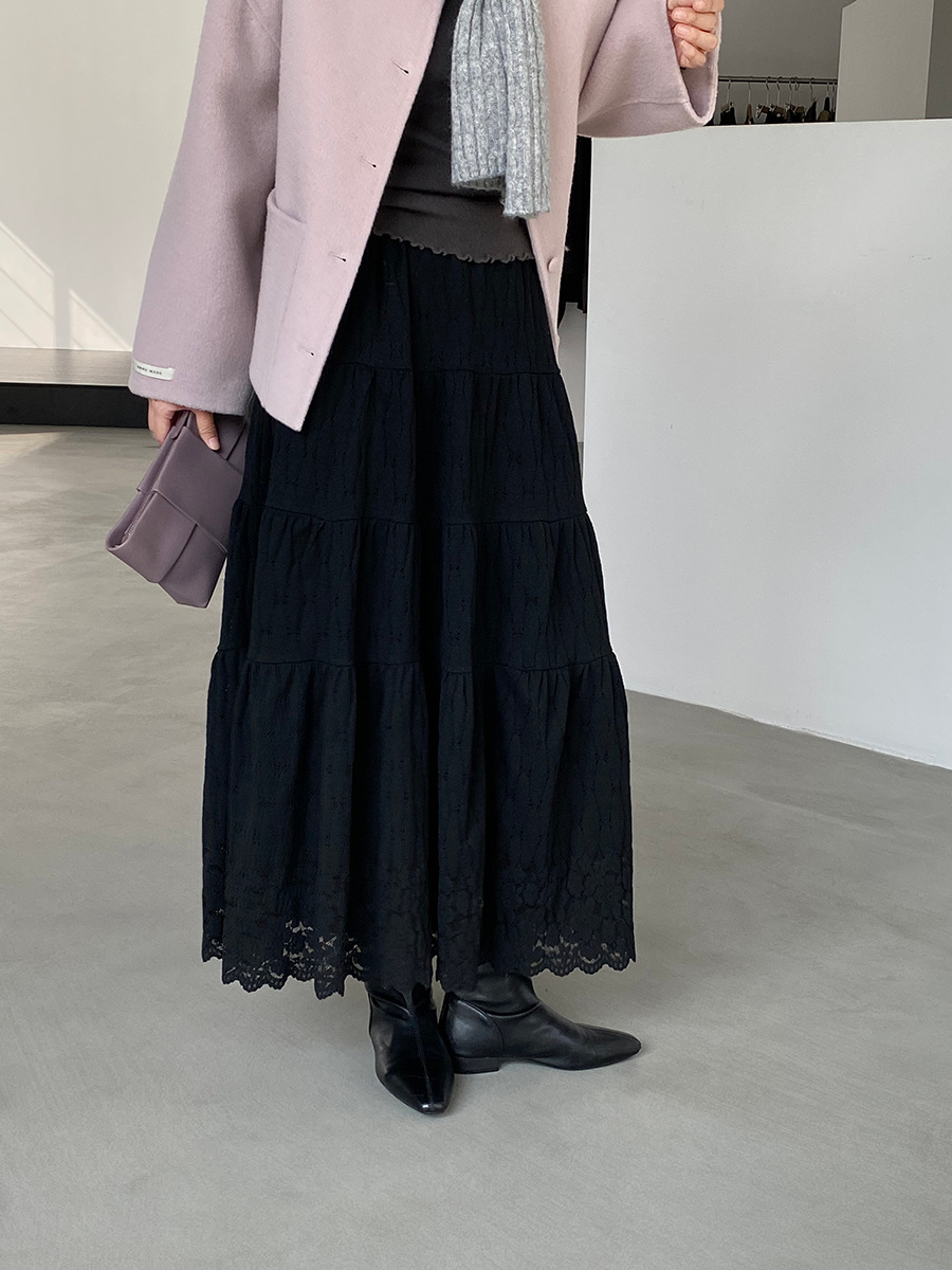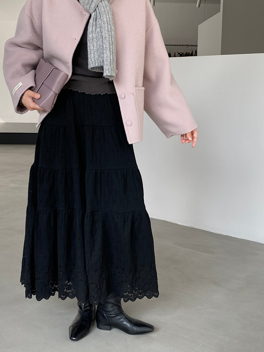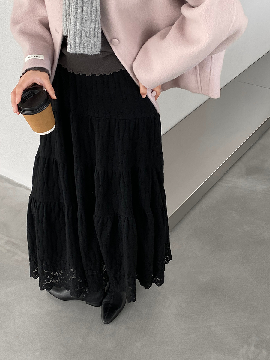 【ボトムス】厚手レース ハイウエストAラインロングスカート ❄️秋冬【JZシリーズ】