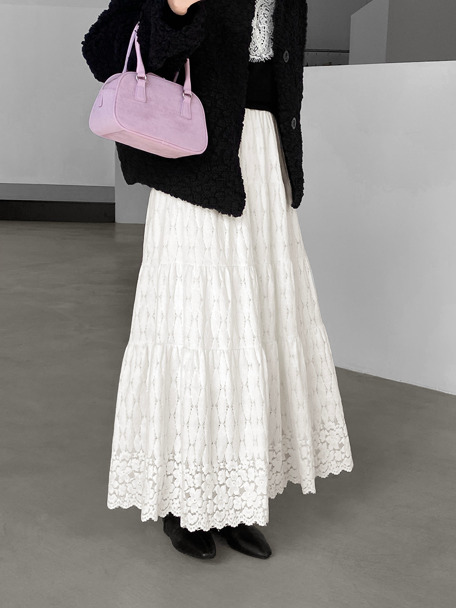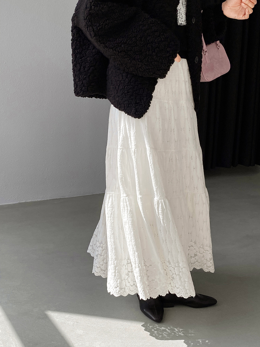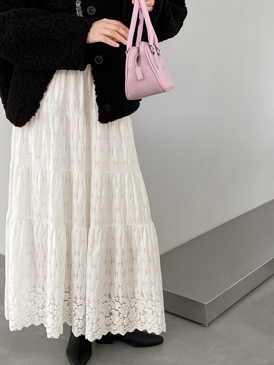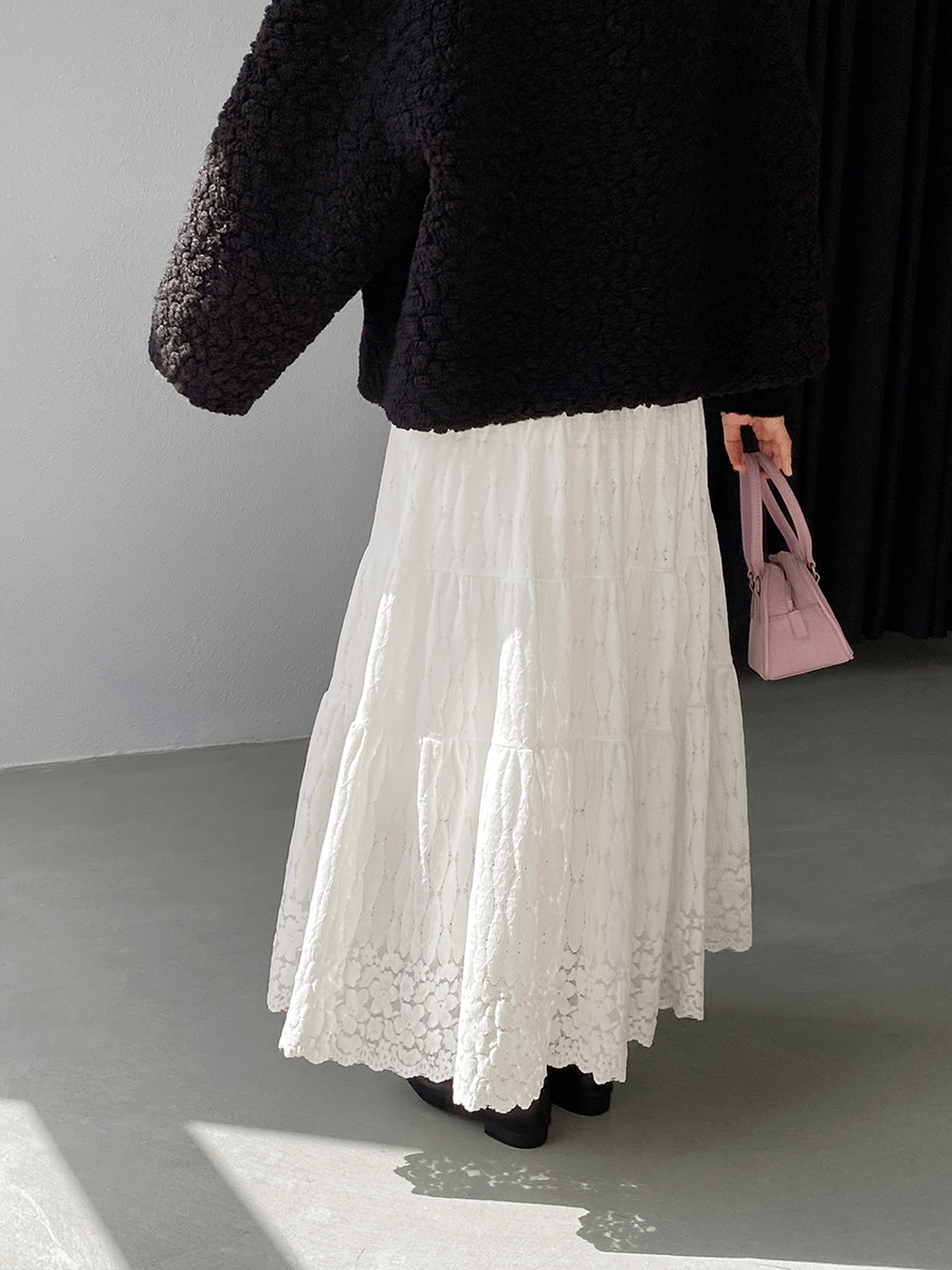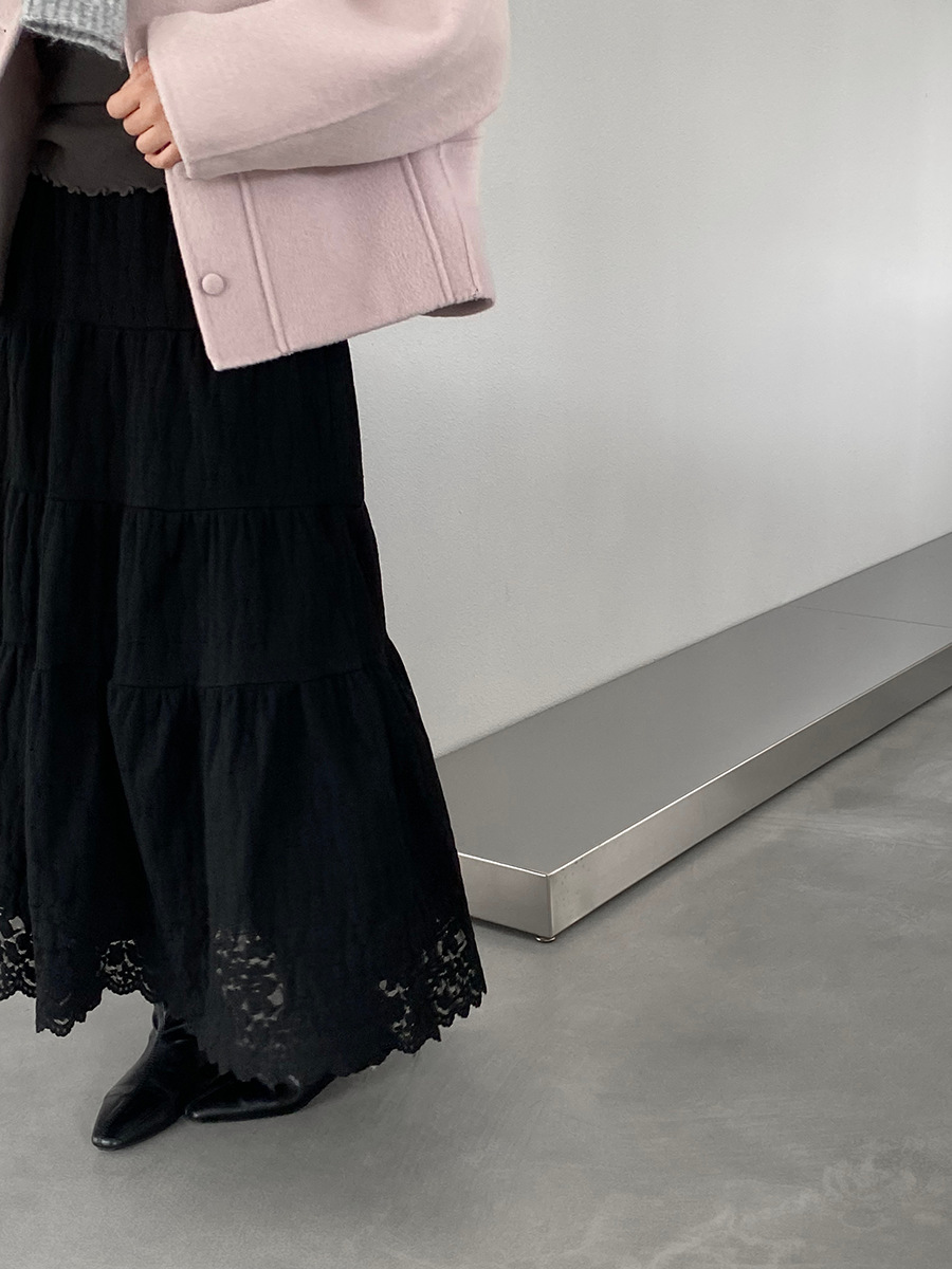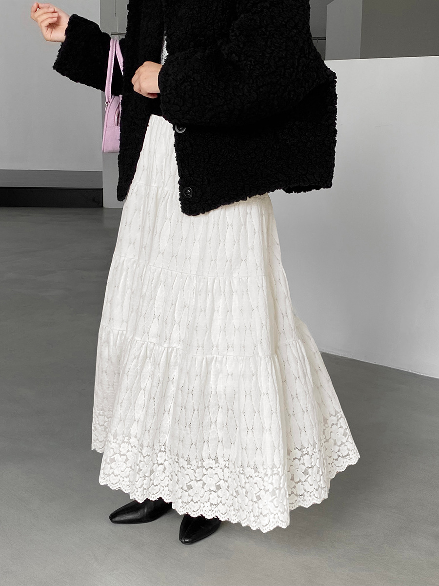 【ボトムス】厚手レース ハイウエストAラインロングスカート ❄️秋冬【JZシリーズ】