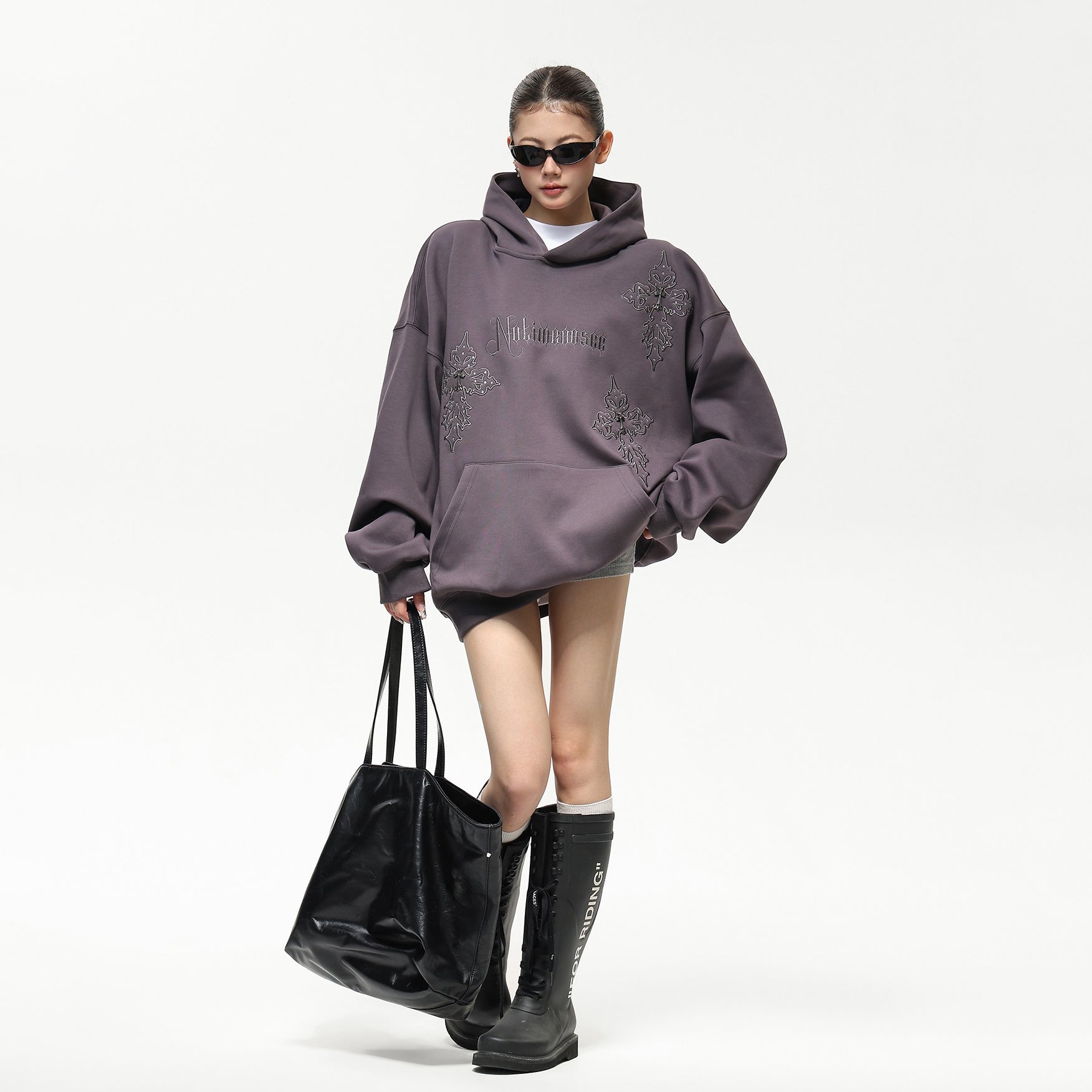 【トップス】✨刺繍デザイン フーディー ストリート風 オーバーサイズ スウェット レディース パーカー【FCシリーズ】