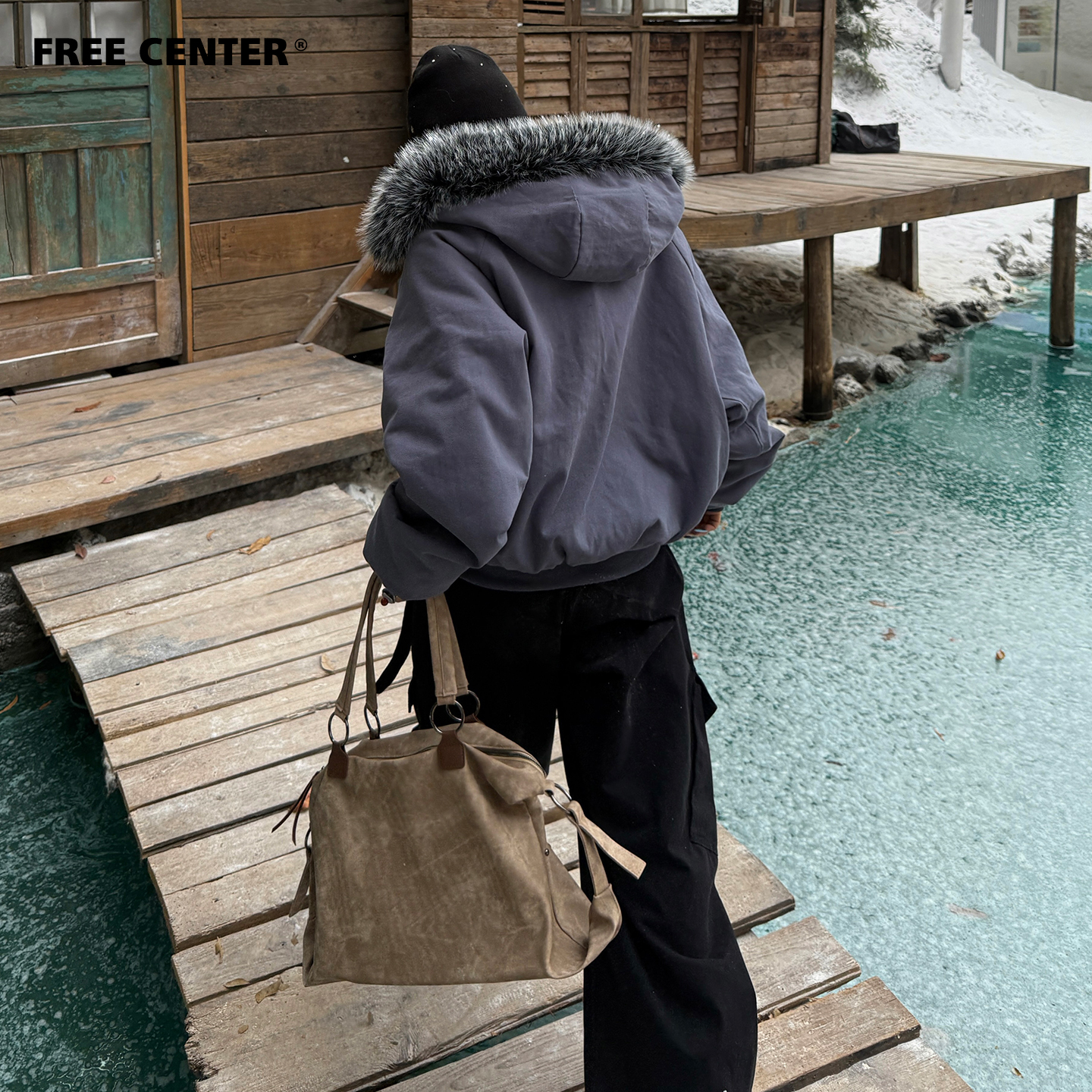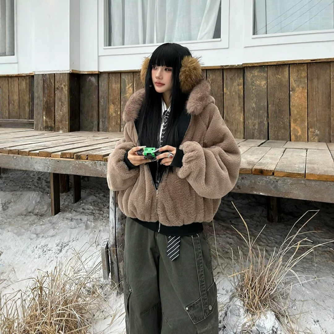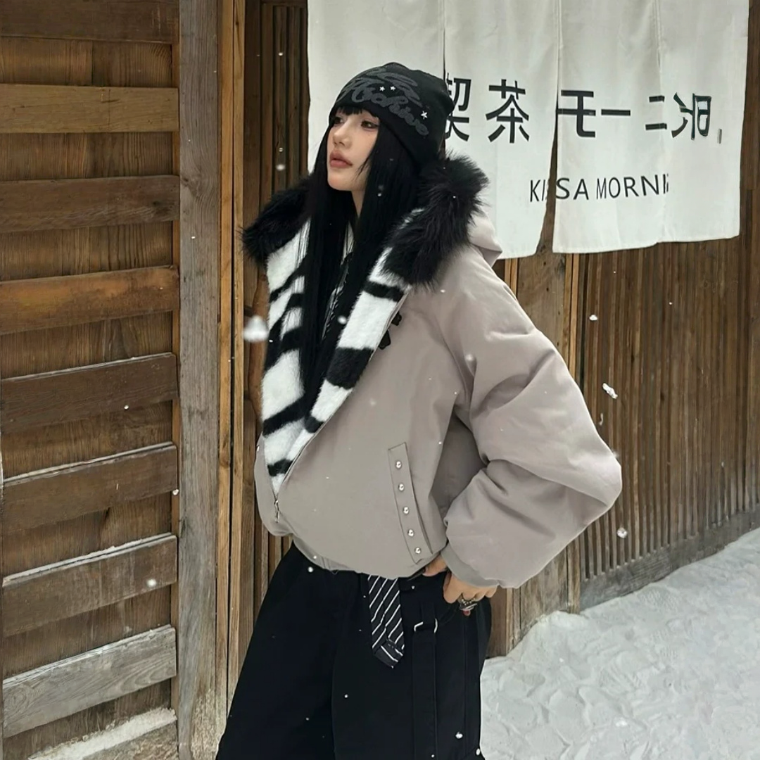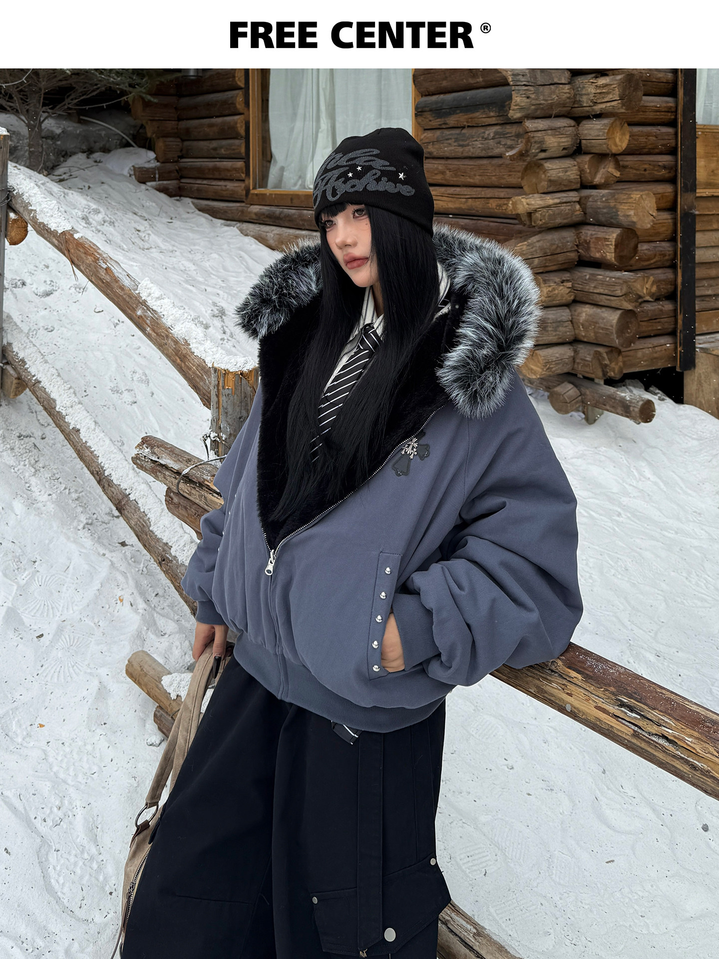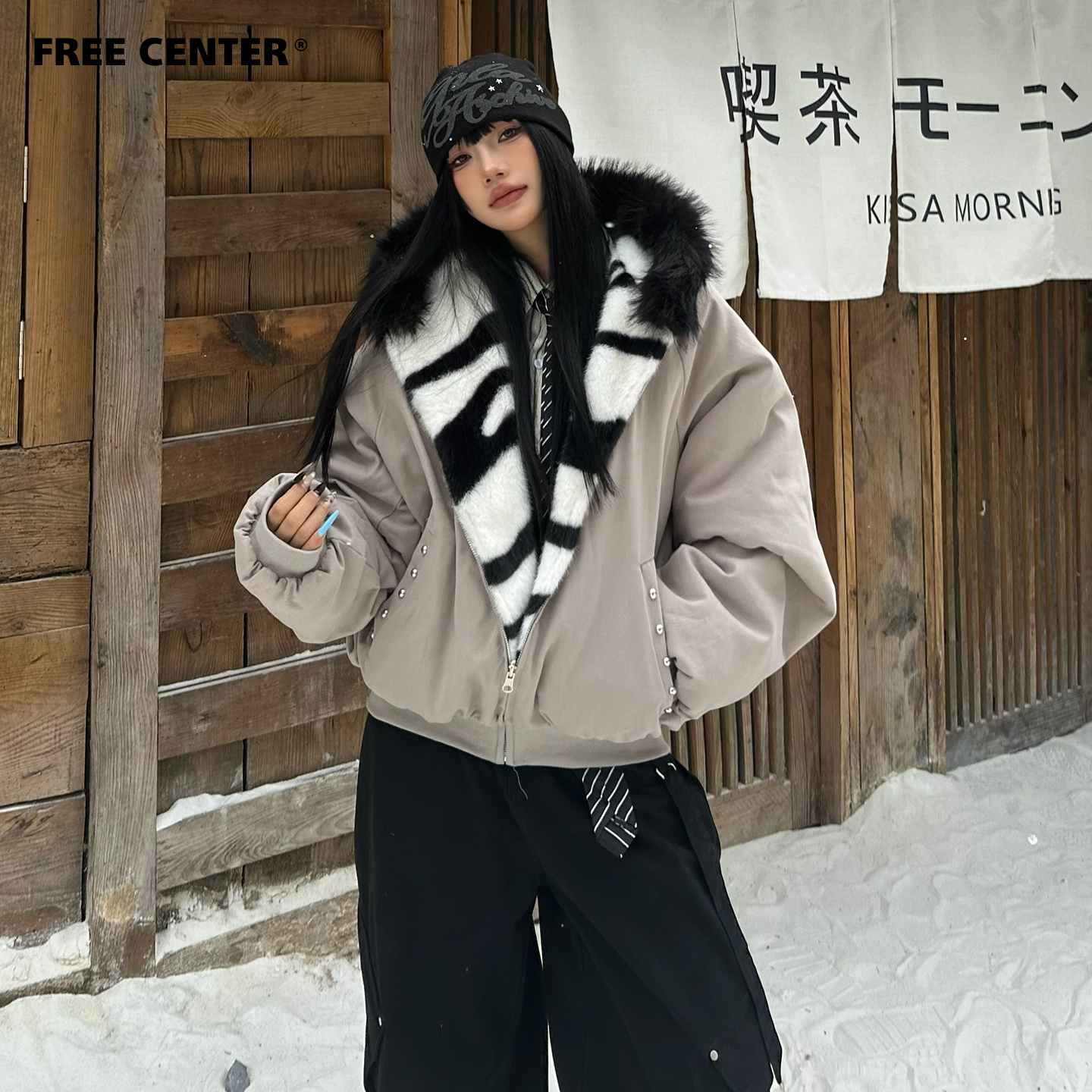 【セットアップ】【単品注文】ファー襟 スウェットアウター + カーブ ワイドパンツ 2点上下セット 【JZシリーズ】