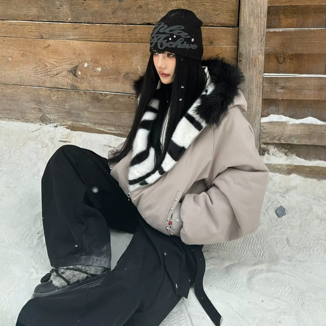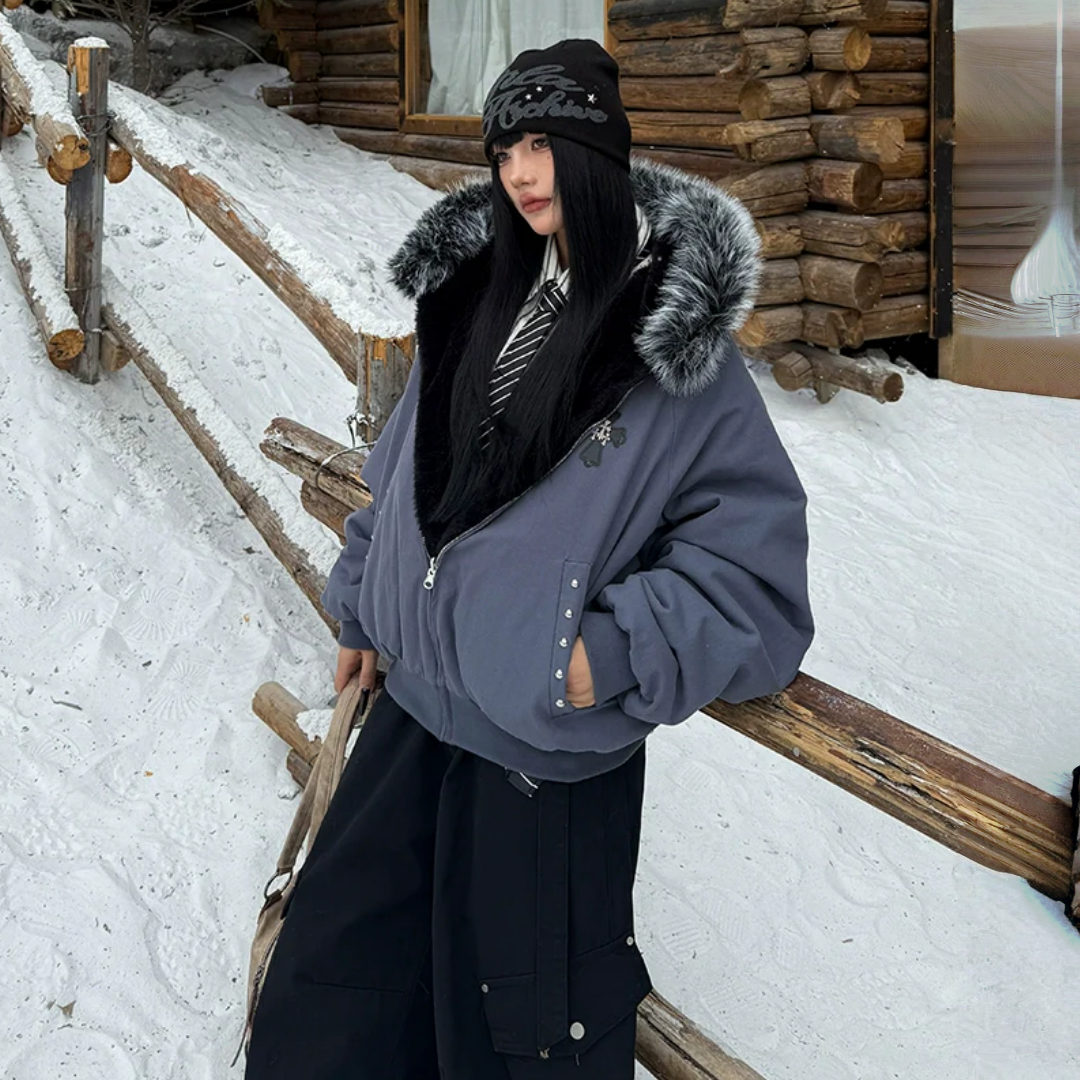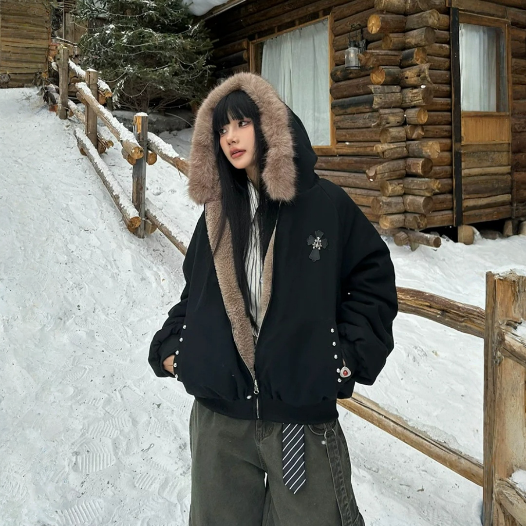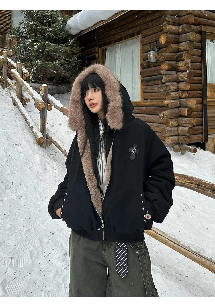 🔥冬の必須アウター🔥【アウター】秋冬 アメリカン カップル服 ルース レトロ 刺繍 フード付き コットン ジャケット【FCシリーズ】